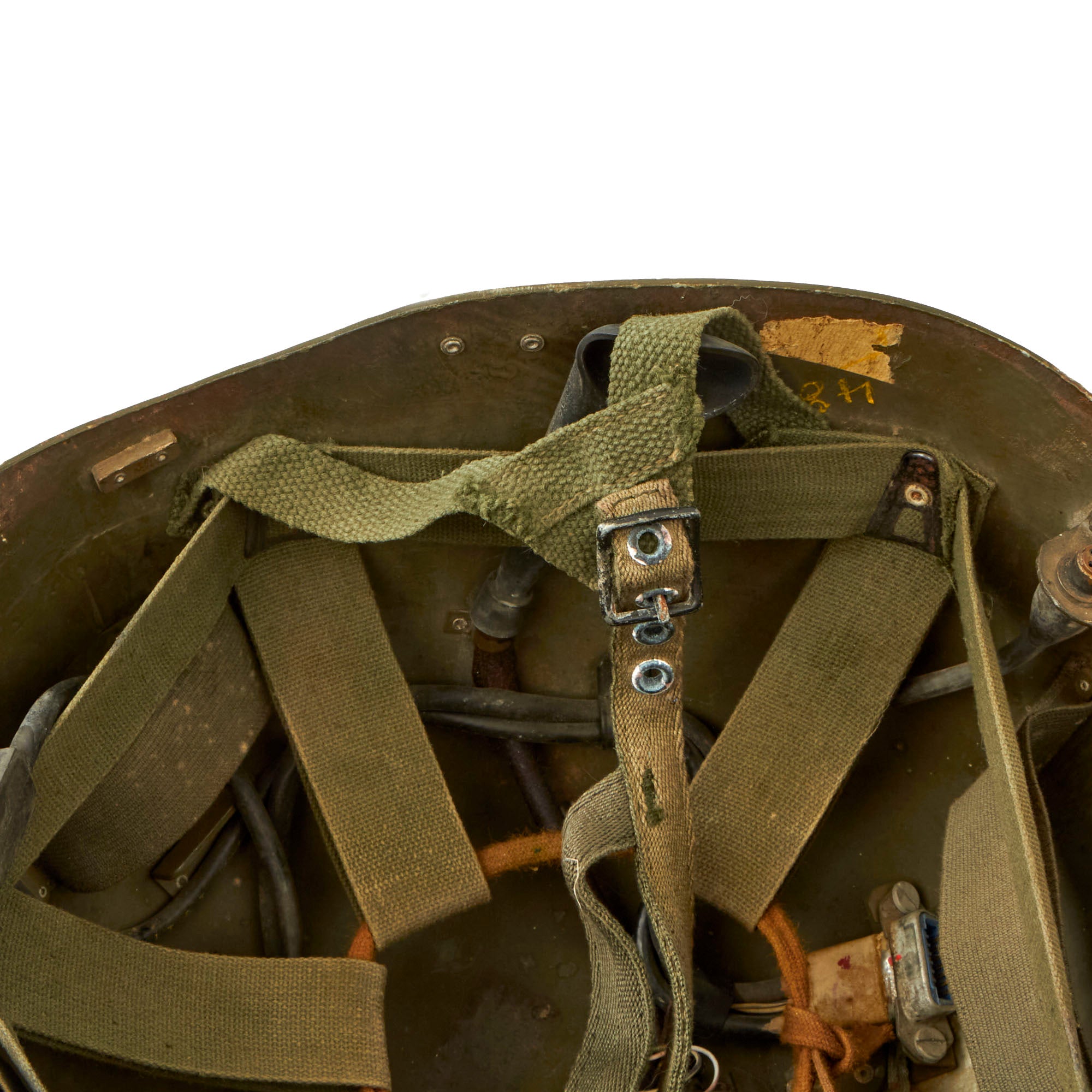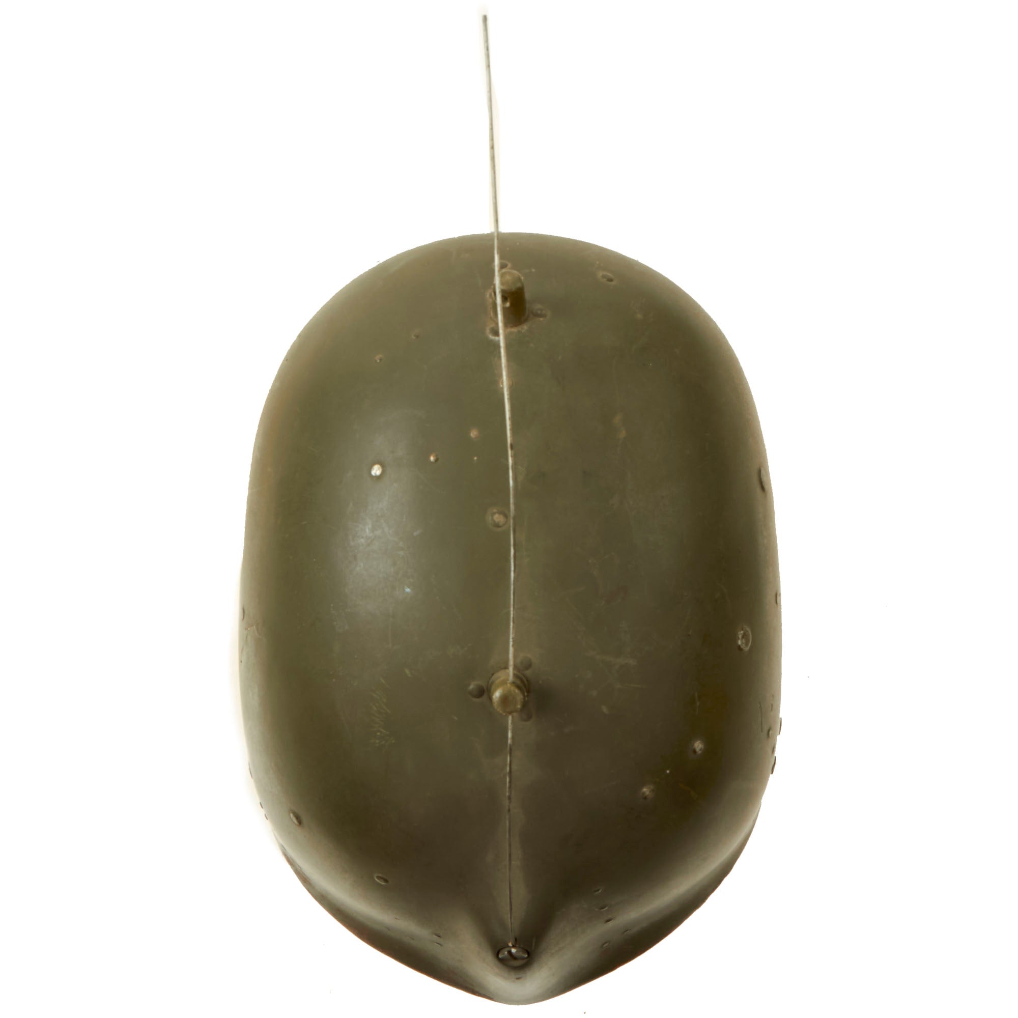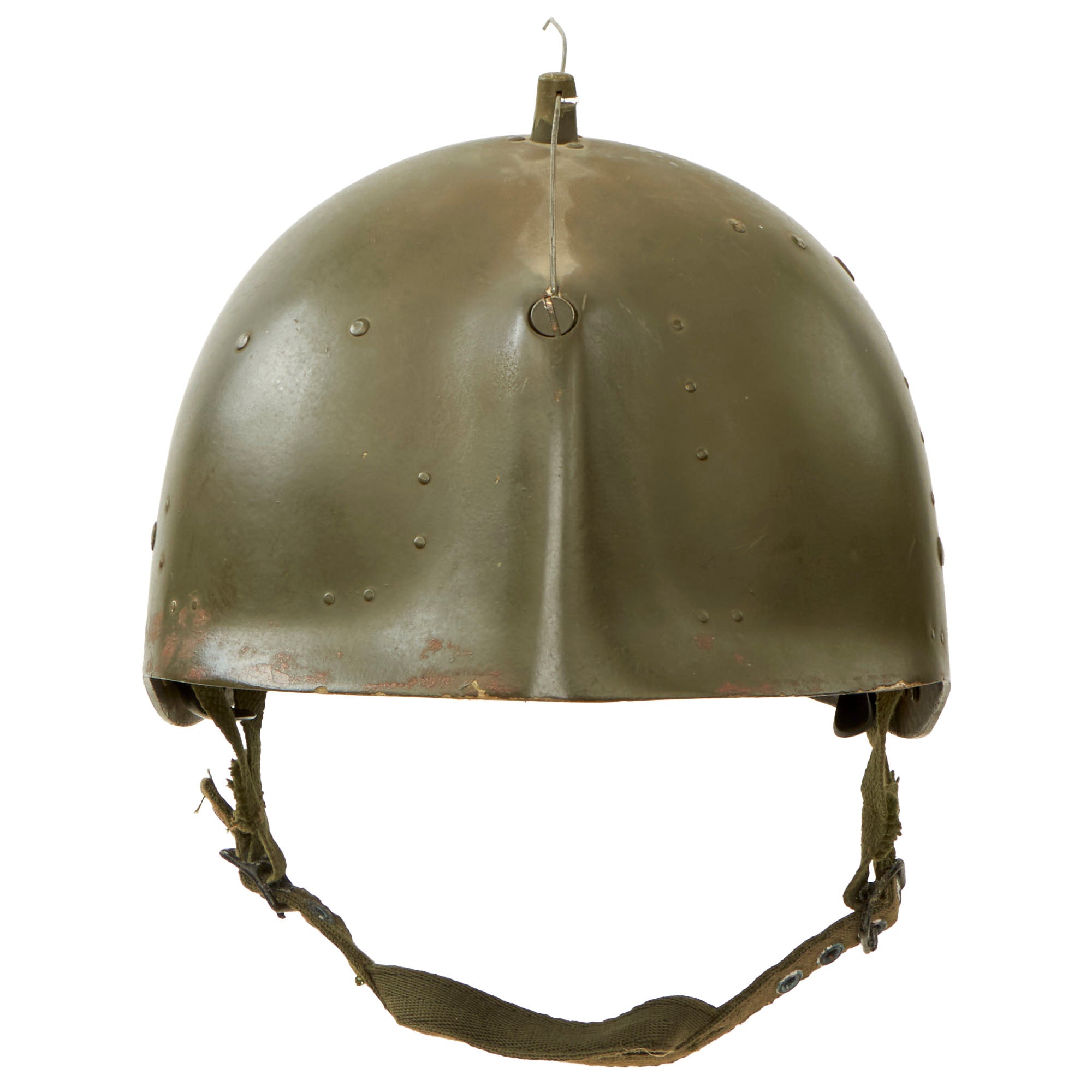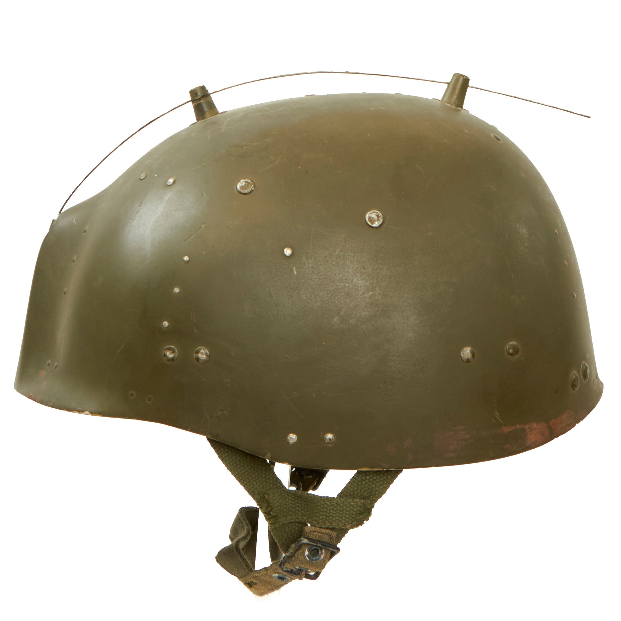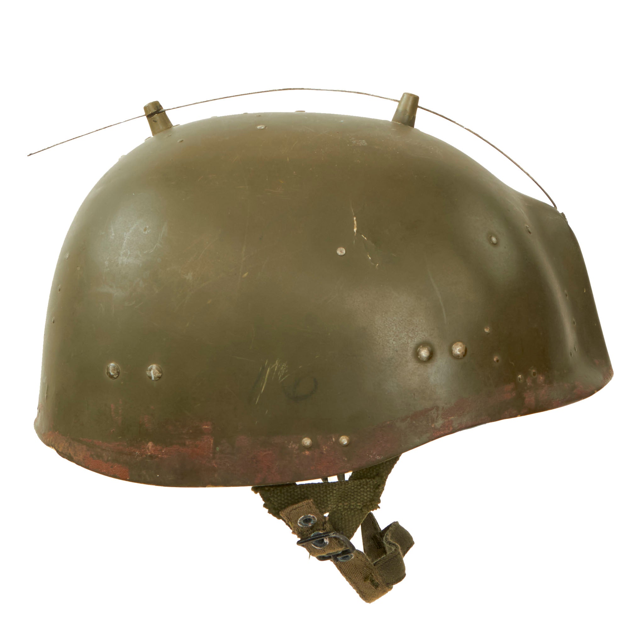 Original Item. Only One Available. This is an extremely scarce experimental US AN/PRC 34 Helmet. These helmets were developed after the Korean war to replace handheld squad radios. The helmet features a small modulated transceiver, batter, earpiece, and antenna incorporated into the helmet liner. They had performance issues and were never adopted into military use, making these a scarce find. This example has a plug but is missing the microphone.