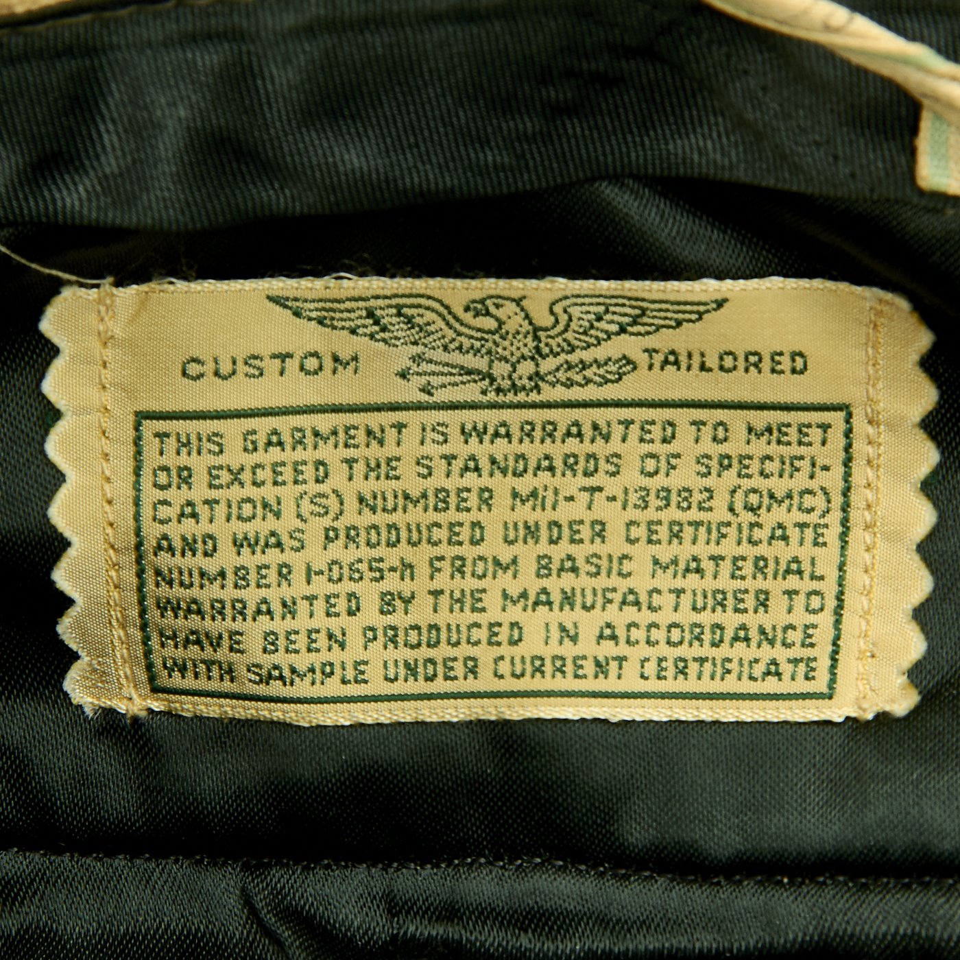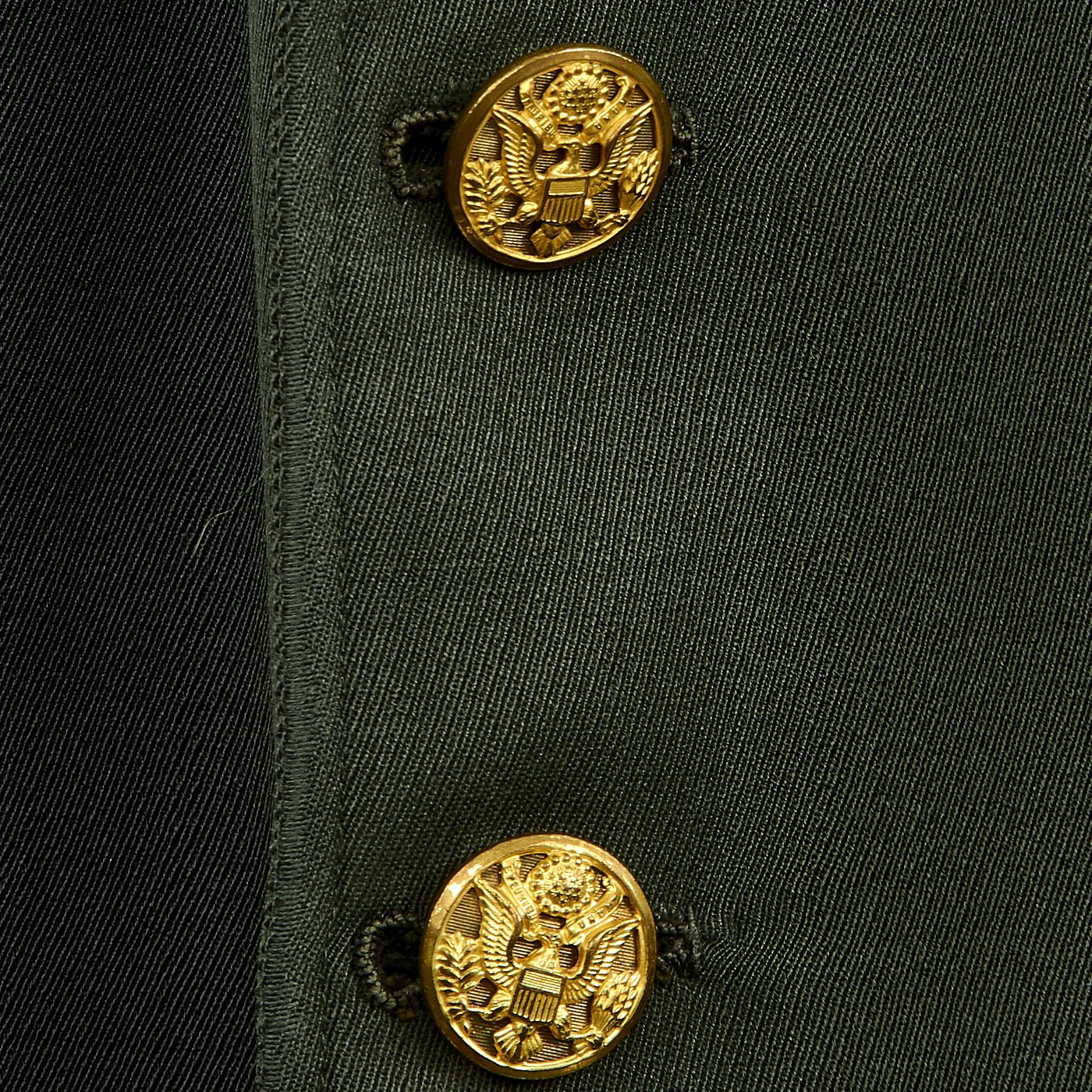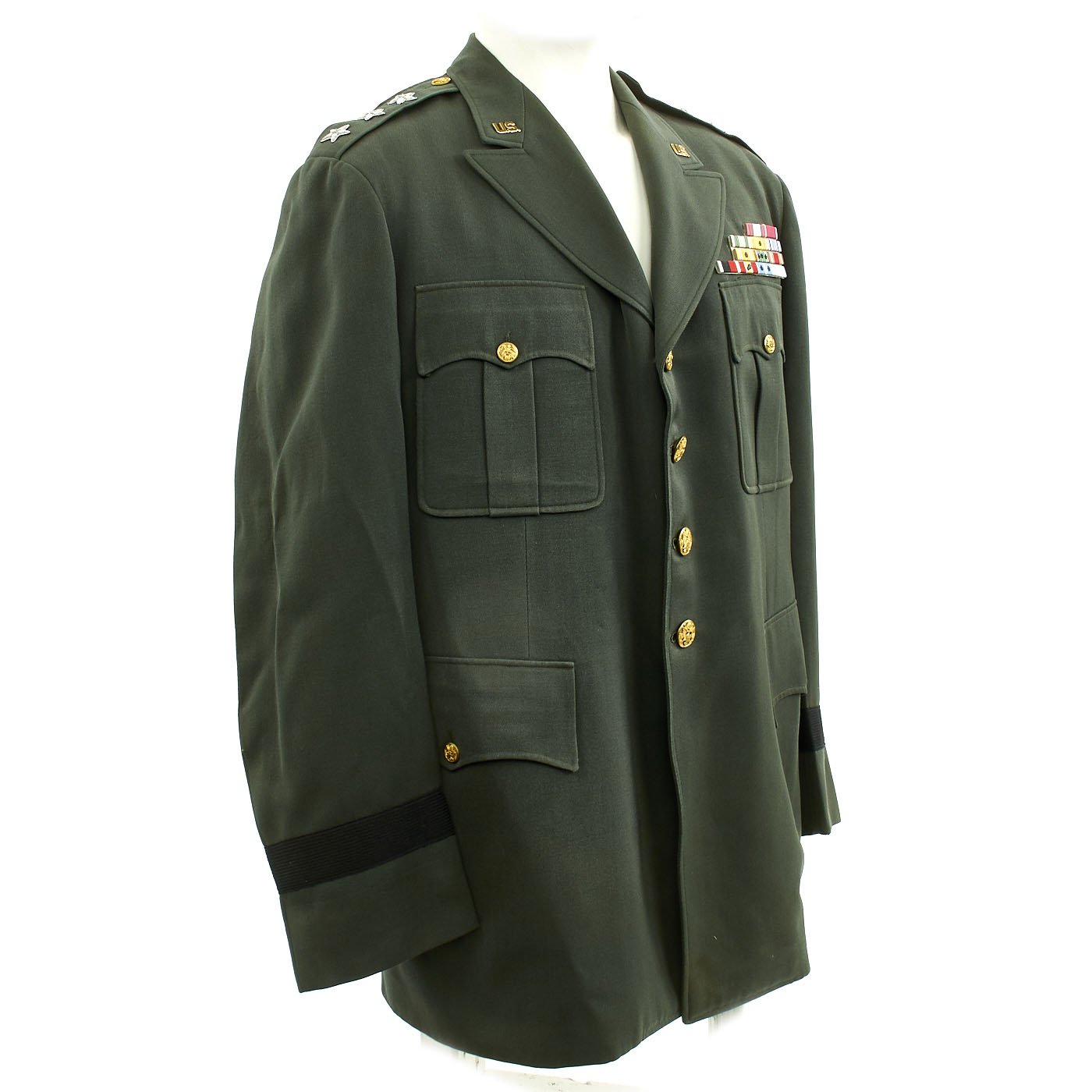 This Service Jacket and trousers is named on the inside tailor label to "Gen Colglazier". It is a large size approximately 42" US and offered in excellent condition. It is complete with bullion embroidered Lieutenant General three stars to the epaulets, medal ribbon bar and Fourth United States Army insignia patch. In 1964 he became the Commanding General of the Fourth US Army. The tailored pants are also included. This uniform dates from the Vietnam War Era. Both the jacket and pants are offered in excellent condition.