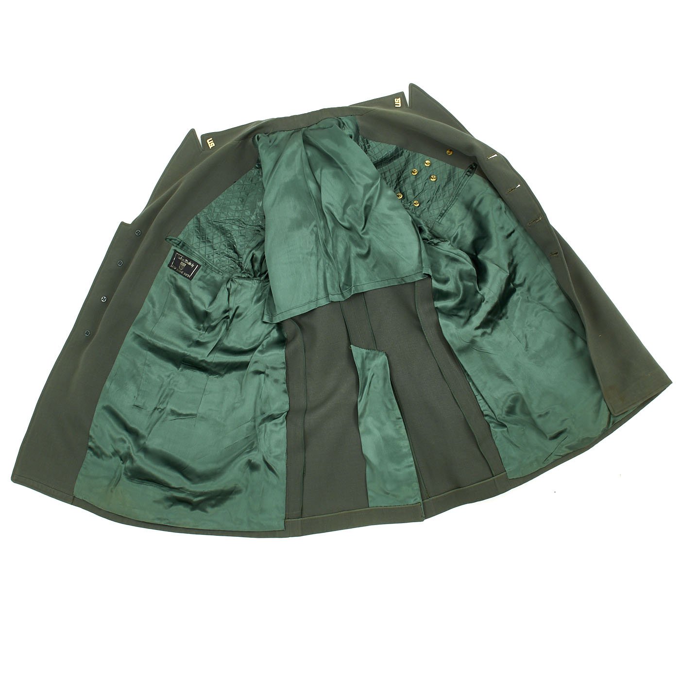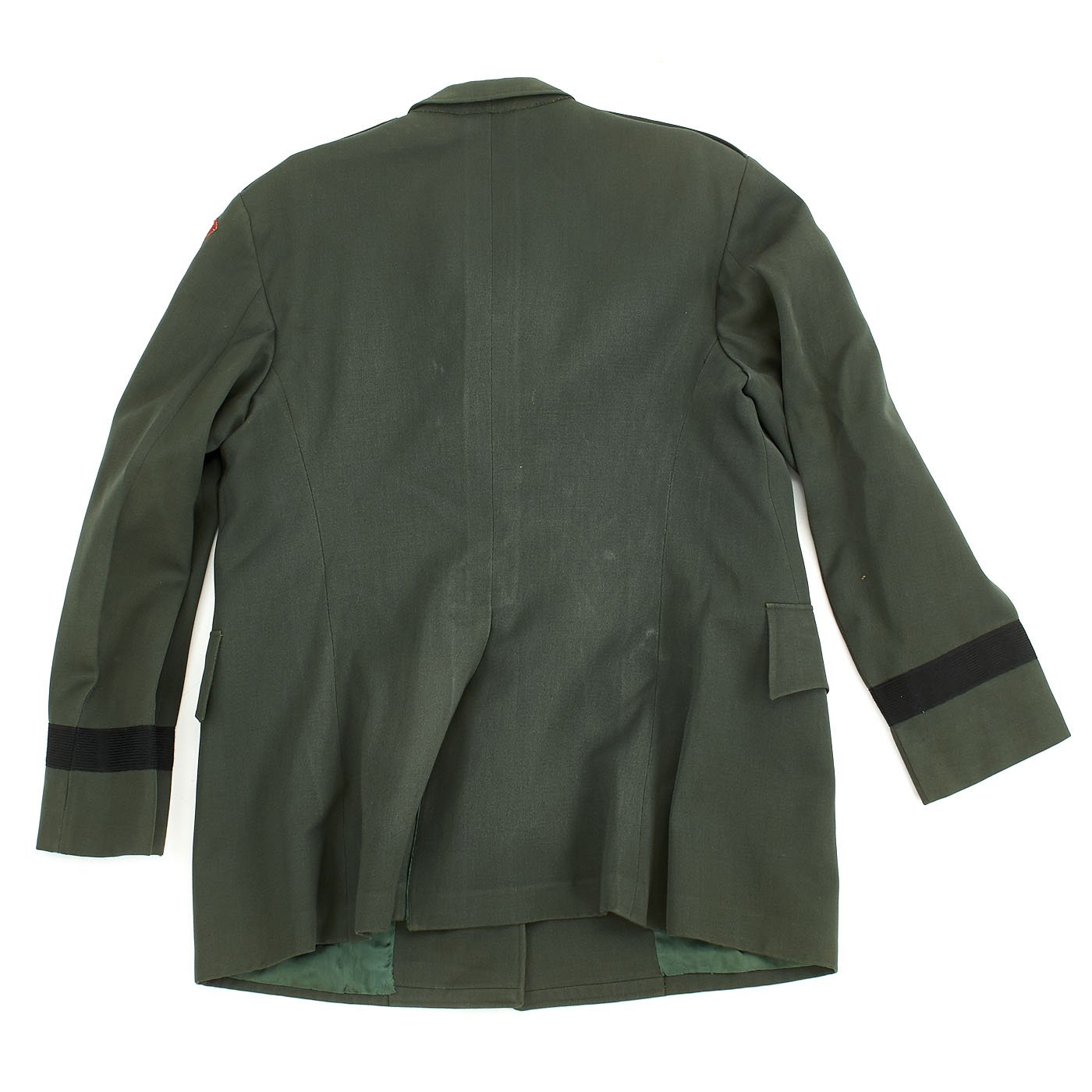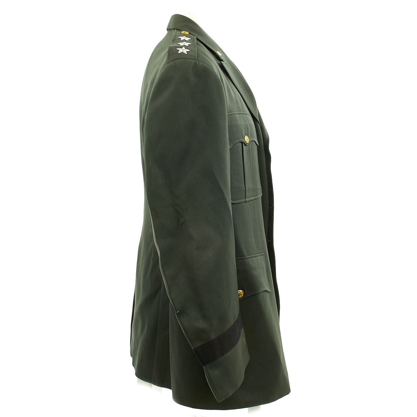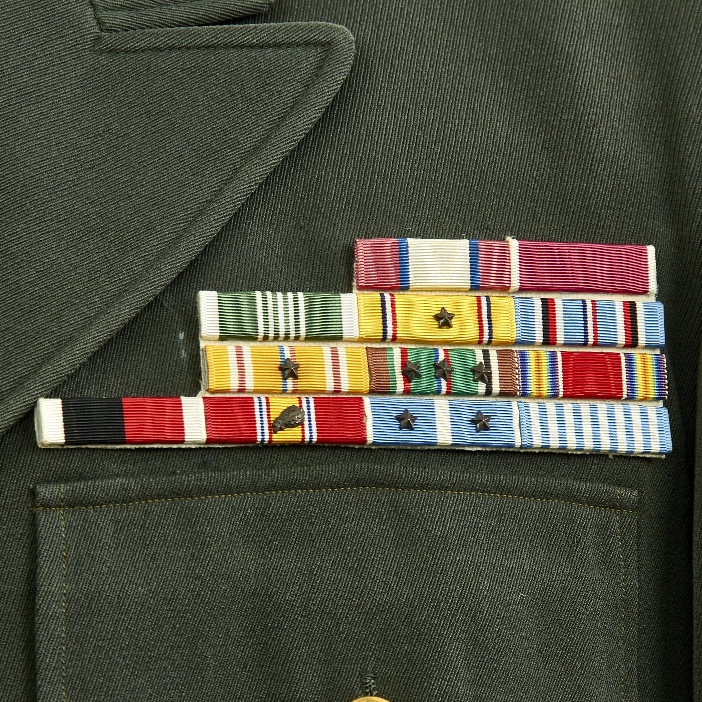 This Service Jacket and trousers is named on the inside tailor label to "Gen Colglazier". It is a large size approximately 42" US and offered in excellent condition. It is complete with bullion embroidered Lieutenant General three stars to the epaulets, medal ribbon bar and Fourth United States Army insignia patch. In 1964 he became the Commanding General of the Fourth US Army. The tailored pants are also included. This uniform dates from the Vietnam War Era. Both the jacket and pants are offered in excellent condition.