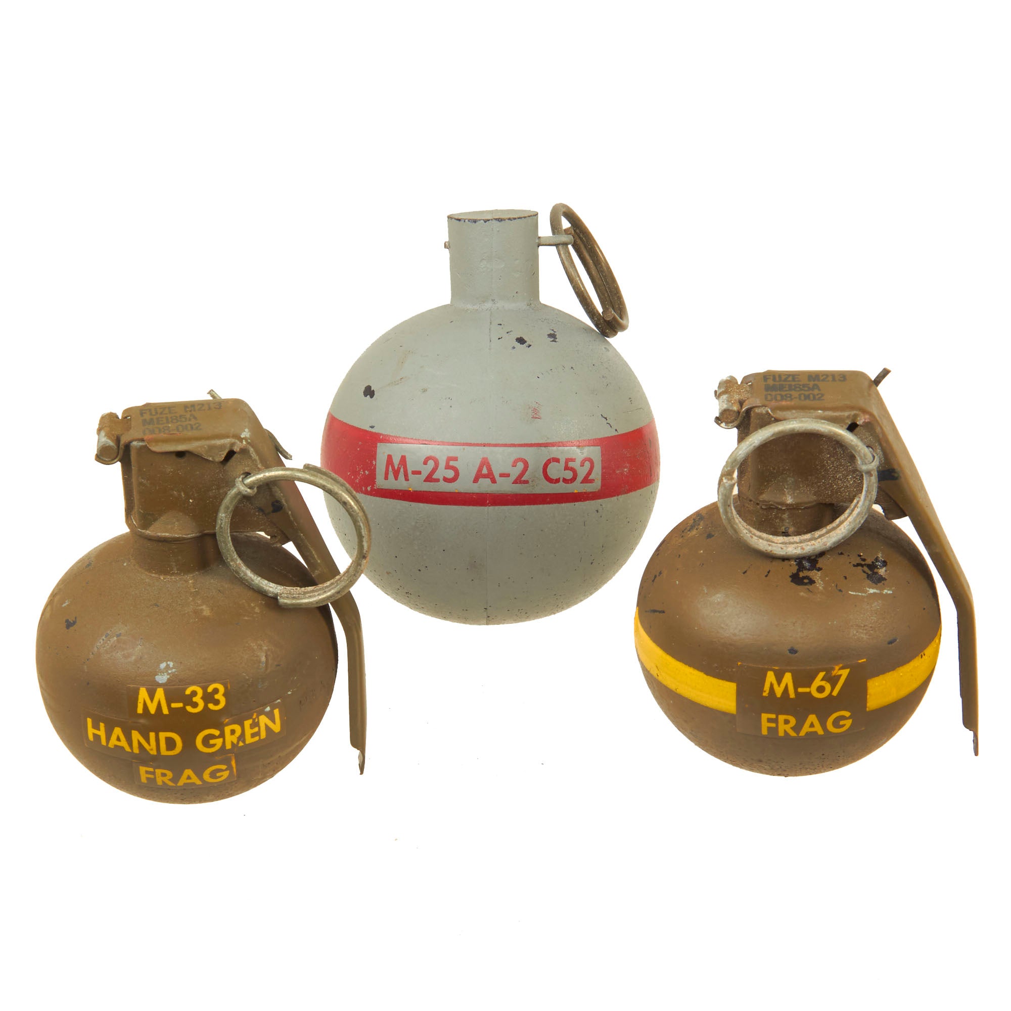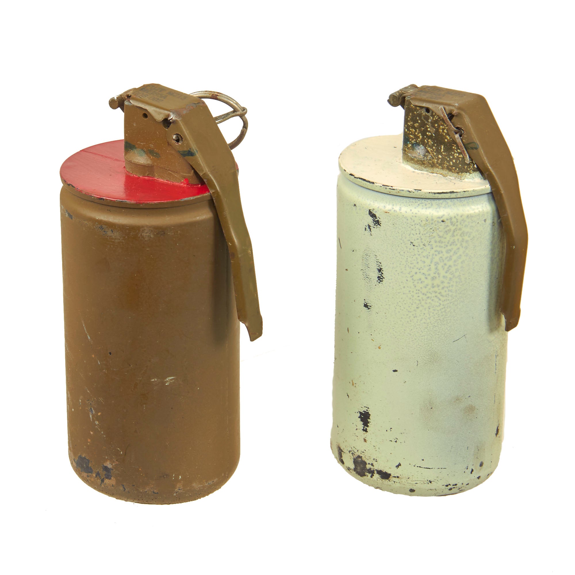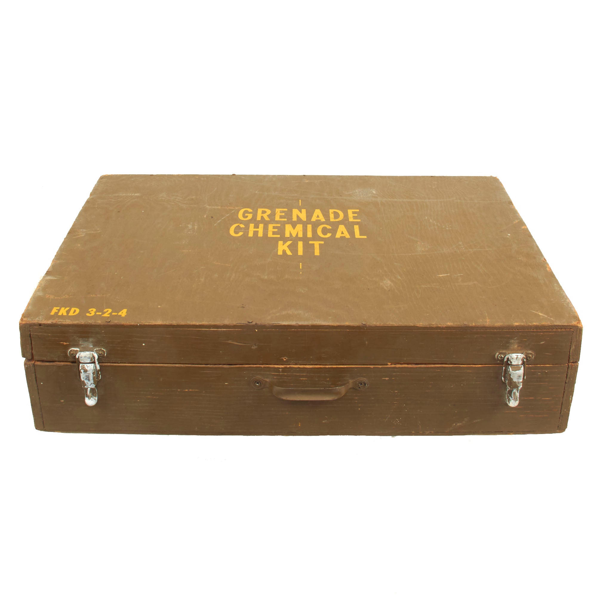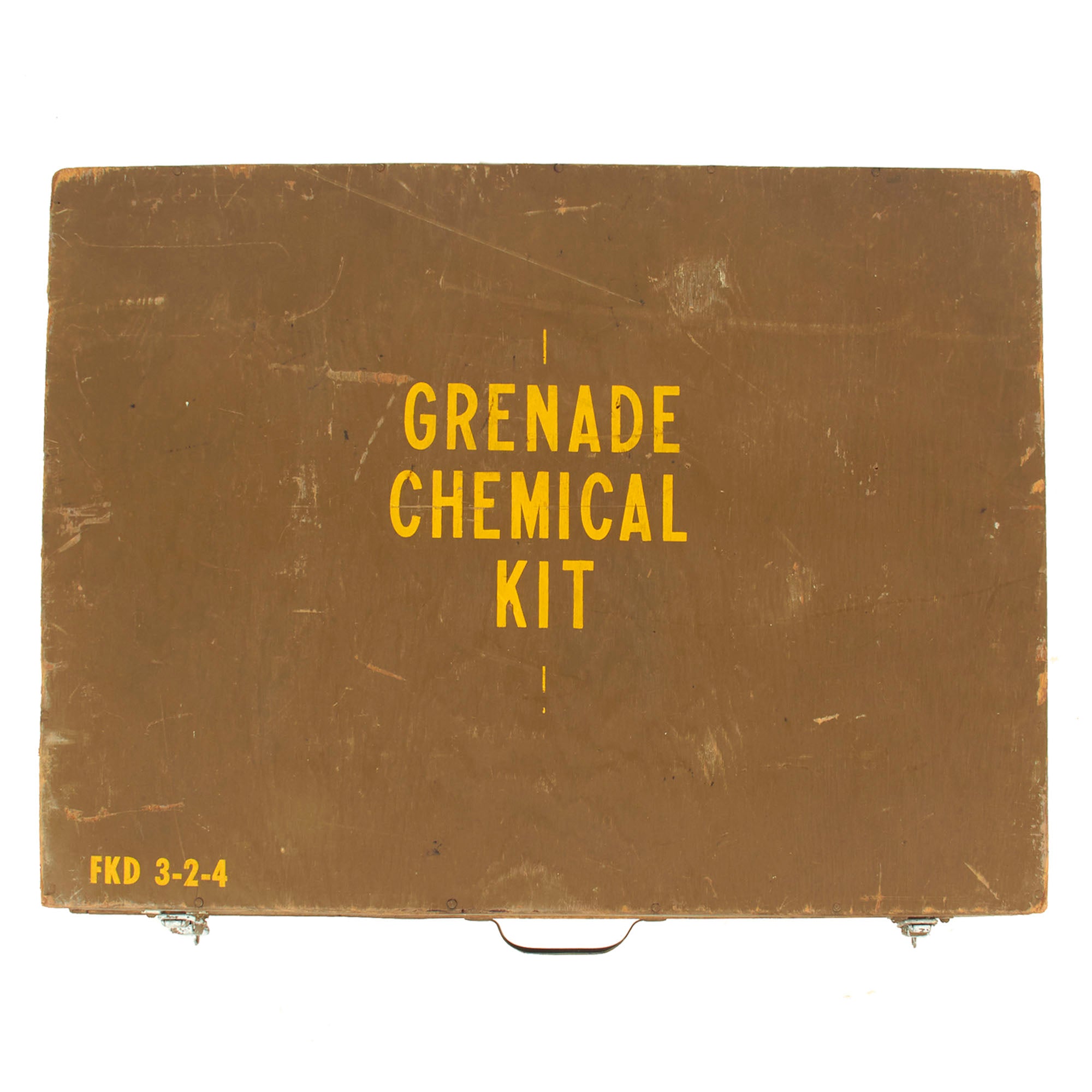 Original & Replica Items: Only One Set Available. This is a wonderful Vietnam War era Chemical Grenade Kit filled with high quality resin replica grenades. This class is chemical and gas grenades, which usually burn rather than explode. This class comprises smoke, incendiary (fire-setting), illuminating, chemical-warfare, and tear-gas grenades as well as two fragmentation grenades which were added in the kit.