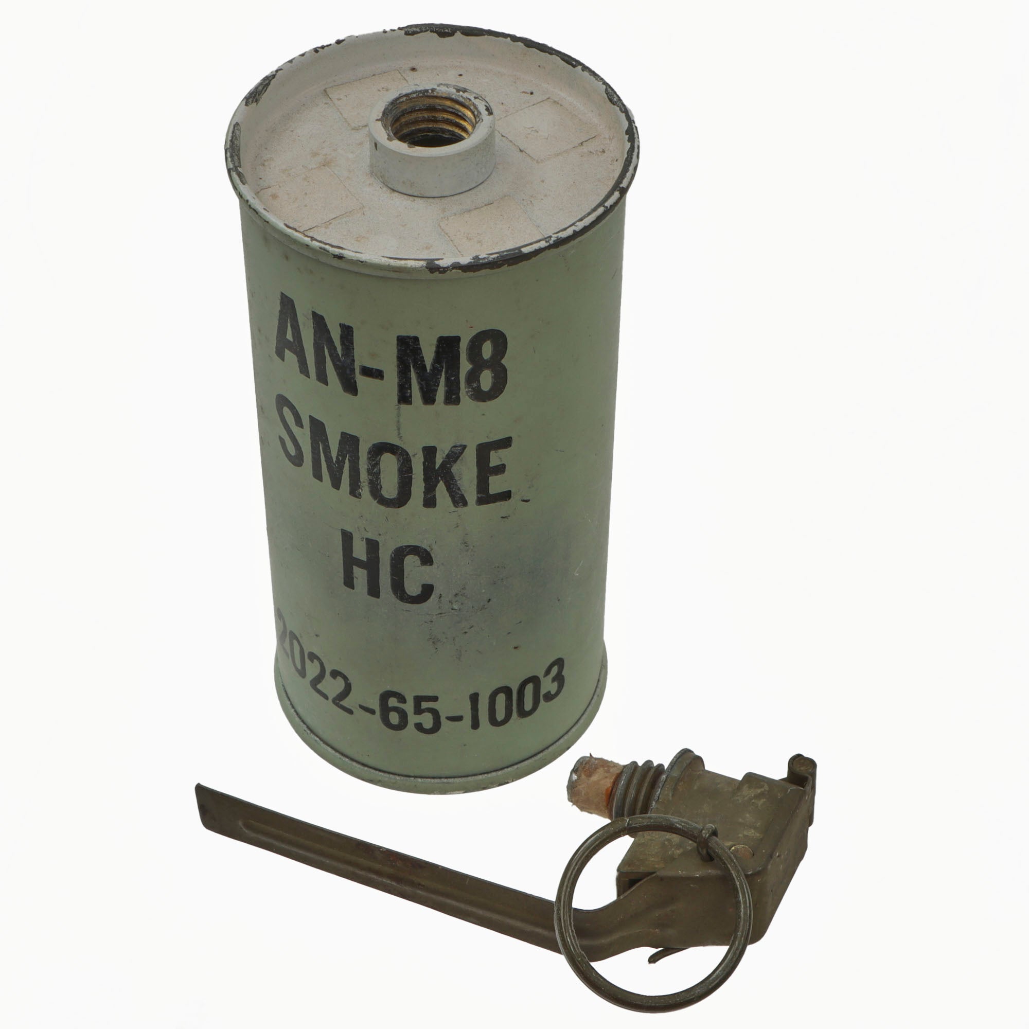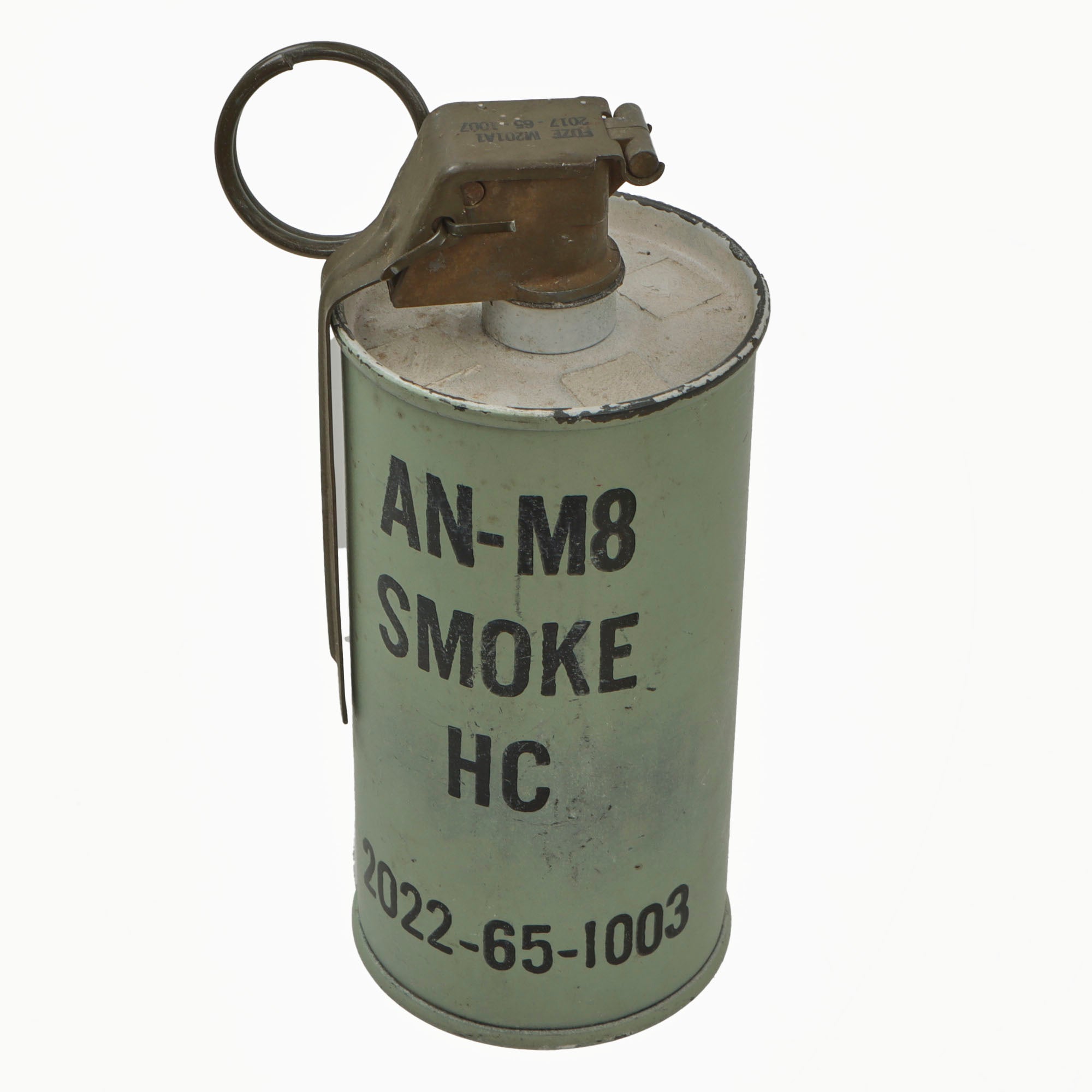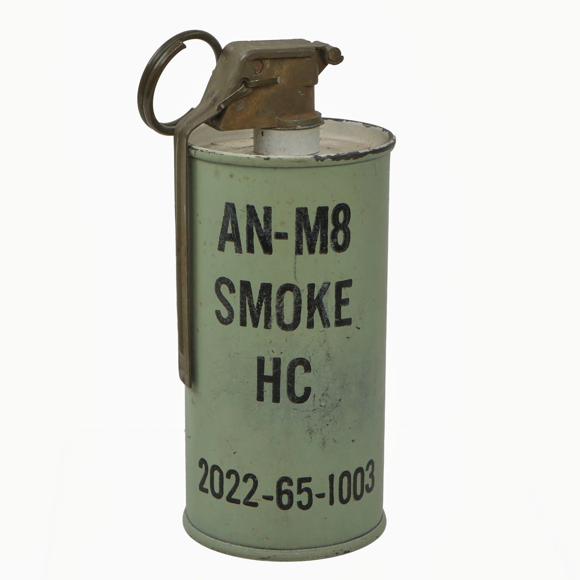 Original Item: Only One Available. The AN-M8 HC Smoke Grenade designated as the Army/Navy Model 8 HC Smoke Grenade (AN-M8 Smoke HC) is a US military grenade used as a ground-to-ground obscuring or screening device or a ground-to-air signaling or target-marking device.