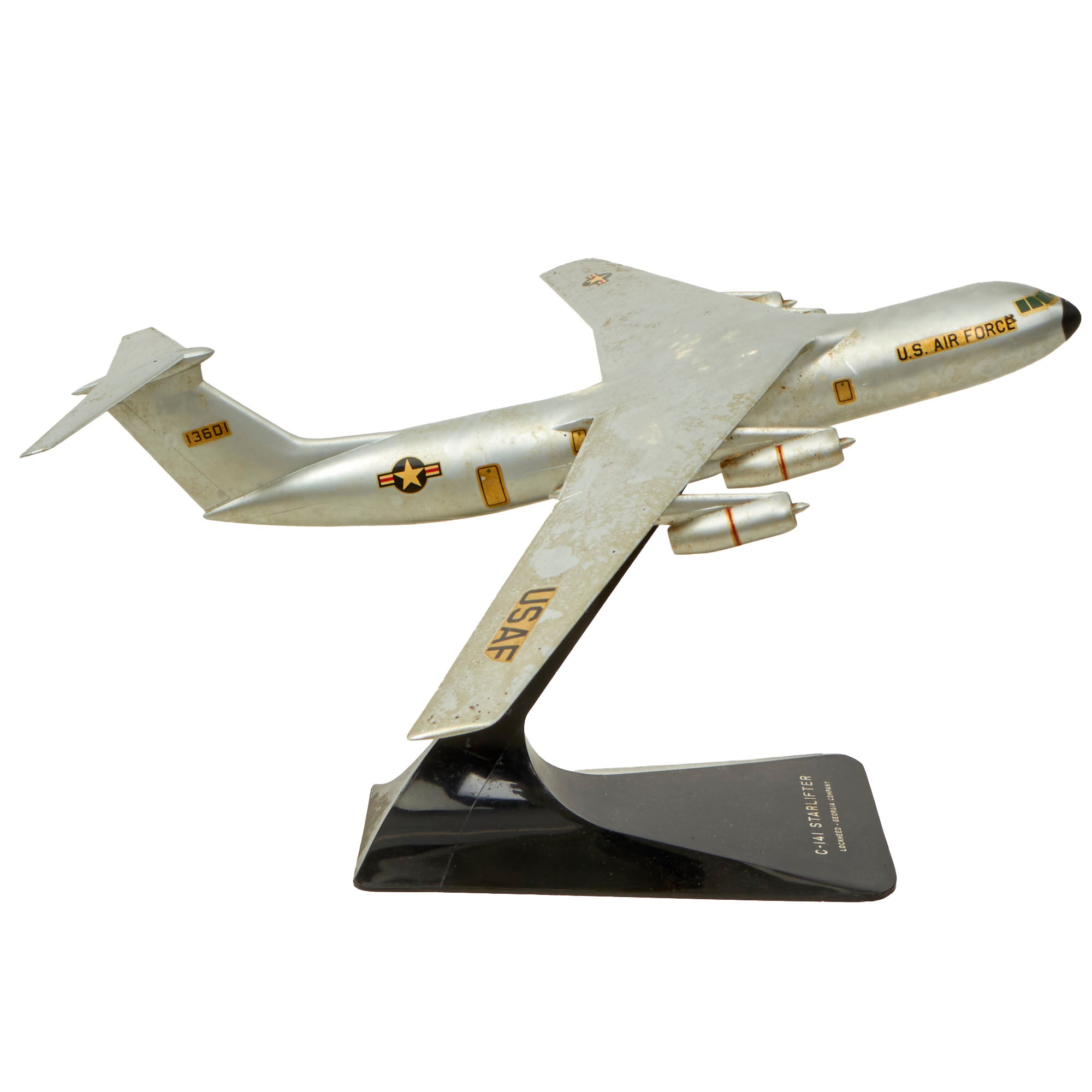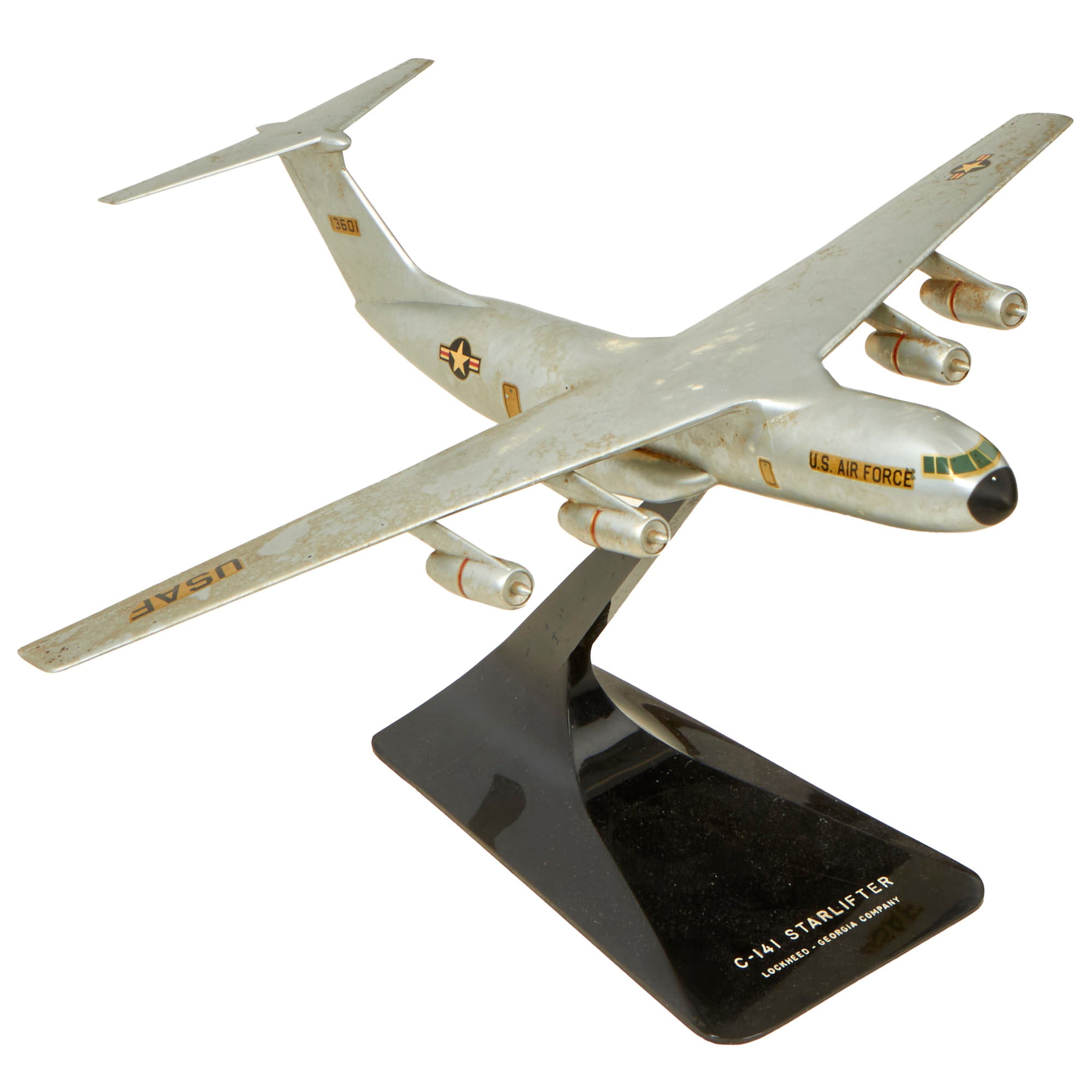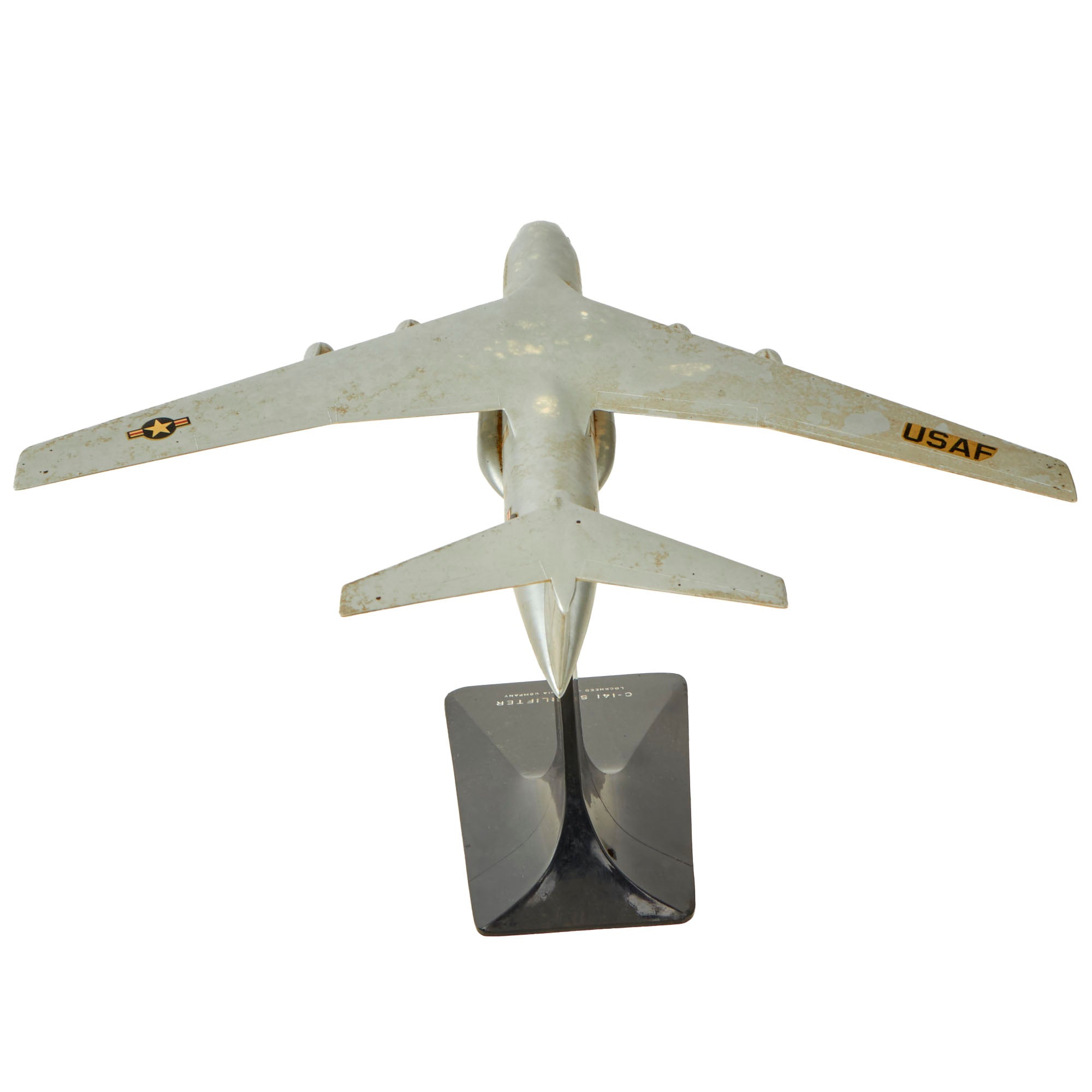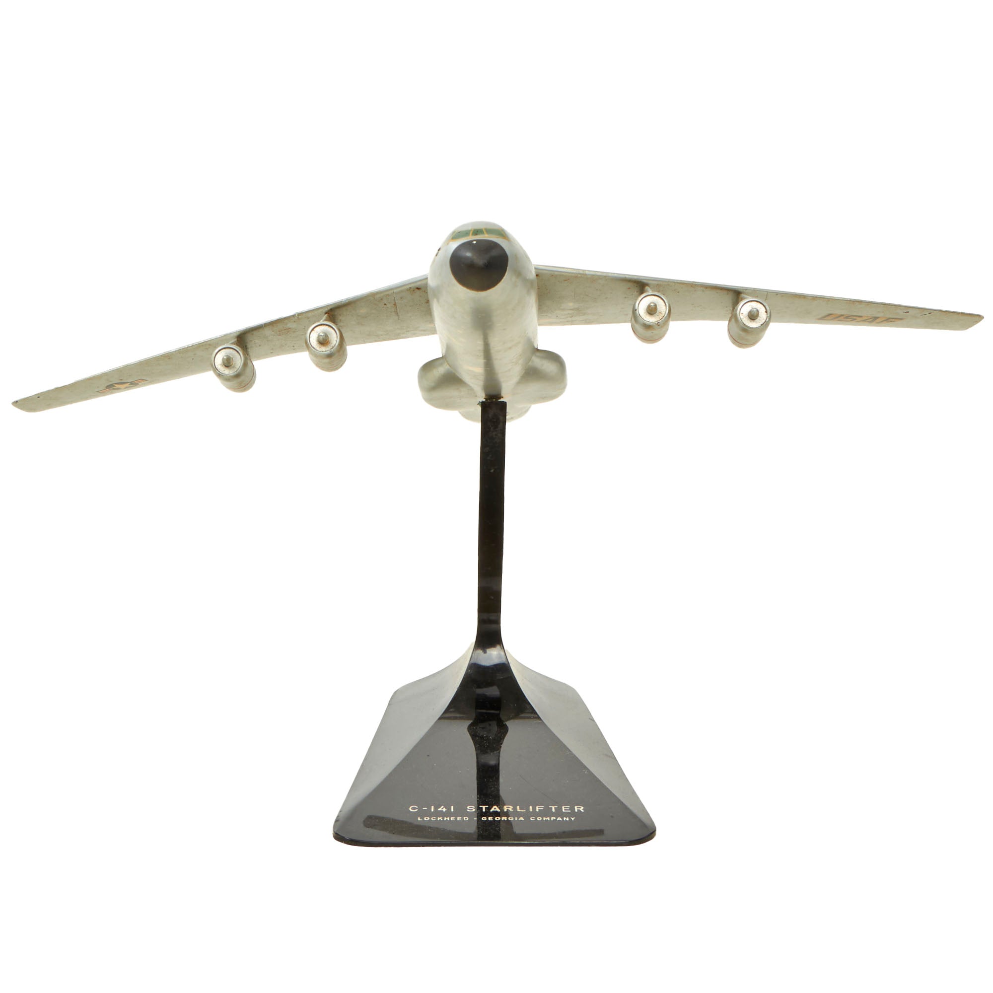• Original Item: Only One Available. This is an exquisite model of a US Air Force (and NASA) Lockheed C-141 Starlifter. It is a retired military strategic airlifter that served with the Military Air Transport Service (MATS), its successor organization the Military Airlift Command (MAC), and finally the Air Mobility Command (AMC) of the United States Air Force (USAF). The aircraft also served with airlift and air mobility wings of the Air Force Reserve (AFRES), later renamed Air Force Reserve Command (AFRC), the Air National Guard (ANG) and, later, one air mobility wing of the Air Education and Training Command (AETC) dedicated to C-141, C-5, C-17 and KC-135 training.