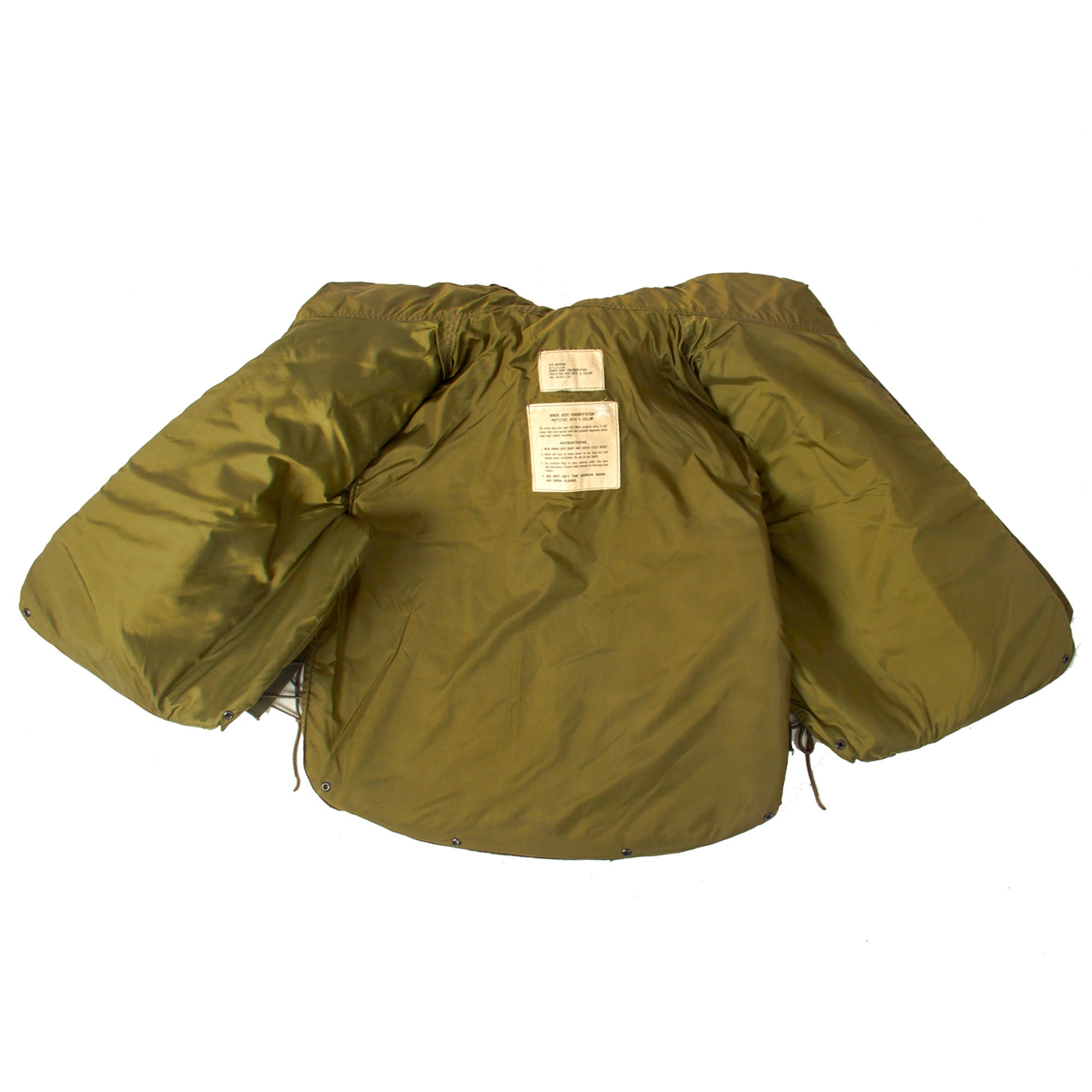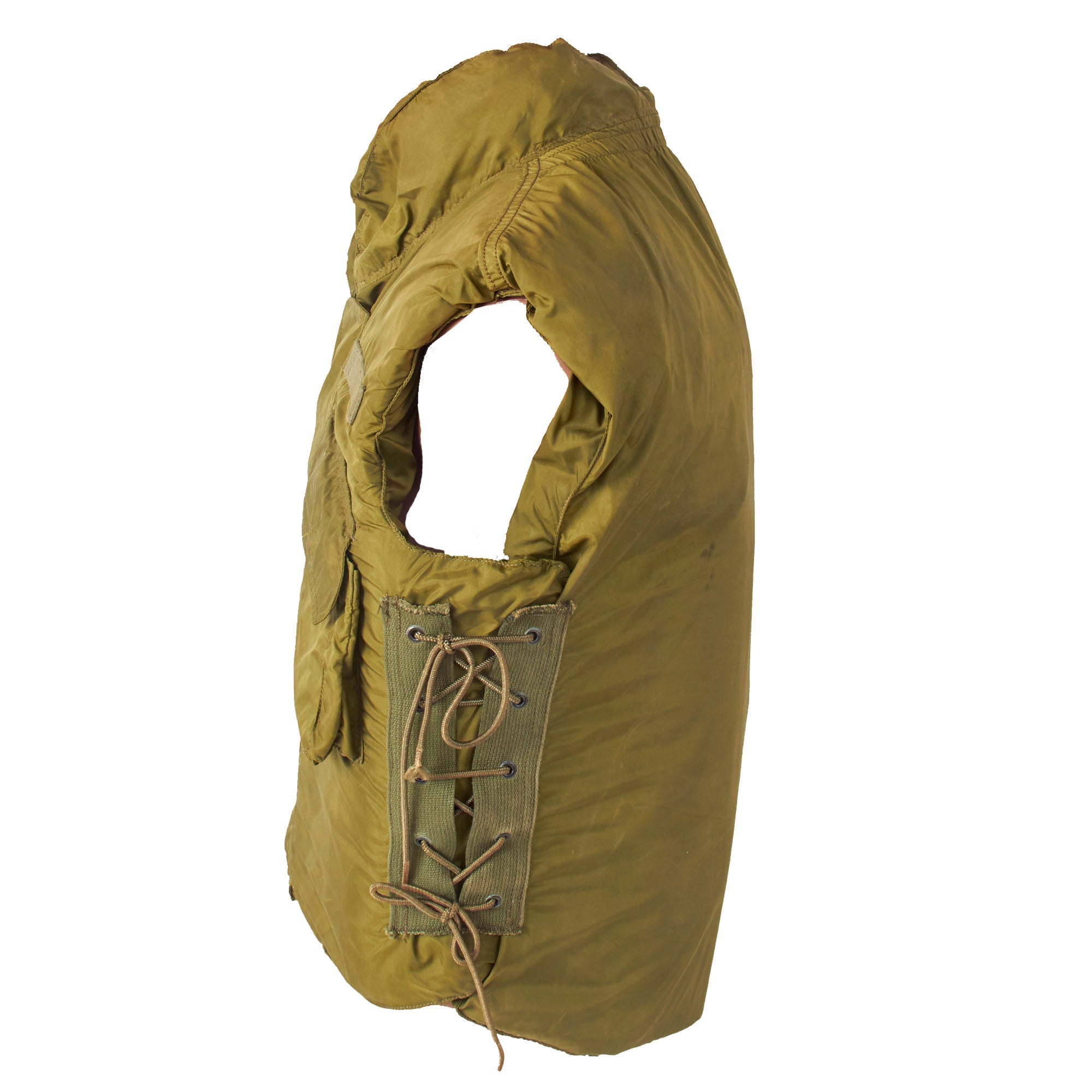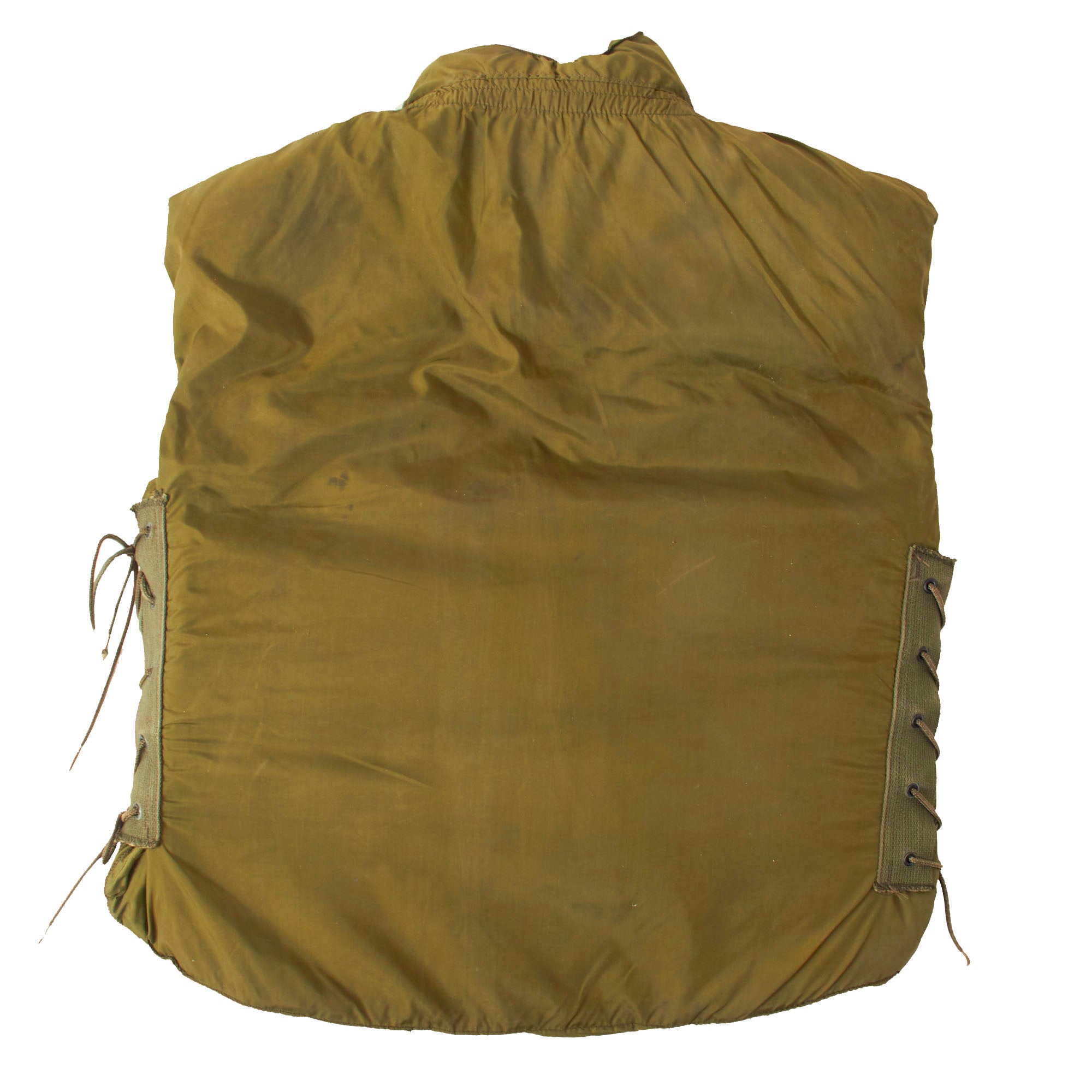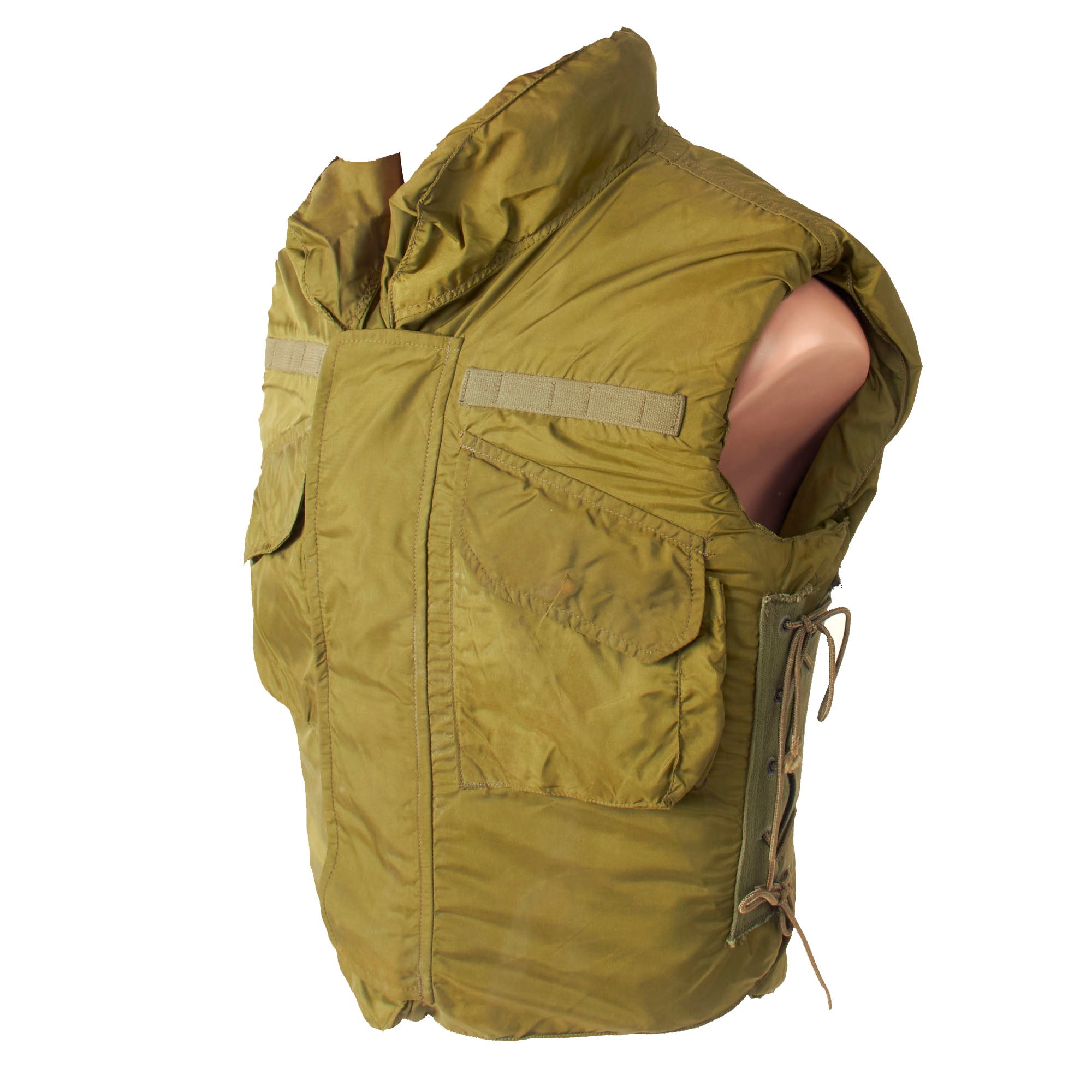 Original Item: Only One Available. This is a very good condition M69 Flak Vest Body Armor with 3/4 Collar in a size MEDIUM. These were designed with side elastic drawstrings, snap reinforced front zipper, and front two pockets. This allowed a secure fit and maximum protection from shrapnel and low velocity projectiles.