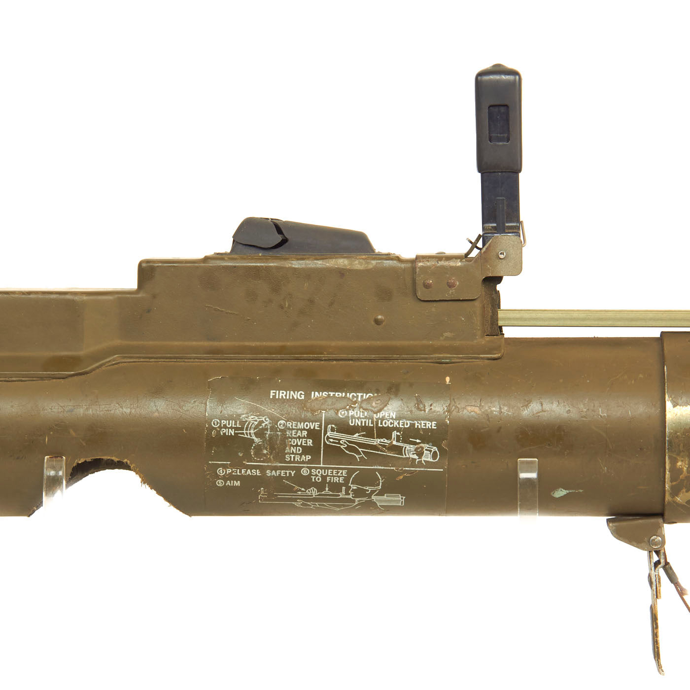 Original Item: Only One Available. This is an inert non-firing BATF compliant M72 LAW Light Anti-Tank Weapon offered in good condition. Once fired, these tubes are unable to be reloaded, however, the M190s were designed to be reloaded with a sub caliber trainer. This does not have the aluminum insert for the trainer and a solid bar has been inserted in the tube to restrict the reconversion from being made.