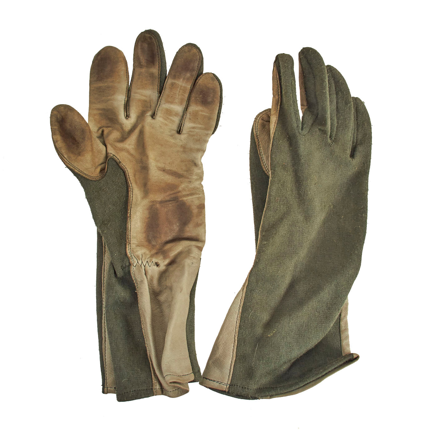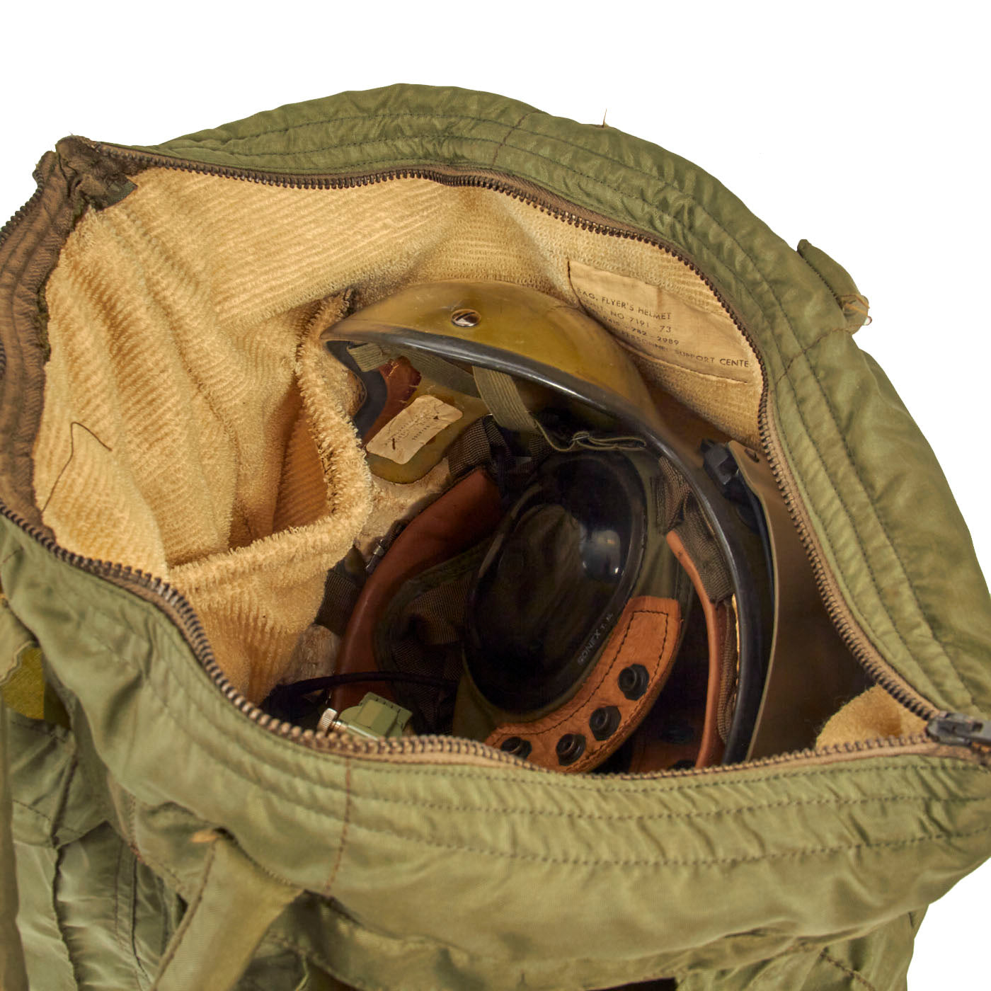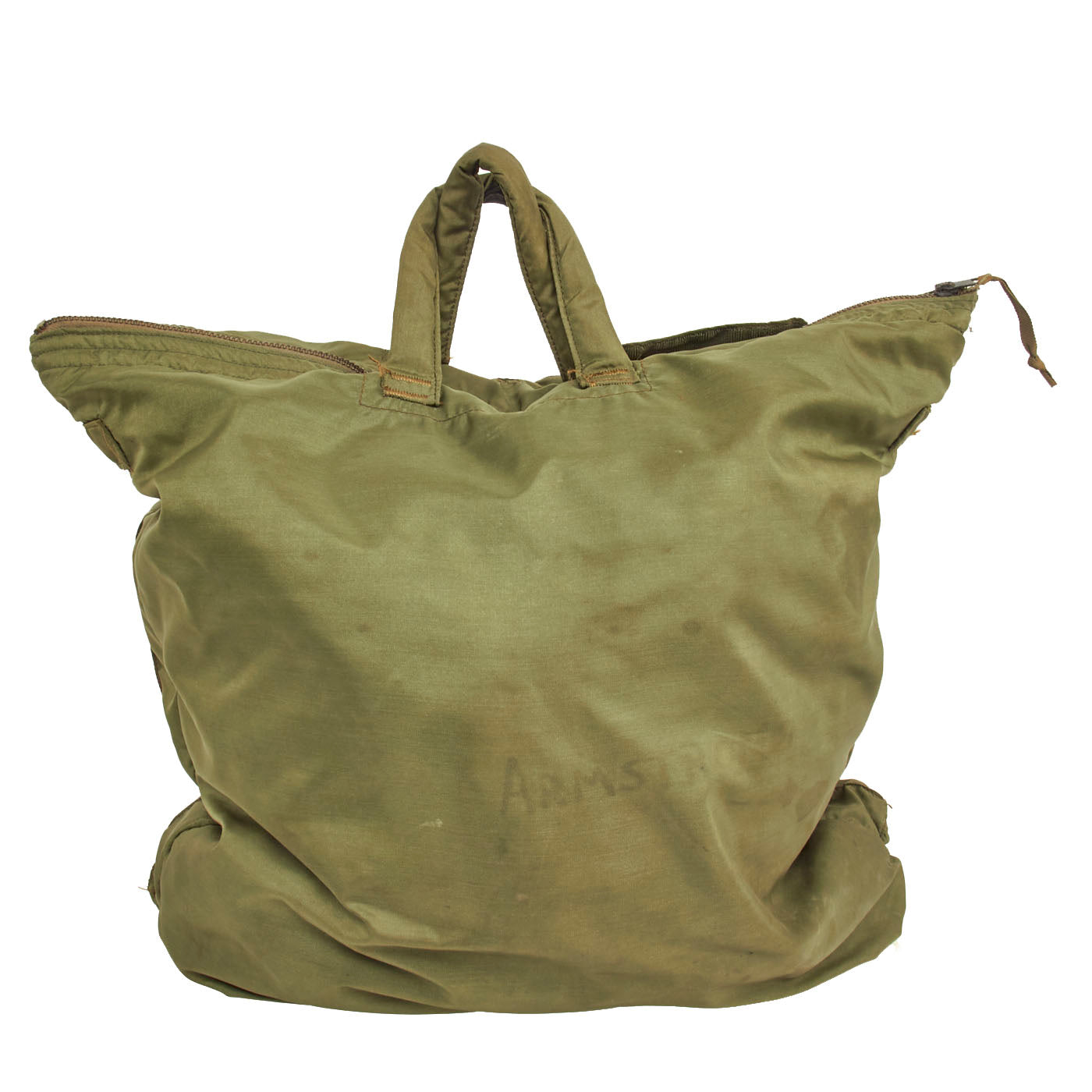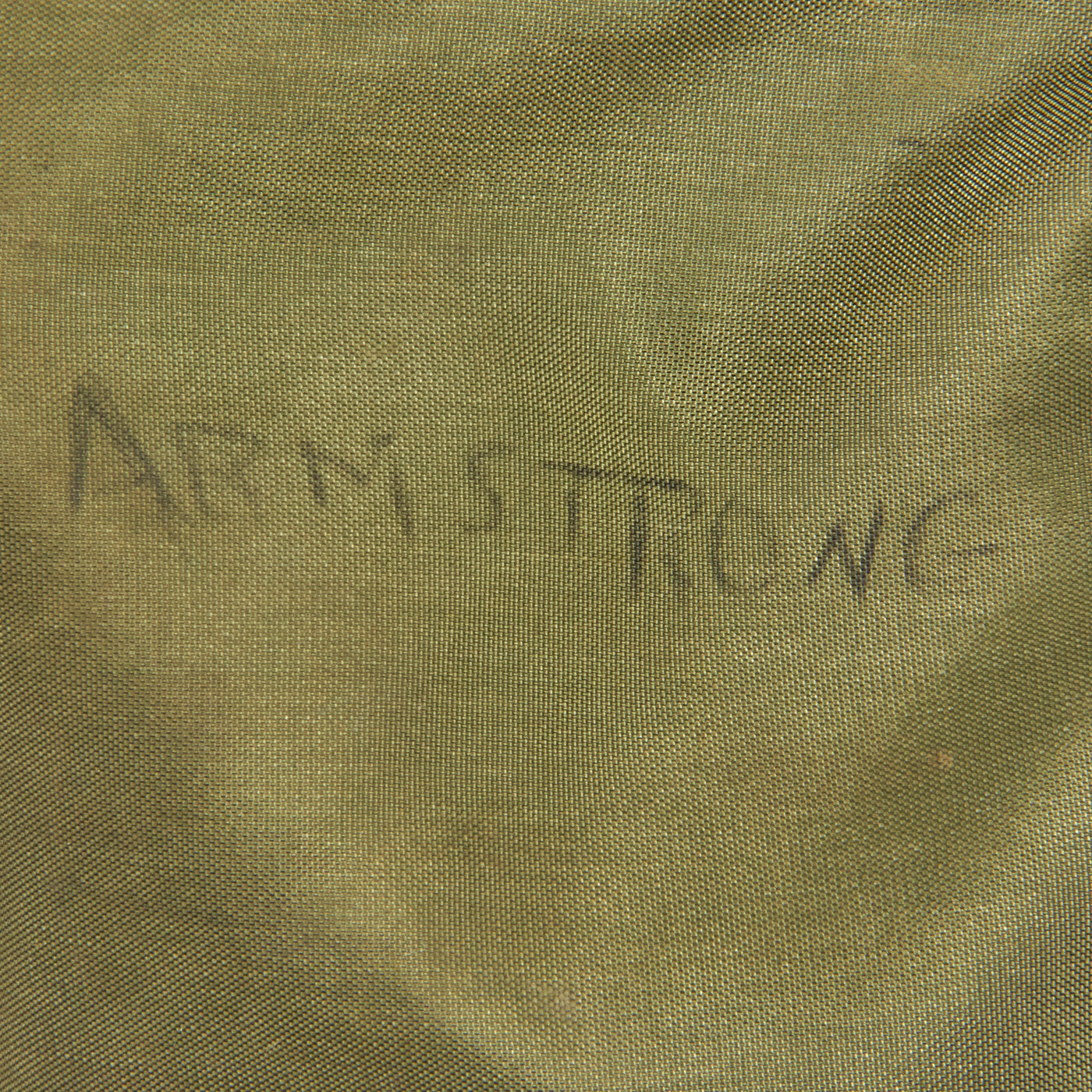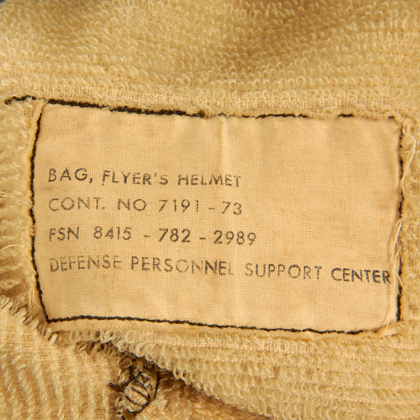 There are 2 pairs of summer flying gloves located in the bag, both sets with 1977 dates on the inside. The helmet bag is in lovely condition and retains the inside data label which has a 1973 date on it. The name ARMSTRONG can also be found in several spots on the outside, making this a lovely marching set!