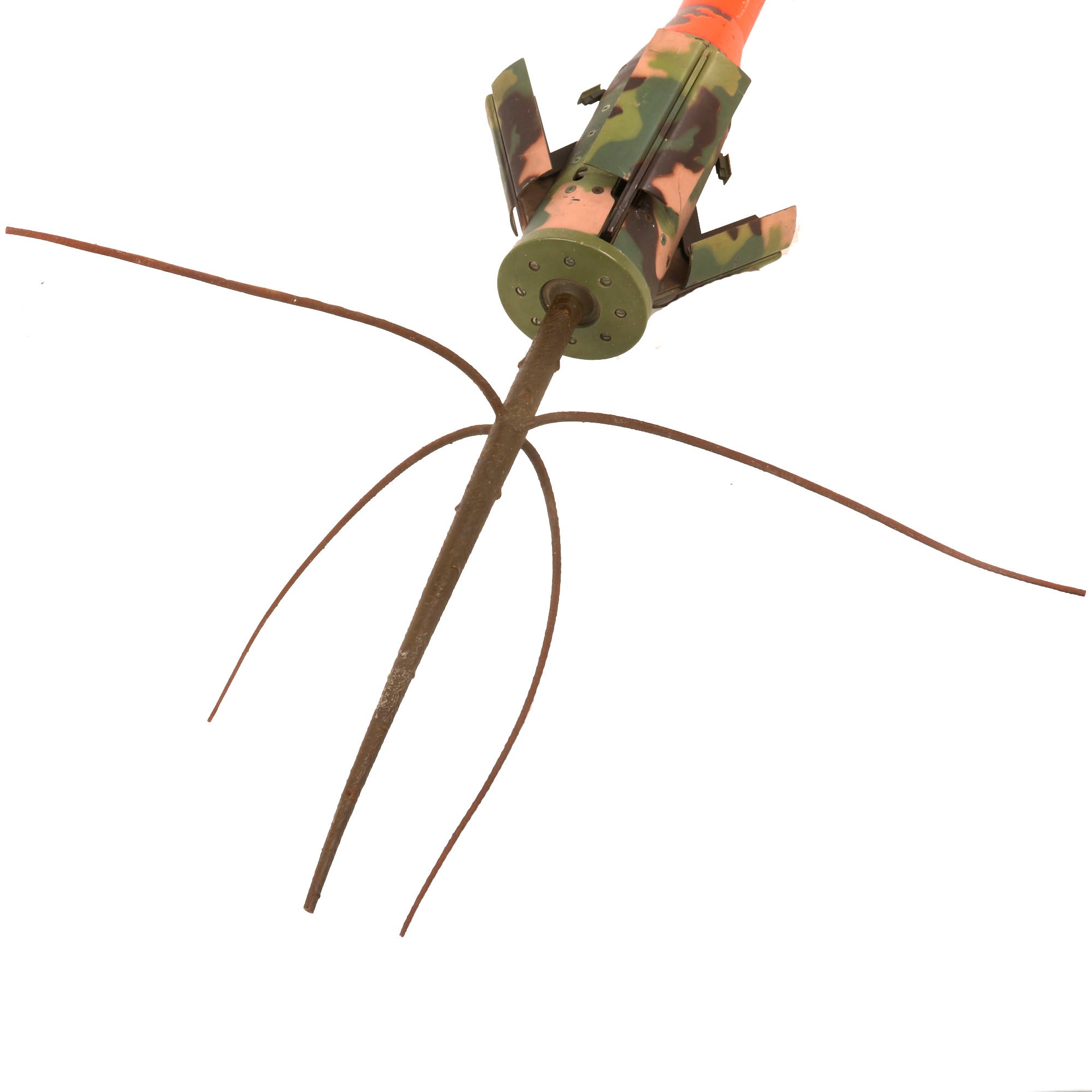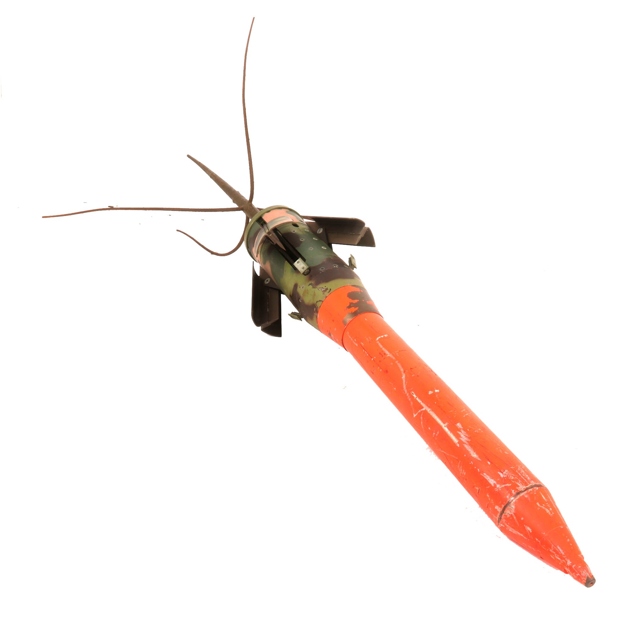 Original Item: Only One Available. Using the cover of darkness, dense jungle and bad weather, North Vietnamese trucks carried critical supplies down the Ho Chi Minh Trail nearly undetected. Since large numbers of American ground troops were not permitted into neutral Laos to stop the trucks, the U.S. Air Force deployed a system of electronic seismic sensor equipment to thwart the enemy's cover and alert U.S. commanders. This highly-classified electronic system was known as Project Igloo White.The sensors were dropped from aircraft along the Ho Chi Minh Trail, and were essentially a giant lawn dart. The sensor would fall to earth and then penetrate the ground. The end of the sensor would protrude from the ground, with the antenna pointing vertically. The sensor’s antenna was camouflaged to be mistaken for foliage in the dense jungle undergrowth. The thought behind the project was to estimate movements of vehicles and troops along the Ho Chi Minh Trail, and once large seismic readings were picked up, aircraft would be dispatched to bomb the area.This sensor is in wonderful condition with a great camouflage paint pattern present on the bottom portion, with the majority being painted orange, and all complete, which usually they are not! This is one of the harder versions to find, the ADSID III with the fold out flanged “wings”. Measures approximately 58 inches long. All of the exterior components are present, however we have no way to check to see if the internal electronics are still intact and/or present.This is one of the best examples we have ever had the pleasure of offering! Comes ready for further research and display!NOT AVAILABLE FOR EXPORTProject Igloo White:The system became operational in late 1967, and it consisted of three elements: sensors dropped by aircraft along the Ho Chi Minh Trail, an orbiting EC-121B "Batcat" or the QU-22B aircraft that picked up and relayed signals from the sensors, and the Infiltration Surveillance Center (ISC), which received the data. Operated by Task Force Alpha at Nakhon Phanom Royal Thai Air Force Base (NKP RTAFB), the ISC interpreted the sensor data and passed target information to combat commanders, who sent attack aircraft to the target.The Igloo White sensors on display are but a few of the many types employed along the Trail. Some sensors detected seismic disturbances created by passing trucks; some sensors used microphones to pick up nearby voices; and other sensors detected both seismic disturbances and voices.Dropped from F-4 Phantoms, CH-3 helicopters, OV-10s and other aircraft, they were designed to drive into the ground but leave the antenna exposed. The antennas were made to look like a small tree or bush to hide them from the enemy. Over 20,000 sensors were dropped in Laos, and 80 percent of the sensors were operational after dropping.Types of sensors:- ADSID (Air Delivered Seismic Intrusion Detector) - Used an internal geophone to detect personnel or vehicles in motion- ACOUSID (Acoustic and Seismic Intrusion Detector) - used seismic and acoustic devices; could transmit sound from a built-in microphone- HELOSID (Helicopter Delivered Seismic Intrusion Detector)