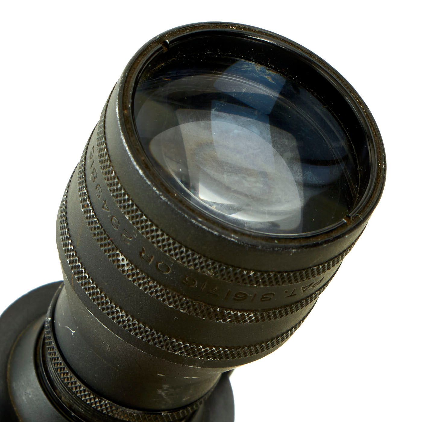 This example, as far as we can tell, is fully functional with clear optics and even has the rangefinding reticle still highly visible. During the war, the moisture from the jungle humidity would get inside of the scopes and fog up the lenses eventually “dissolving” the reticle, so to find one with it still fully intact is great!