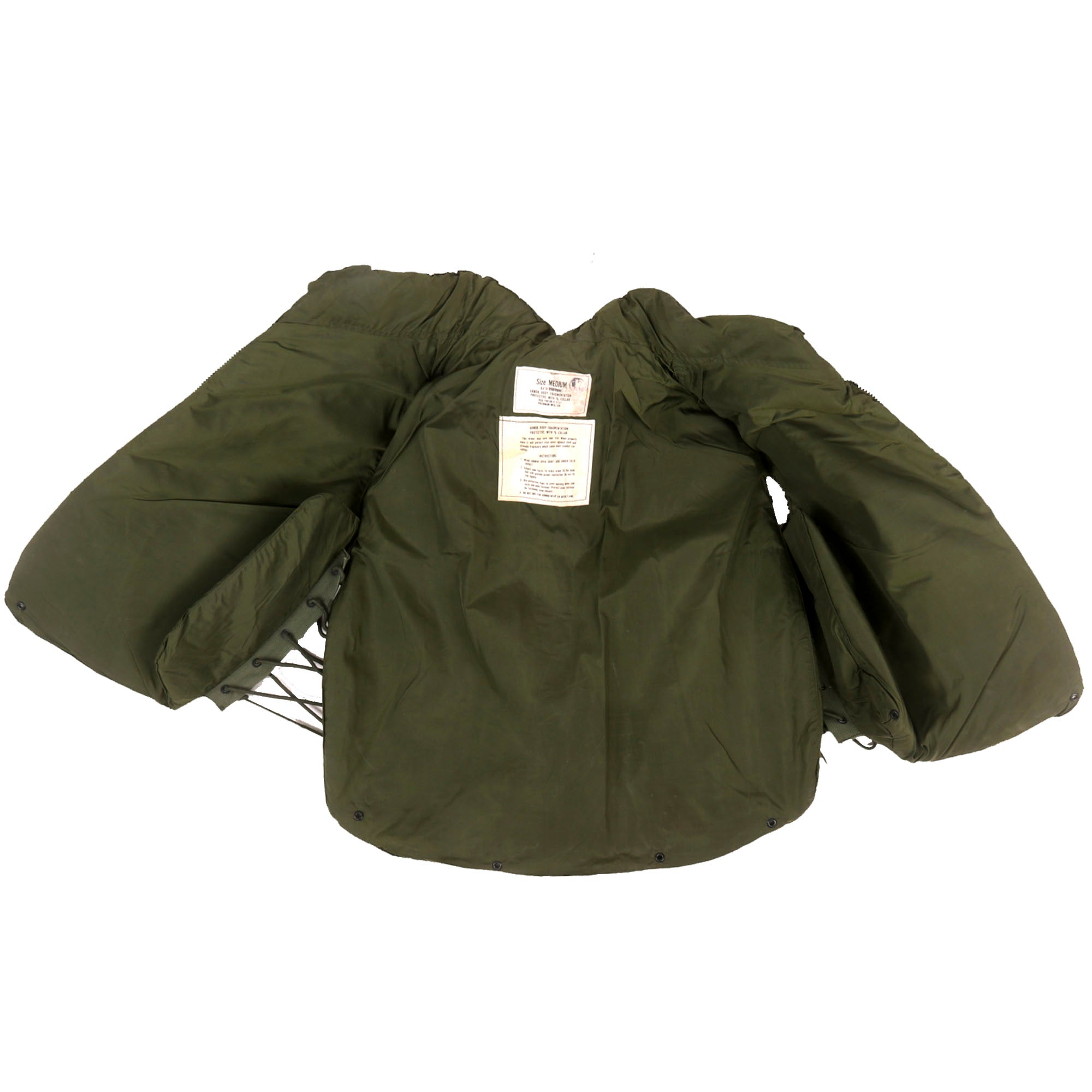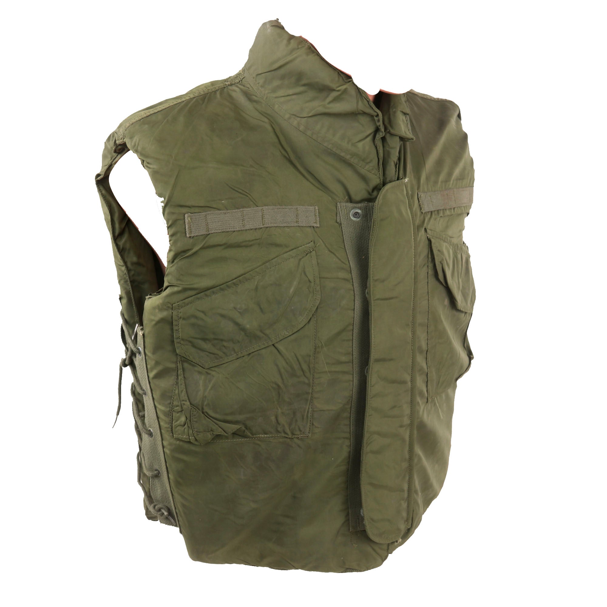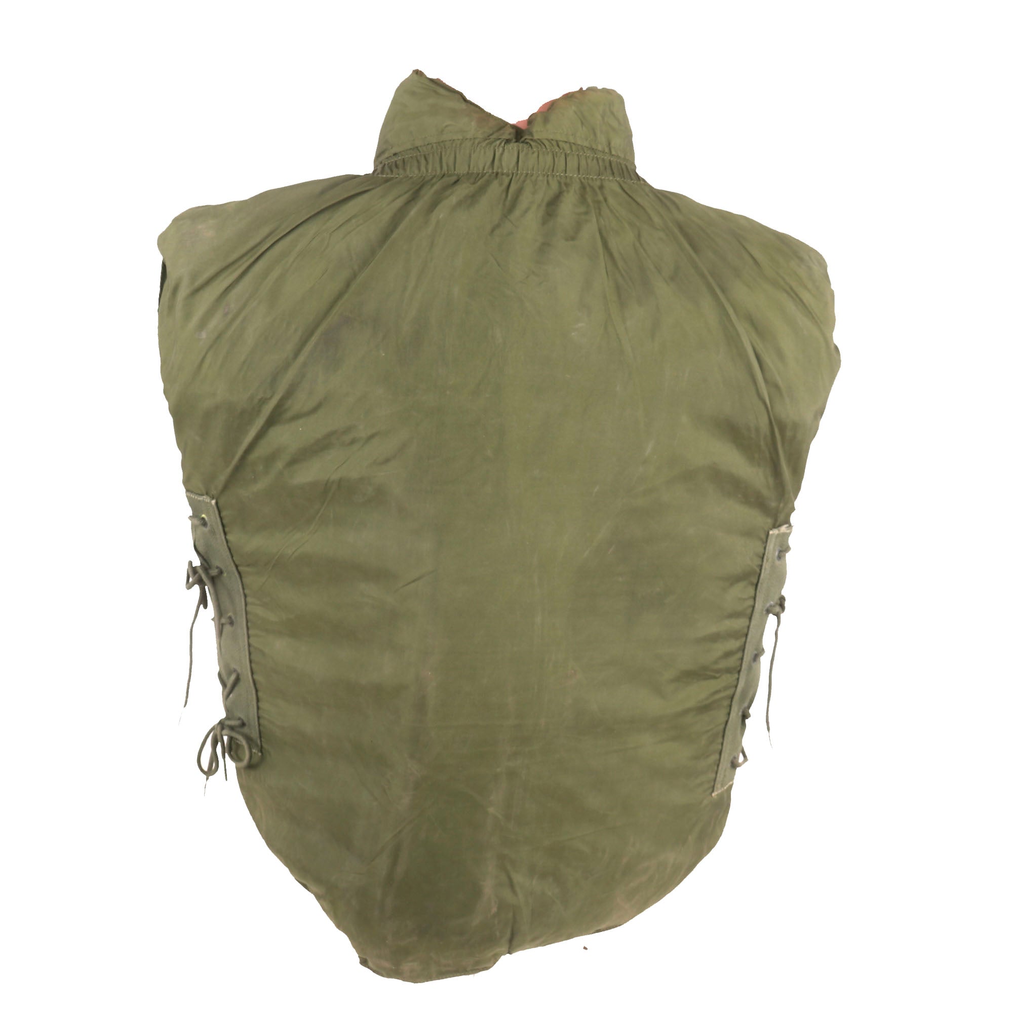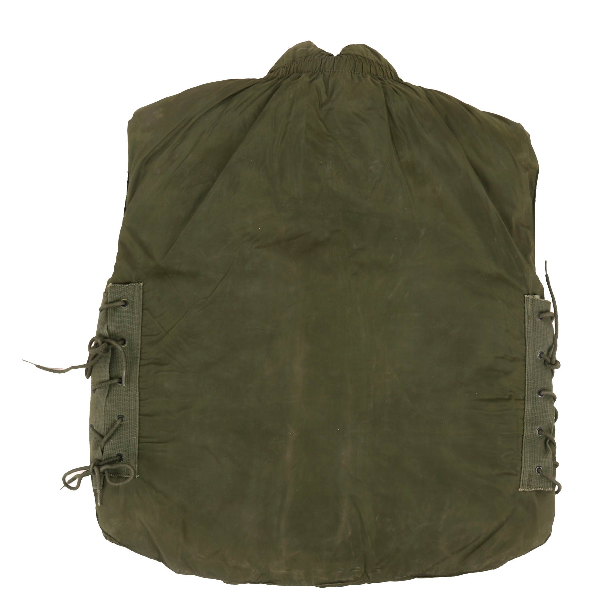 Original Item: Only One Available. This is a good condition M69 Flak Vest Body Armor with 3/4 Collar in a size MEDIUM. These were designed with side elastic drawstrings, snap reinforced front zipper, and front two pockets. This allowed a secure fit and maximum protection from shrapnel and low velocity projectiles. This is a very early production, dated 1968.Widely used by Army infantry, Navy sailors and Marines also were equipped with these, though not widely. Like its predecessor M-1952A, it was fabricated from 12 plies of ballistic nylon, to protect the wearer from explosion fragments. In fact, the name “M69” is the 1969 version of this series body armor’s model (ARMOR, BODY FRAGMENTATION PROTECTIVE, WITH ¾ COLLAR). This example differs from the normal M69 as there are snap closures instead of the velcro used in the official M69. Since this series of body armor are similar to each other, people refer to all of them by “M69”.This example still retains both labels, the first reading:SIZE MEDIUM8470-823-7371 (122-1300)ARMOR, BODY, FRAGMENTATIONPROTECTICE, WITH ¾ COLLARDSA-100-68-C-2727RACHMAN MFG. CO.This indicates it was manufactured in 1968 by the Rachman Manufacturing Company. The bottom instruction label reads:ARMOR, BODY FRAGMENTATIONPROTECTIVE, WITH 3/4 COLLARThis armor may save your life! When properly worn, it willProtect vital areas against shell and grenade fragments whichCause most combat casualties.INSTRUCTIONS1. WEAR ARMOR OVER SHIRT AND UNDER FIELD JACKET2. Adjust side laces to make armor fit the body but stillprovide proper ventilation. Do not fit too tightly.3. Use protective flaps to cover opening under side lacesand slide fastener. Protect slide fastener by fastening snapclosure.4. DO NOT DRY THE ARMOR NEAR AN OPEN FLAME.The flak jacket is in wonderful, service worn condition, offered in size medium.Comes ready for display.