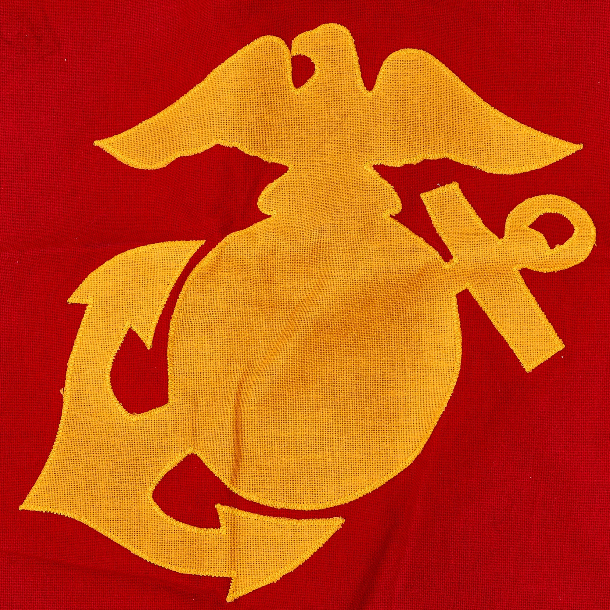 A Marine guidon is always rectangular, 22 by 28 inches (56 cm × 71 cm), with a scarlet field and gold lettering, and an Eagle, Globe, and Anchor centered.