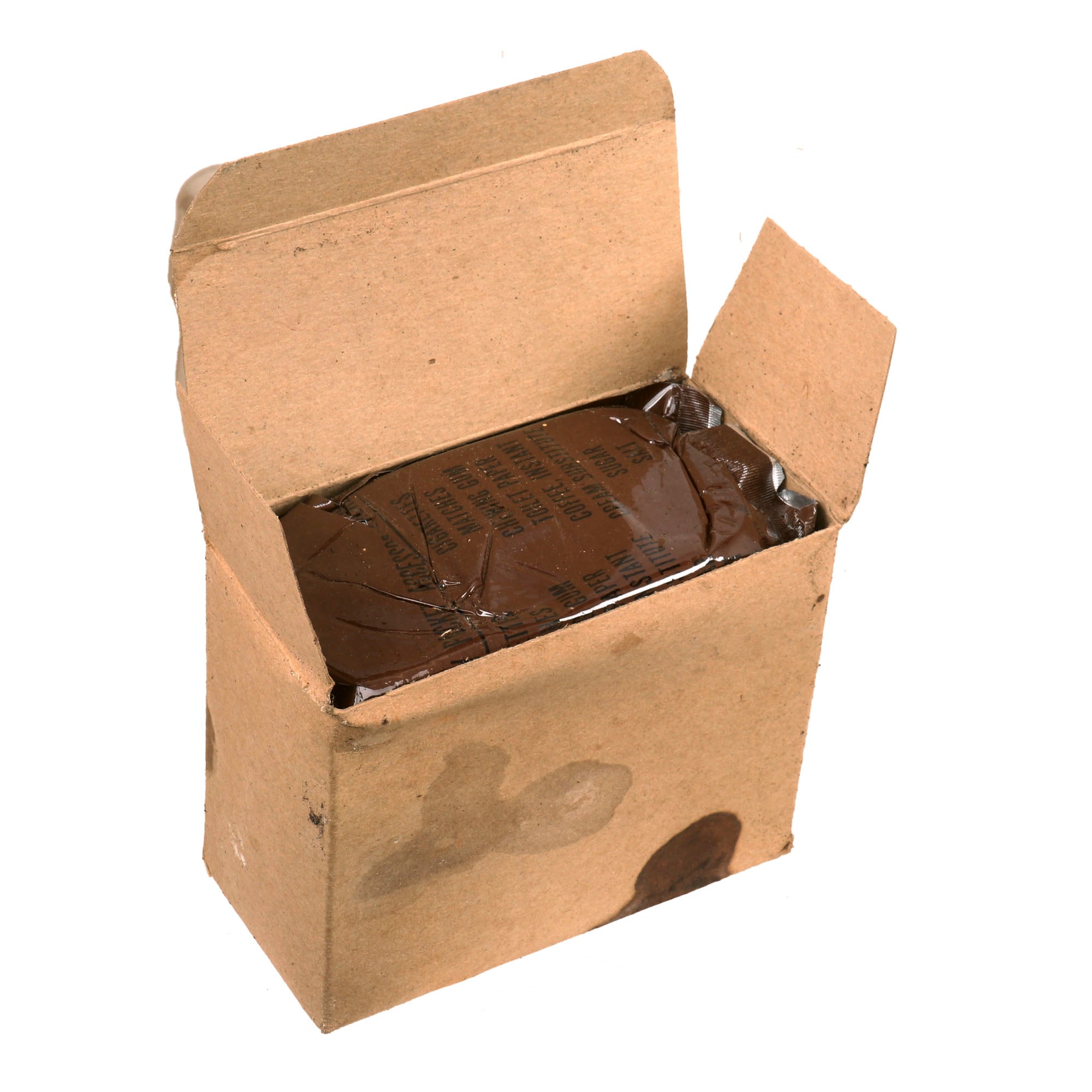 Original Item: Only One Available. Now this was a fantastic discovery! It’s not very often you come across a C-Ration case still full. While the initial specification was officially declared obsolete in 1945, and production of all Type C rations ended in 1958, existing stockpiles of both original and revised Type C rations continued to be issued to troops serving in Korea and even as late as the Vietnam War. A Marine tank commander serving in Vietnam in 1968 noted his unit was frequently supplied with older stocks of C-rations, complete with early 1950s dates on the cans. With that being said, the contents inside are more than likely a decade older than the 1968 date stamped on the box.