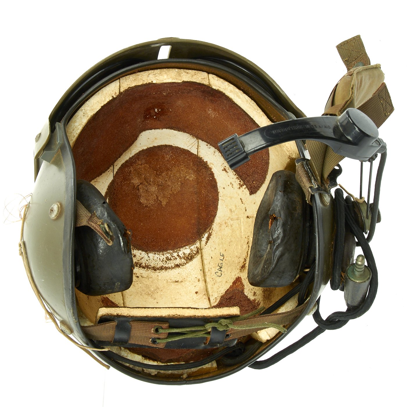 Original Item: Only One Available. This is a United States Helicopter Flight Helmet type SPH-4 made by Gentex. The helmet is in overall very good condition with headset, visor, microphone, tint visor, but missing the fabric suspension liner. Helmet size is Large. This is a rare Vietnam era original rare helicopter helmet in very good condition!