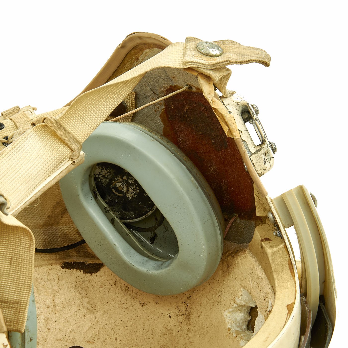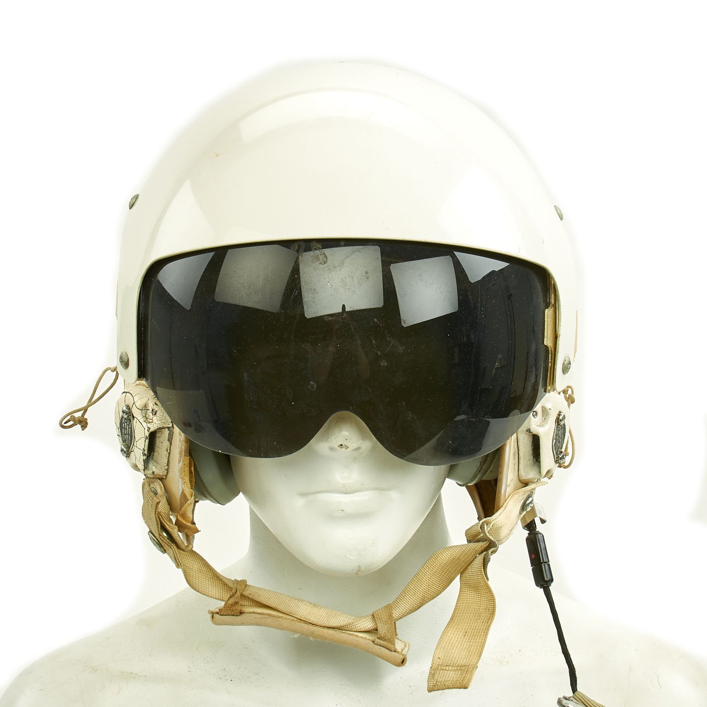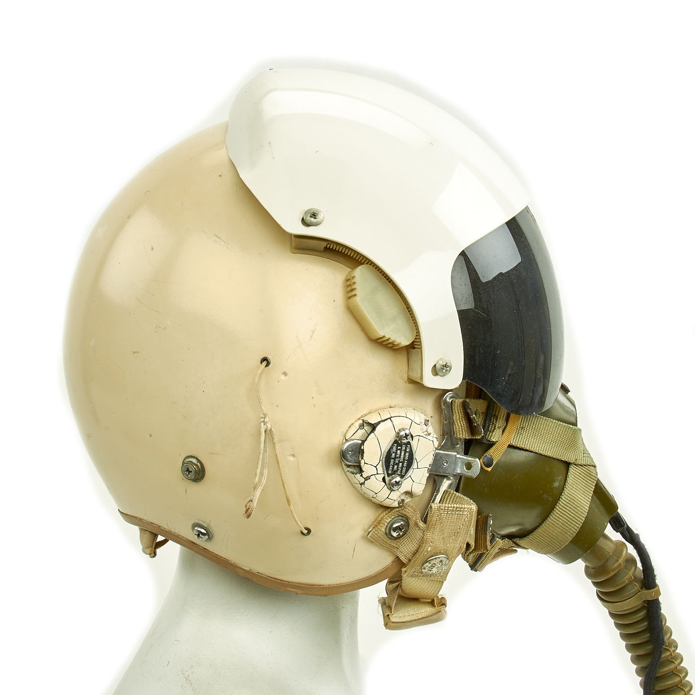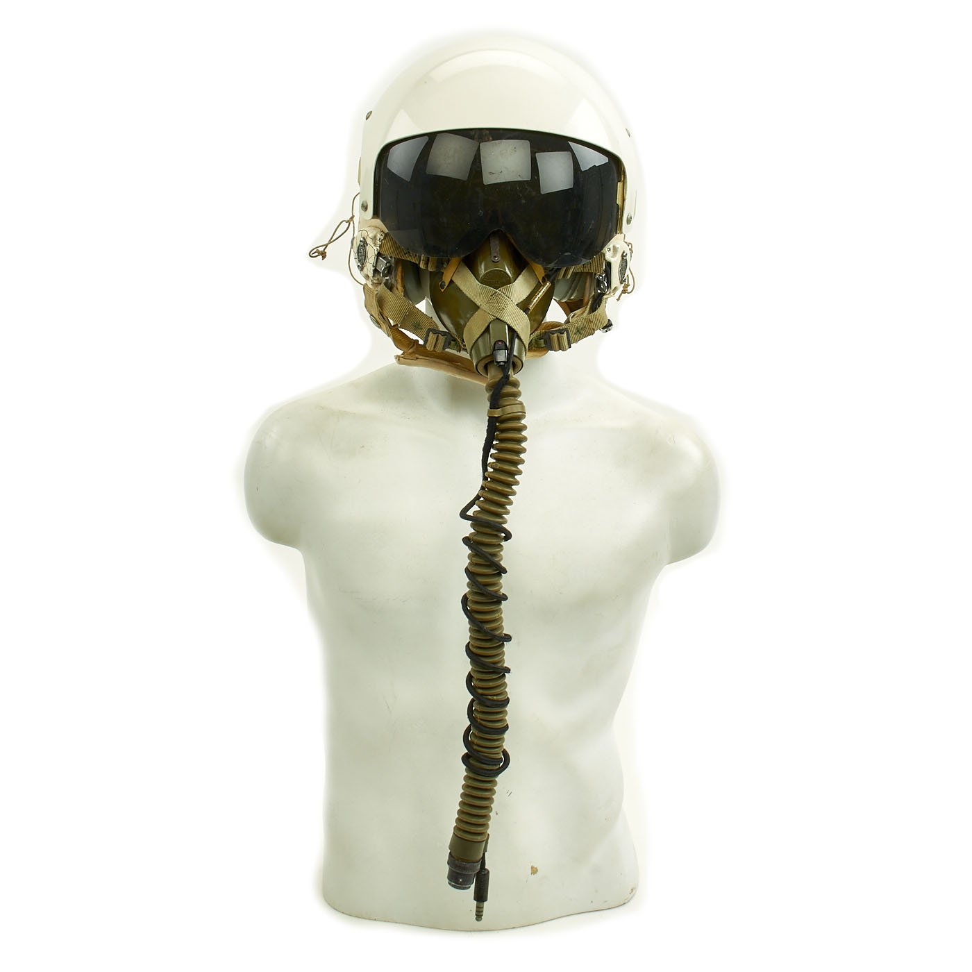 This example is on very good condition and consists of a Gentex manufactured HGU-26/P Flight Helmet with both a Tinted and Clear Visor, with bayonet receivers, oxygen mask, and edge roll.