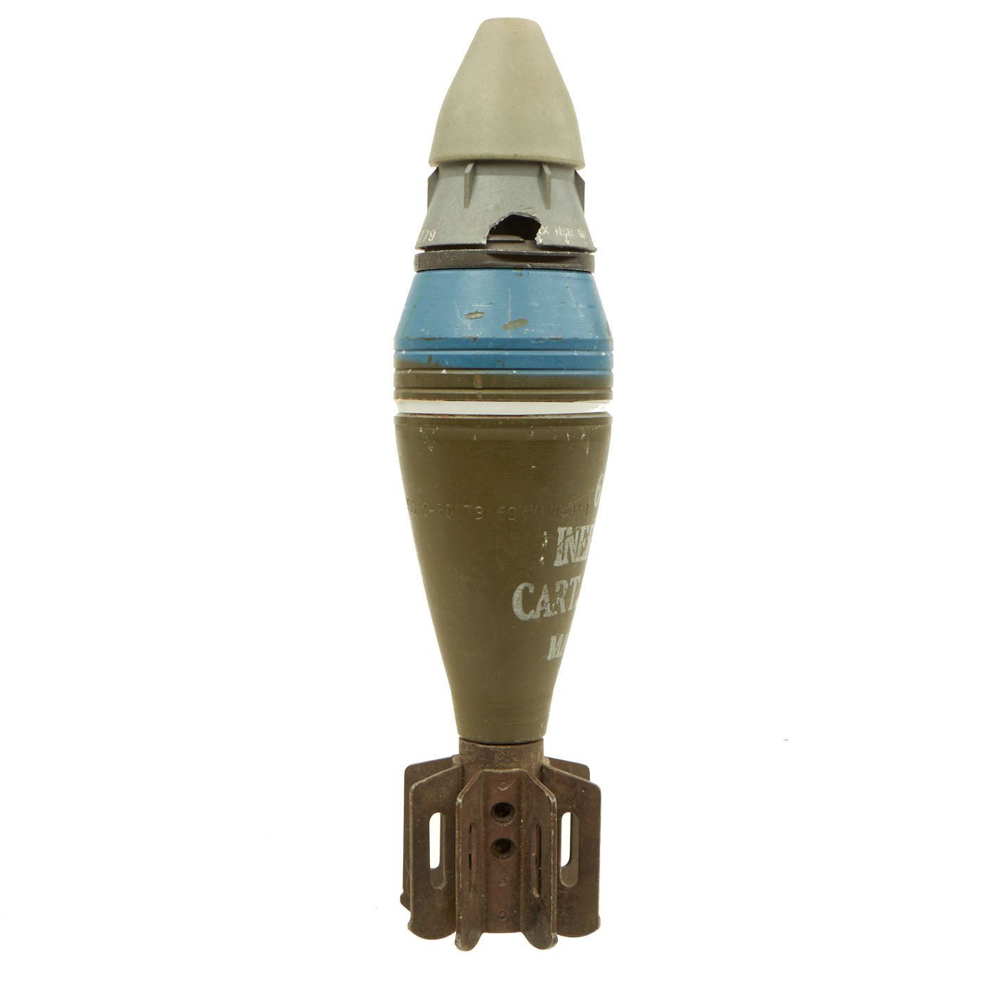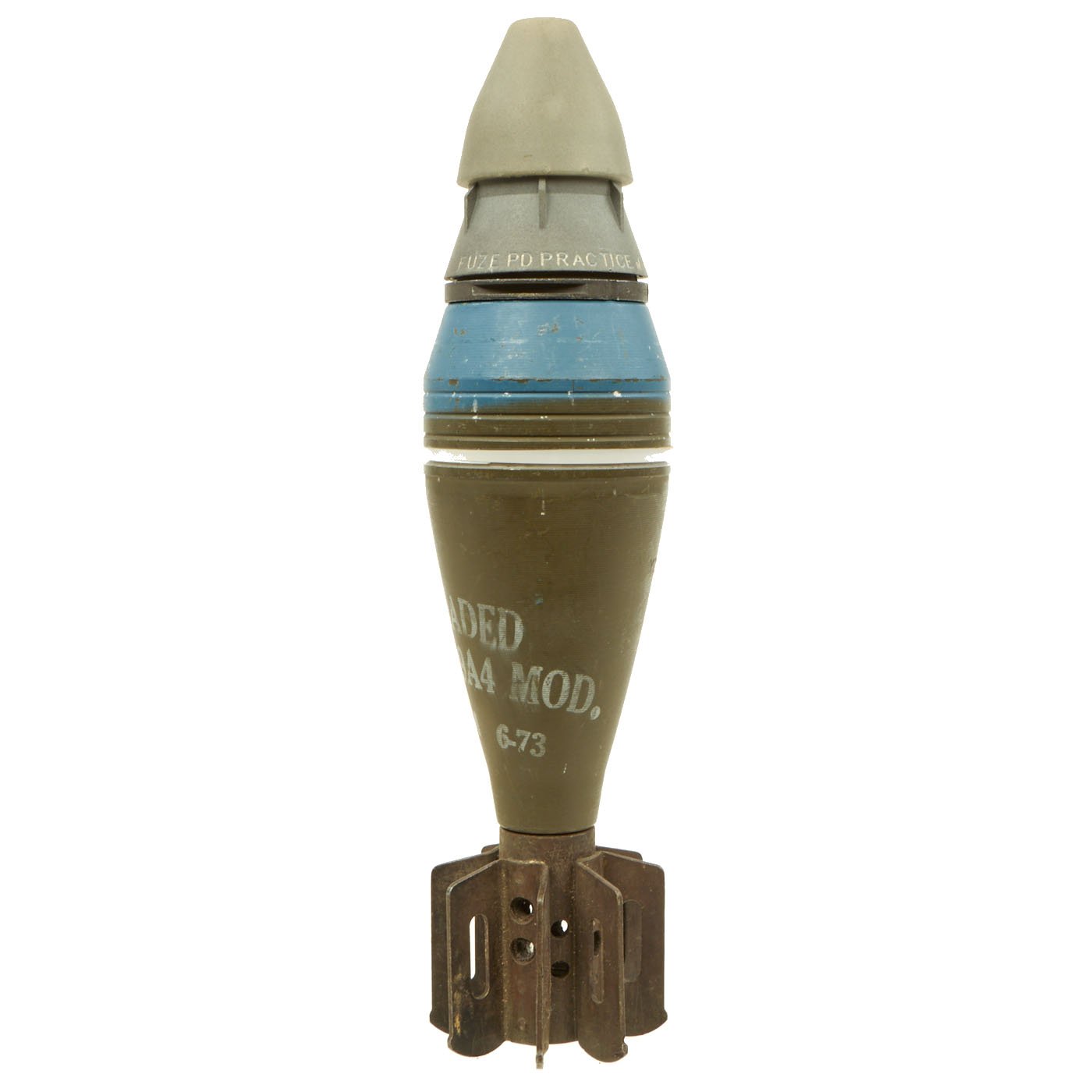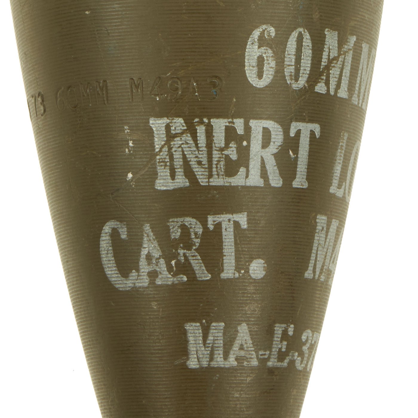 This is a hard to find WWII 1973-Dated M49A3 Deactivated Mortar Round, for the U.S. 60mm M2 Mortar. This cartridge is fired in 60mm mortars M2 or M19 for use against personnel and materiel, providing both fragmentation and blast effect.