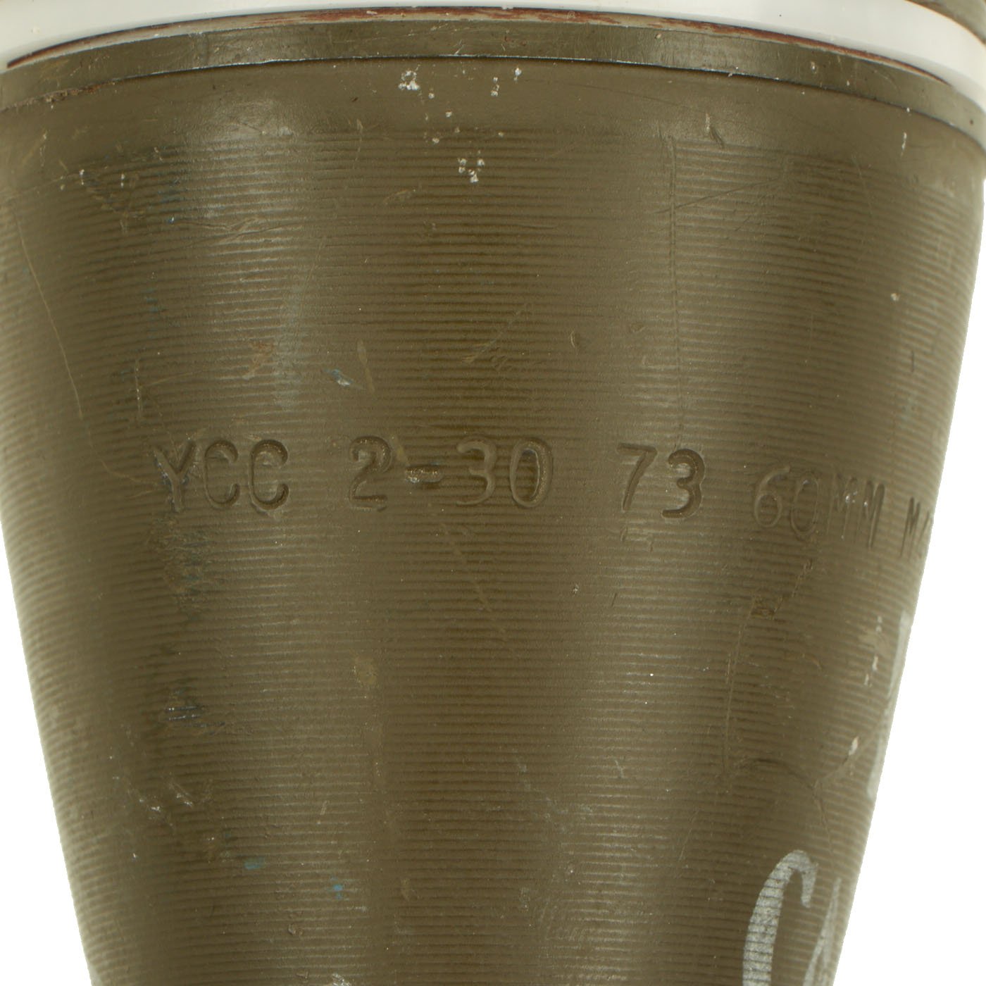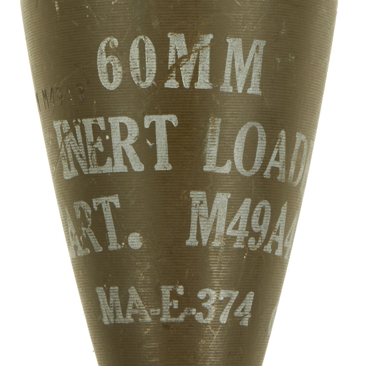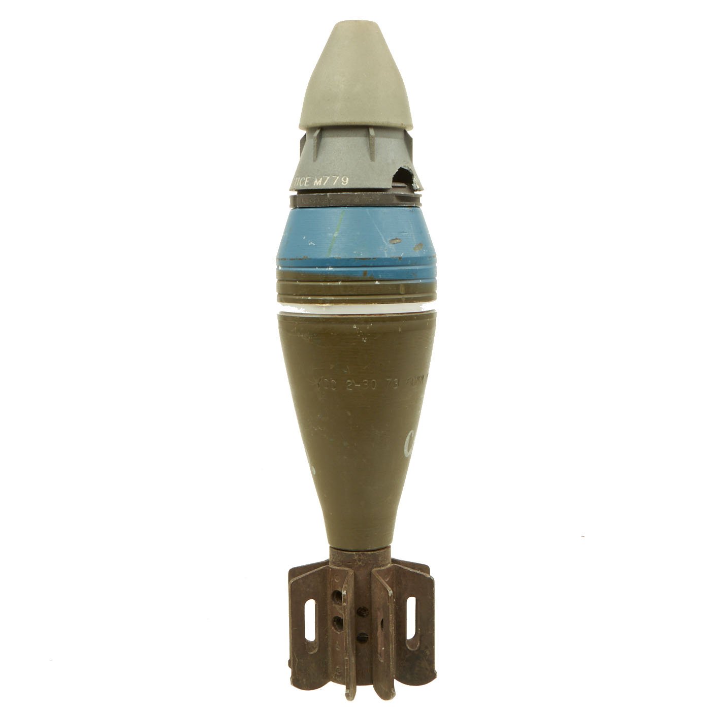 This is a hard to find WWII 1973-Dated M49A3 Deactivated Mortar Round, for the U.S. 60mm M2 Mortar. This cartridge is fired in 60mm mortars M2 or M19 for use against personnel and materiel, providing both fragmentation and blast effect.