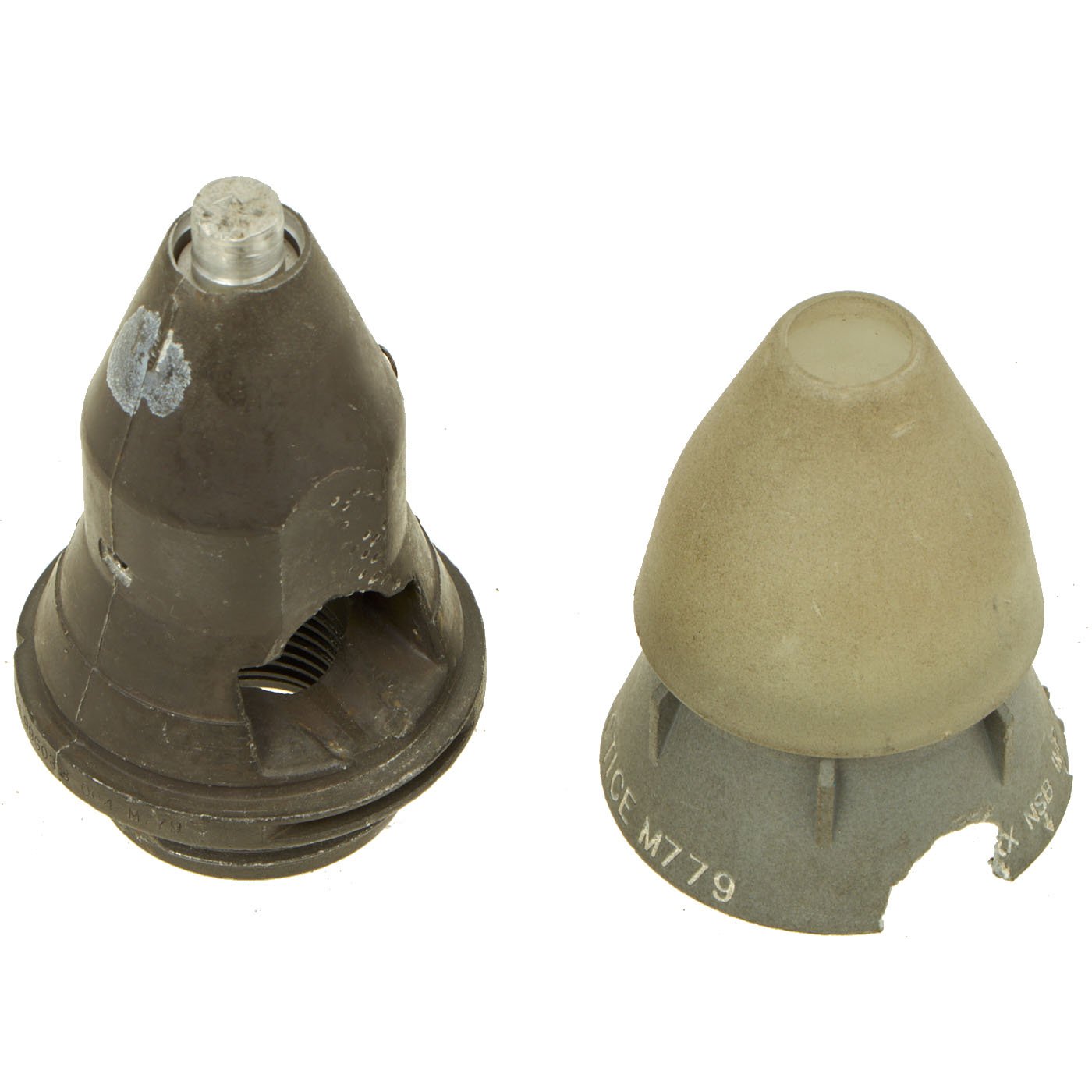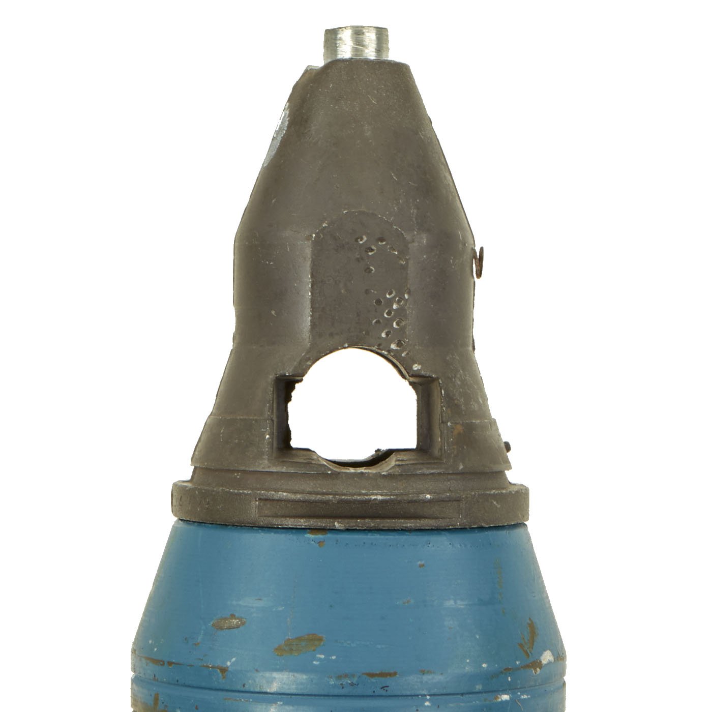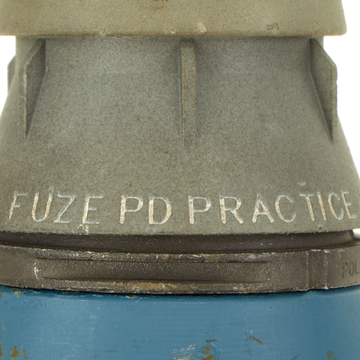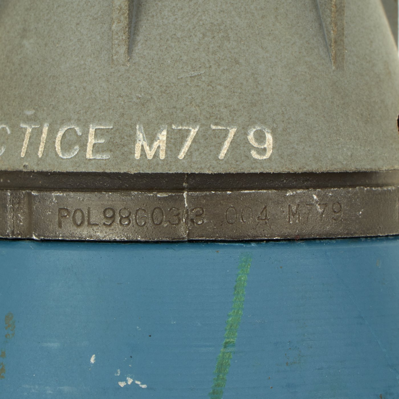 The OD Green paint is retained very well, and there is also a stenciled marking indicating that it is INERT LOADED dated 6-73. Most likely this example was made as an inert practice version, and was never filled with any type of explosive. The fuze also has the correct FUZE, PD, PRACTICE M779 marking on the side, sadly the practice fuze is broken, missing a section where the date would be. Measures approximately 10 inches in length.