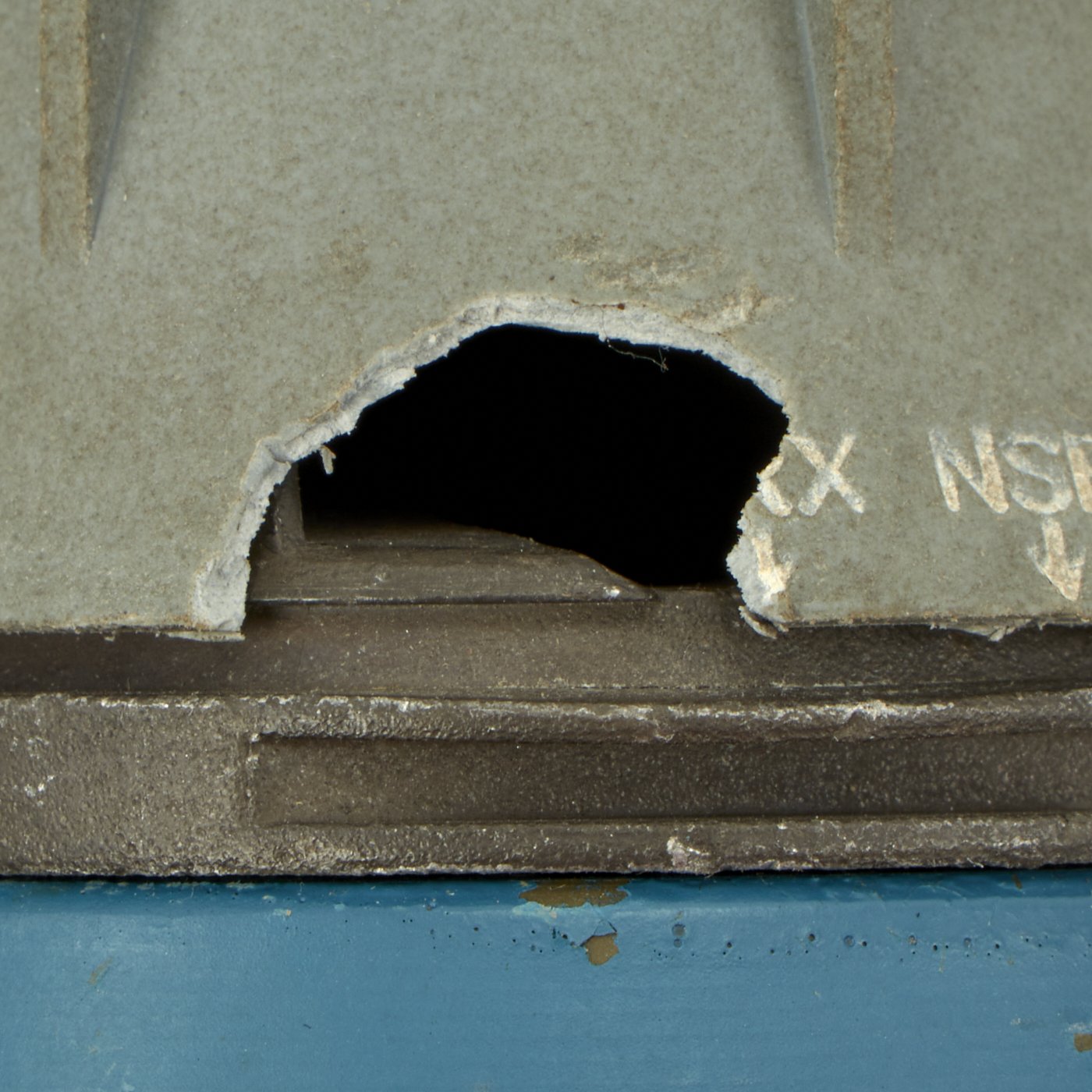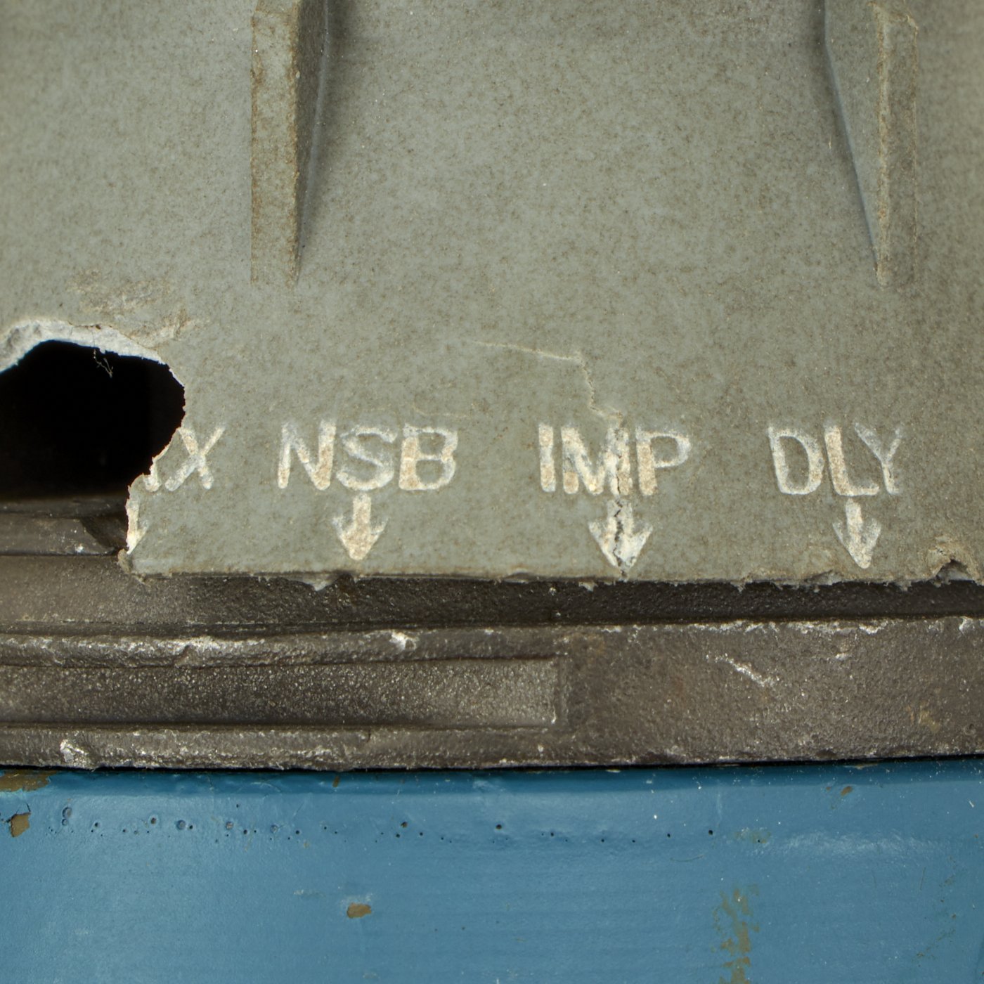 The projectile body of the M49A3 is of forged steel and is filled with flaked TNT. This example is in very good condition, with original arsenal markings stamped into the mortar round body: