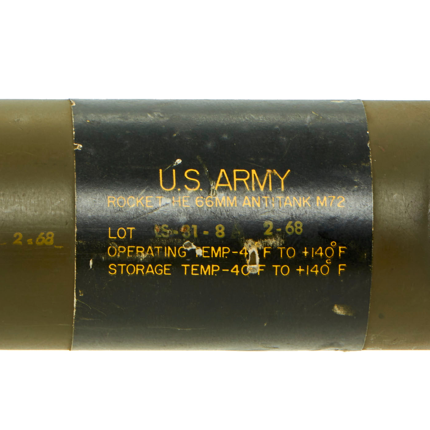 Original Item: Only one available. This is an inert non-firing BATF compliant M72 LAW Light Anti-Tank Weapon offered in excellent condition. Once fired, these tubes are unable to be reloaded.