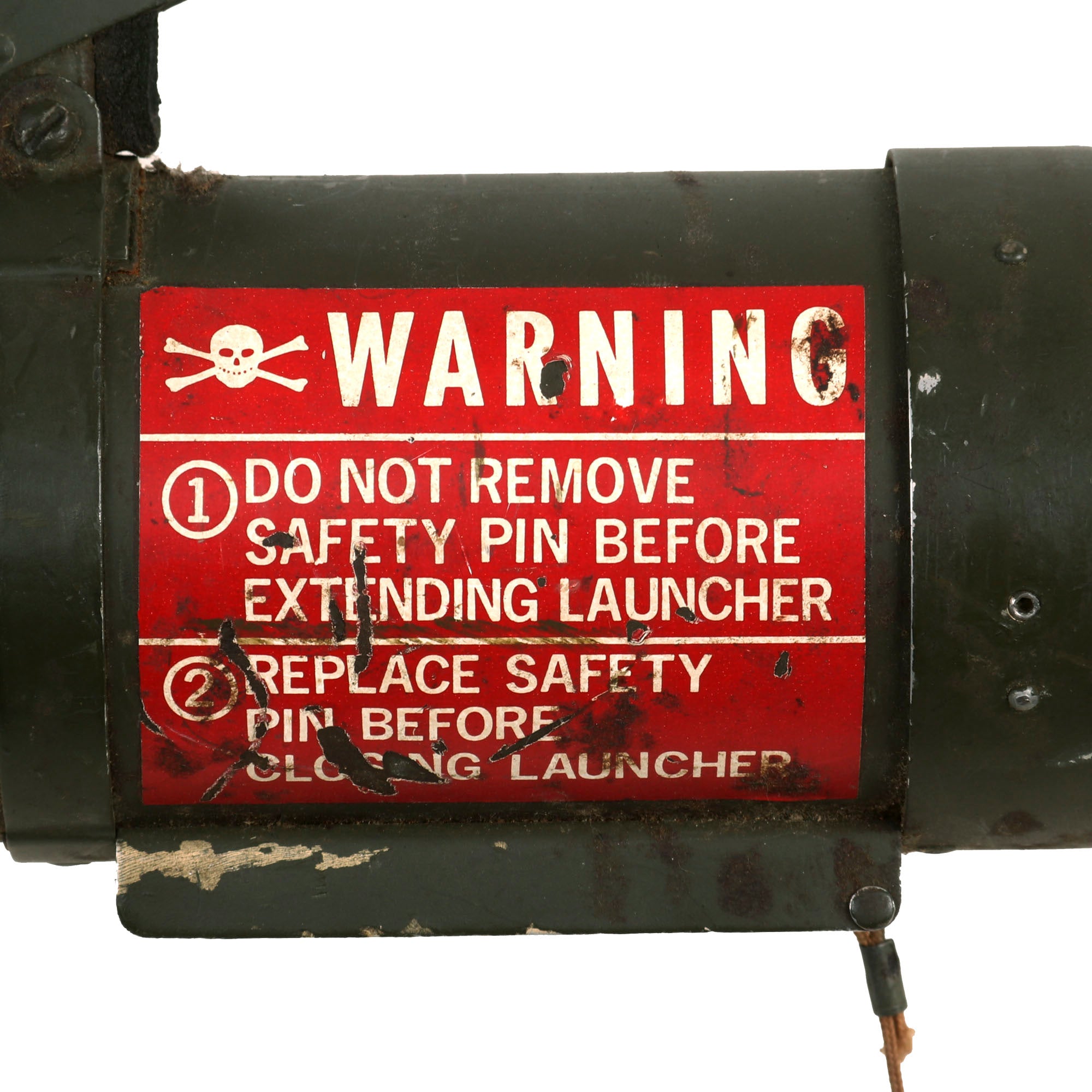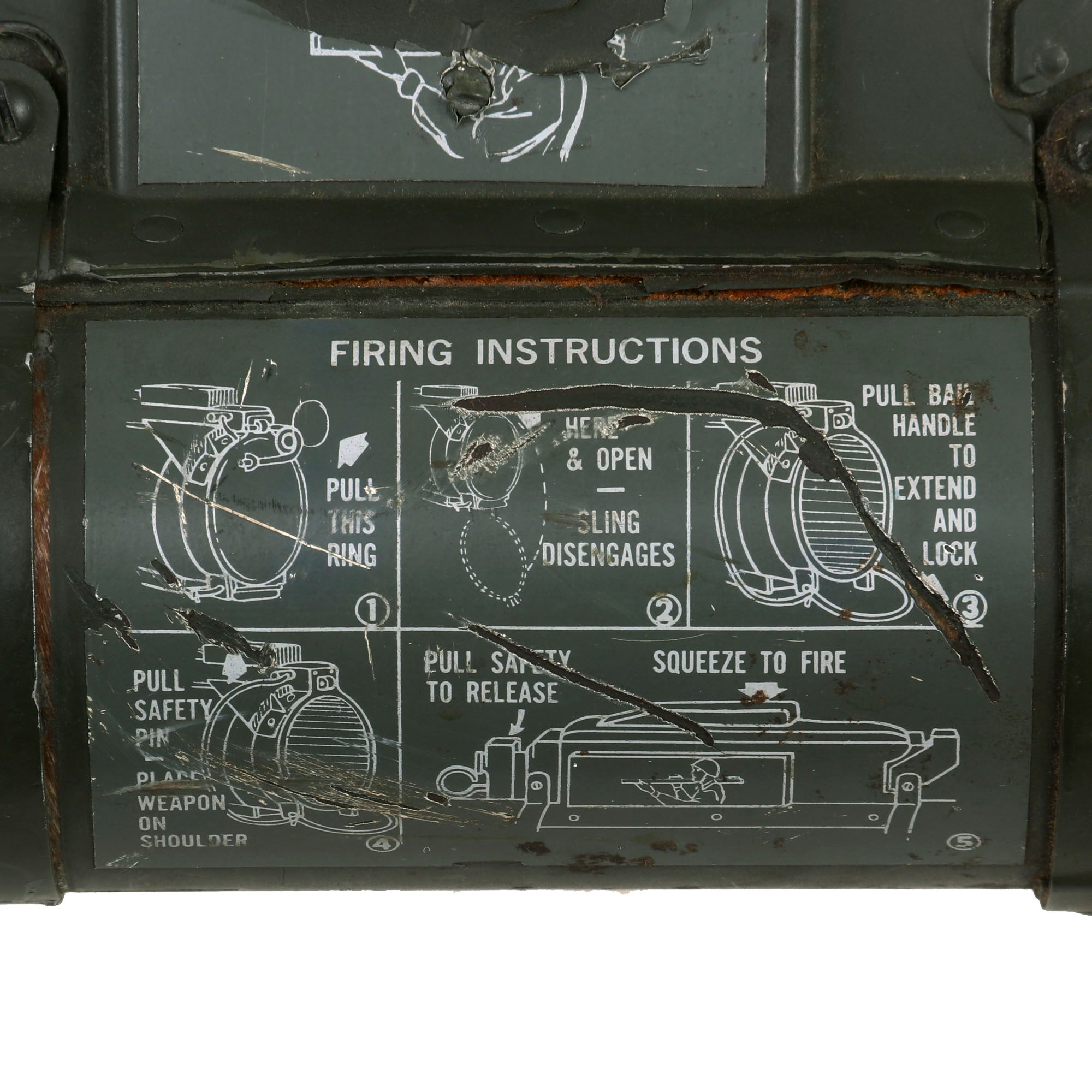 Original Item: Only one available. This is an inert non-firing BATF compliant M72 LAW Light Anti-Tank Weapon offered in excellent condition. Once fired, these tubes are unable to be reloaded. This example has had a large hole cut out of the bottom of the barrel, rendering it completely inert. Like all deactivated ordnance, this launcher is Not Available for Export.