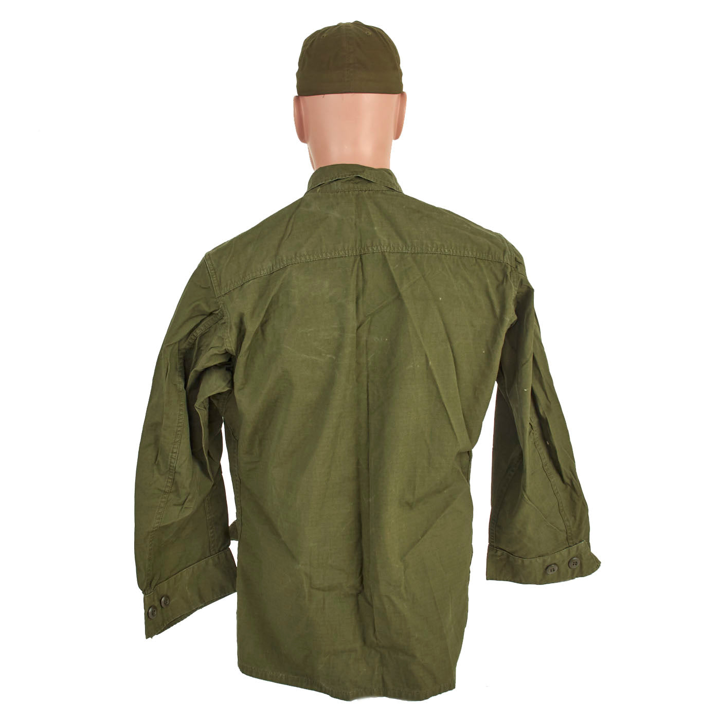 Original Items: Only Ones Available. An original set of Vietnam War U.S. Military issue fatigues, “baseball” style fatigue cap, and 1967 Dated Jungle Boots. All piece are in excellent, almost mint condition, showing only very light wear from honest use and storage.