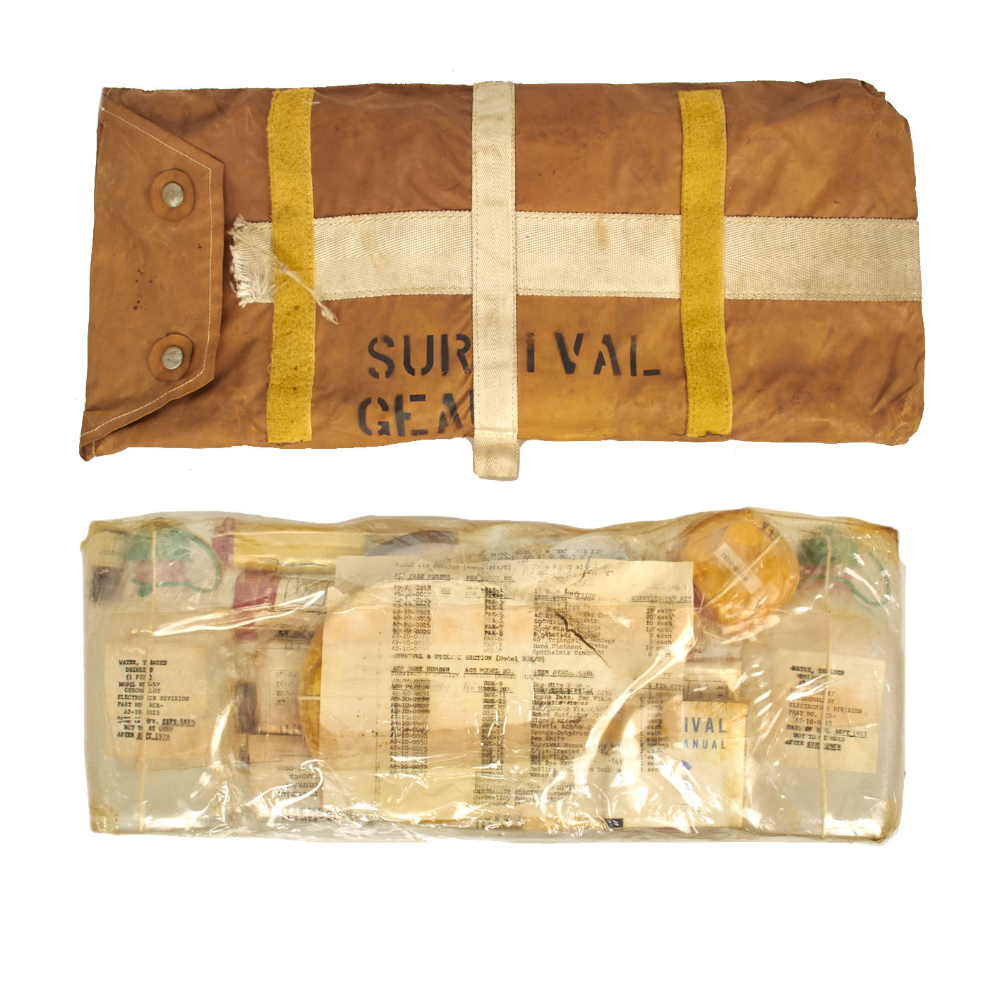 Original Item: Only One Available. A survival kit is a package of basic tools and supplies prepared as an aid to survival in an emergency. Civil and military aircraft, lifeboats, and spacecraft are equipped with survival kits.
