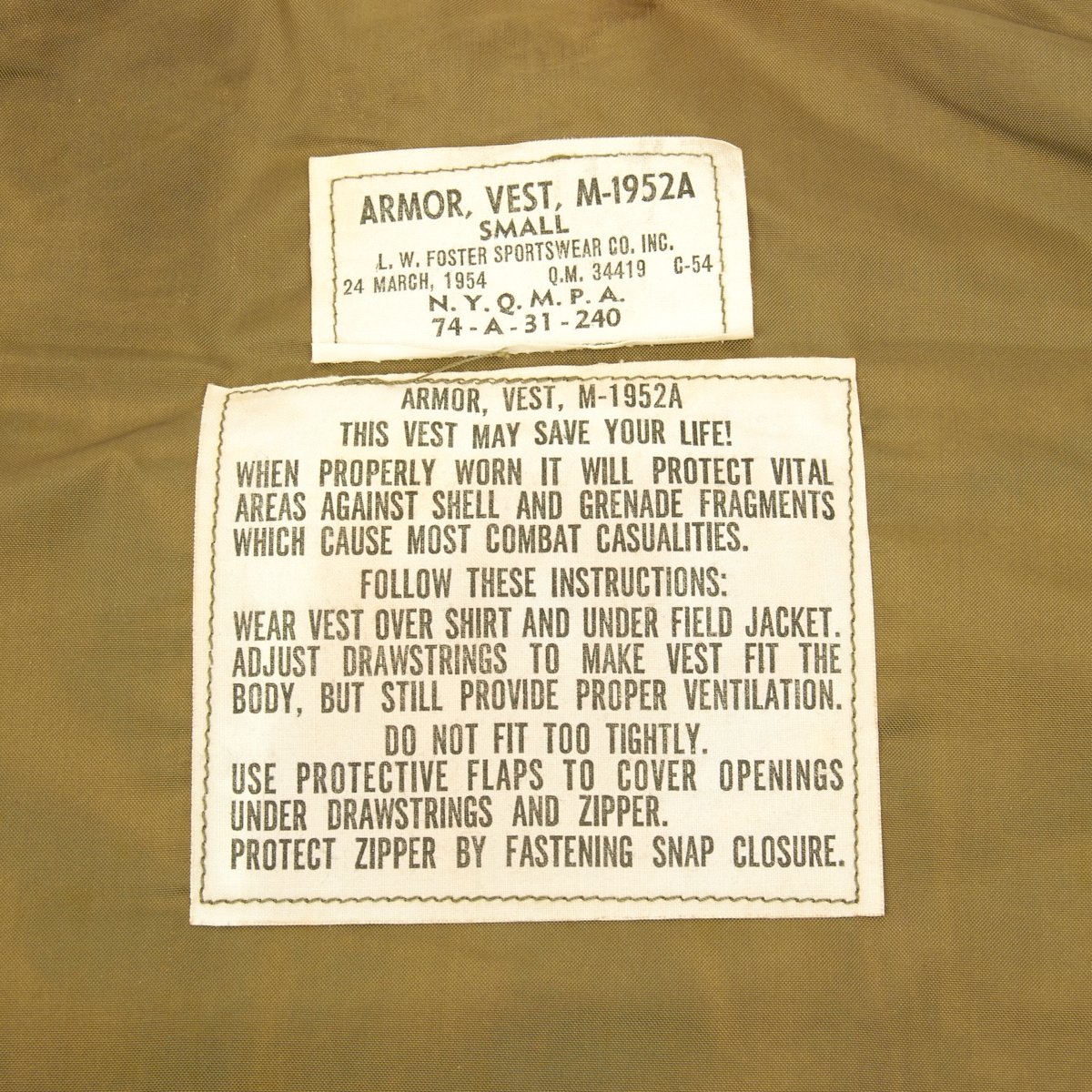 Original Item: Only One Available. This is a classic M1952A Body Armor vest offered in very good condition with data table that reads: