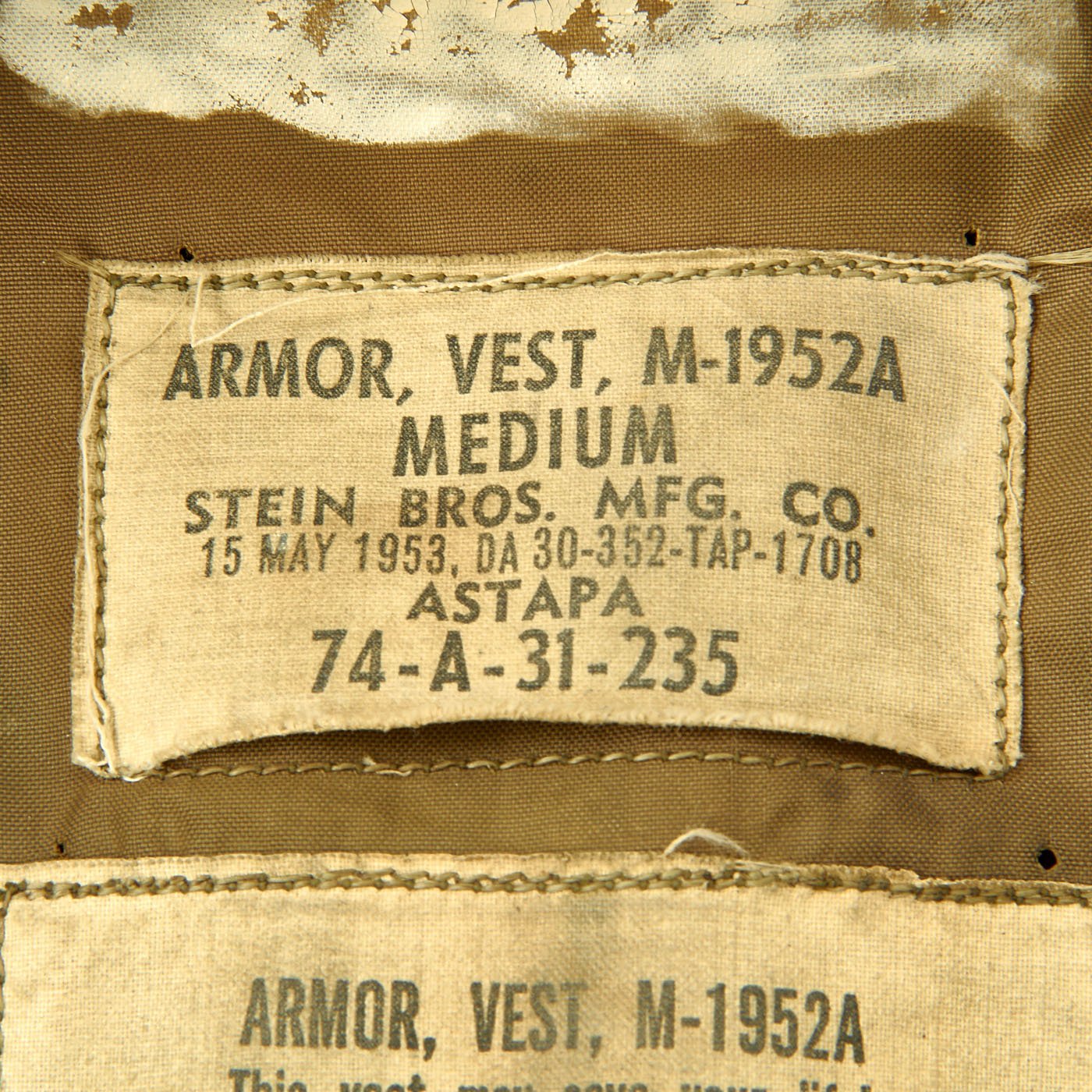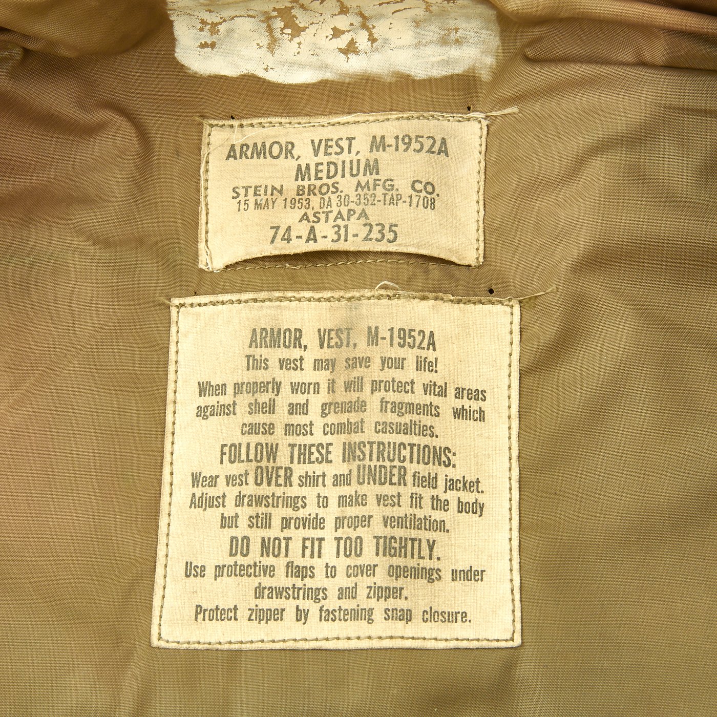 Original Item: Only One Available. This is a classic M1952A Body Armor vest offered in very good condition with data table that reads: