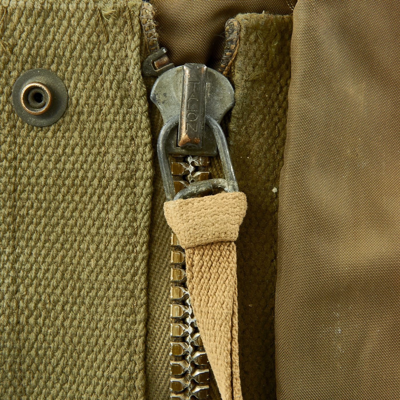 This armor shows some fading and staining from age and use, but is overall in good usable condition with a functional Talon zipper.