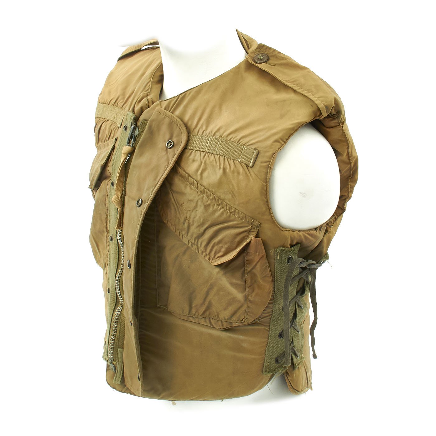 The first vests were based closely on the flak jacket, which used fiberglass and a resin laminate. From June to October 1951, a joint Army and Navy group in Korea tested some 40 armor jackets.