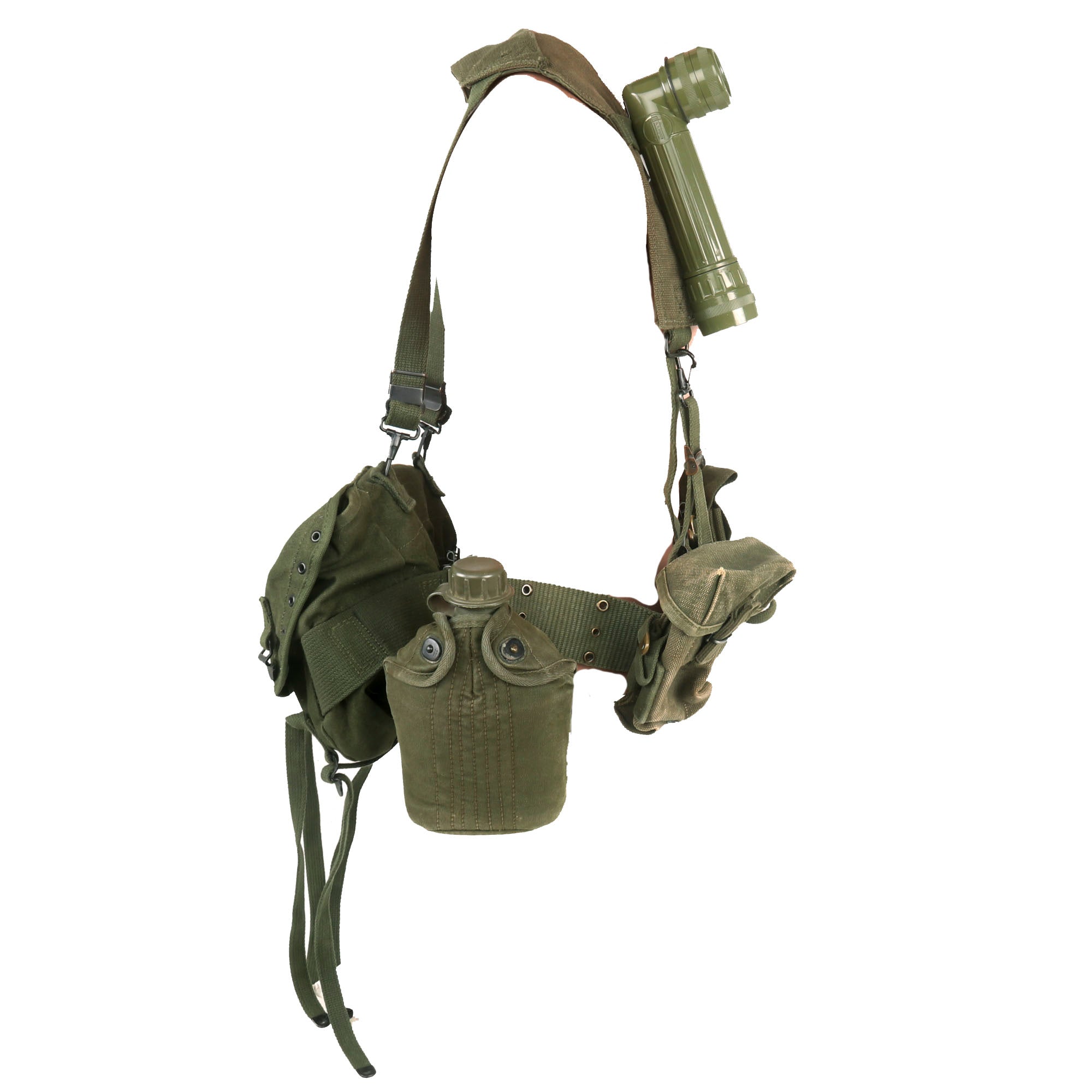 This is a great pistol belt rig set ready for further research and display on your Vietnam GI mannequin!