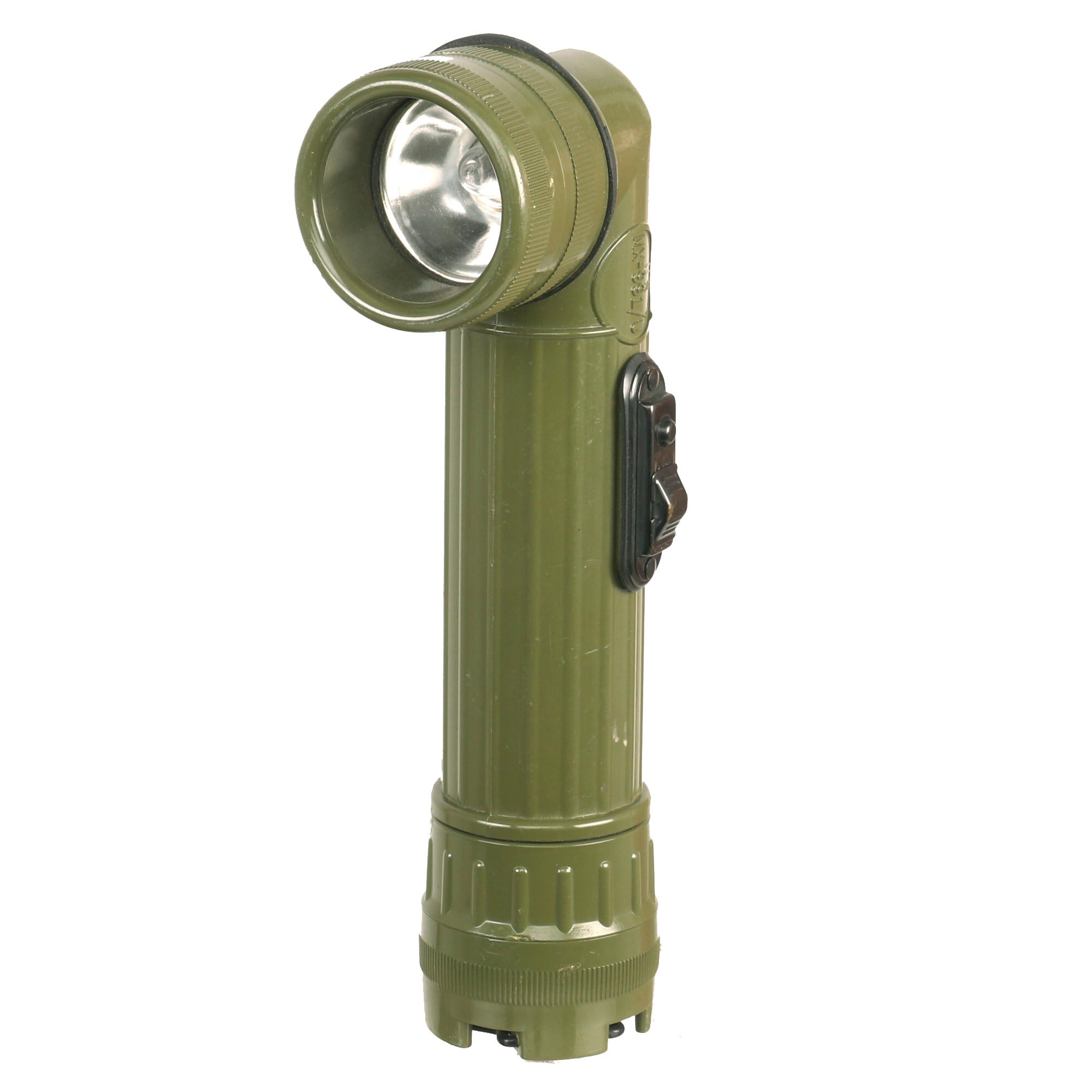 -Vietnam War Fulton MX991/U Flashlight (aka GI Flashlight, Army flashlight, or Moonbeam). This is a right-angle-head flashlight developed from the TL-122 military flashlight series of 1937-1944 and is a development of the MX-99/U flashlight issued in 1963. Produced since the Vietnam era, the MX-991/U has been made by various contractors over the years, including GT Price, Bright Star, and Fulton Industries. MX-991/U flashlights currently issued to the United States Army and United States Marines are produced by Fulton Industries.