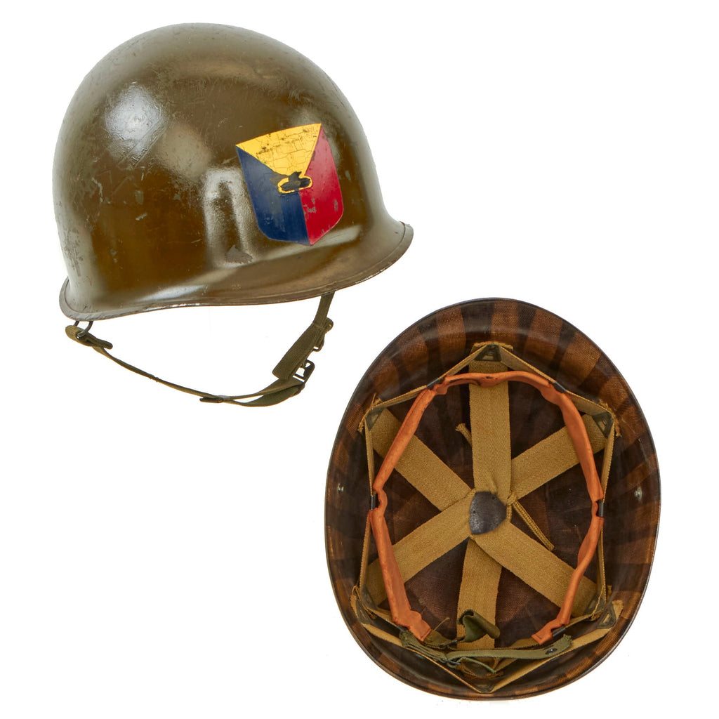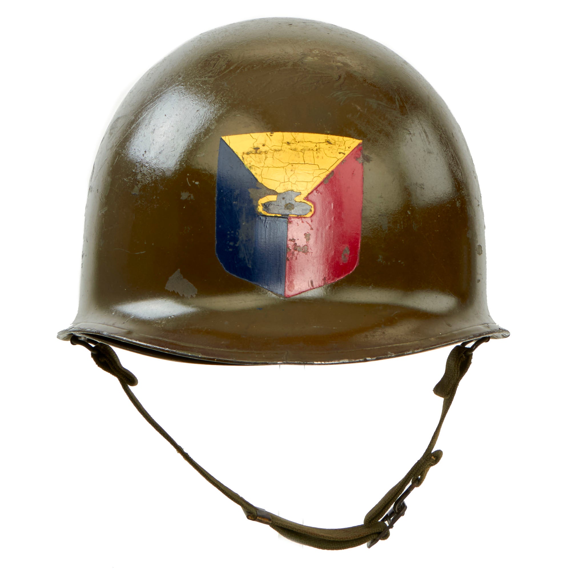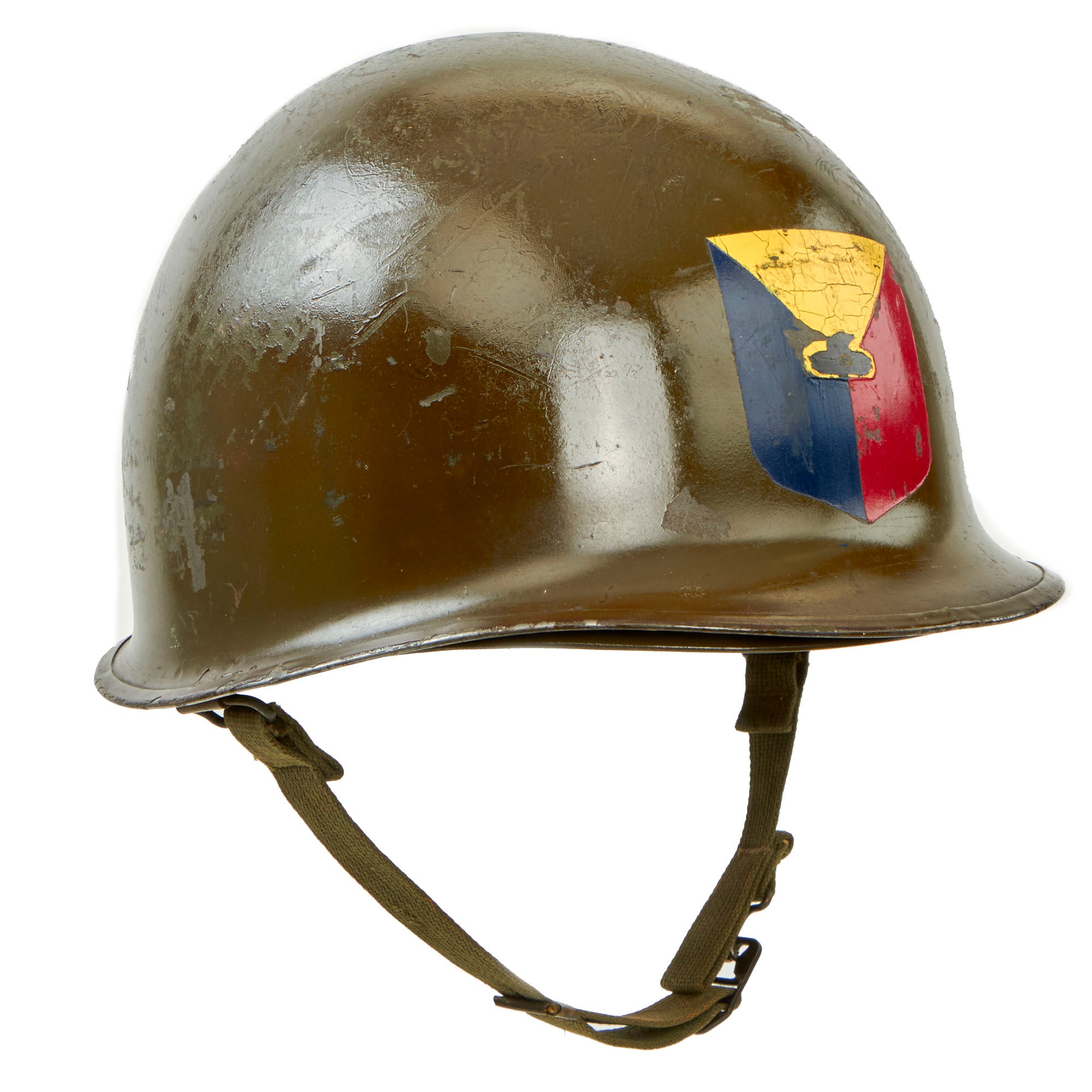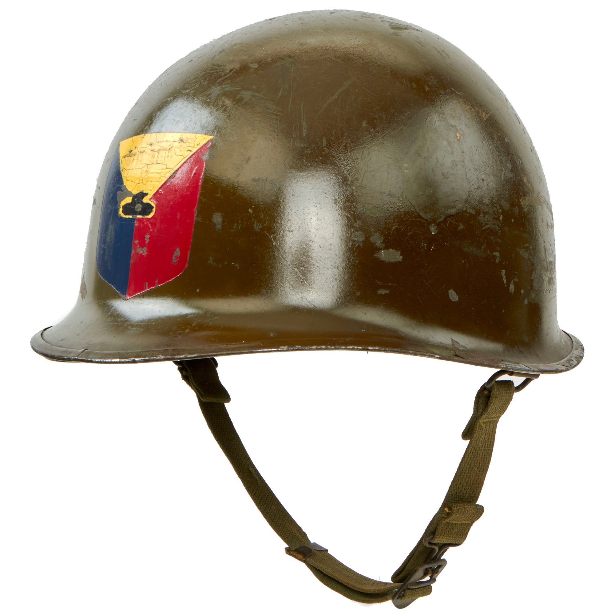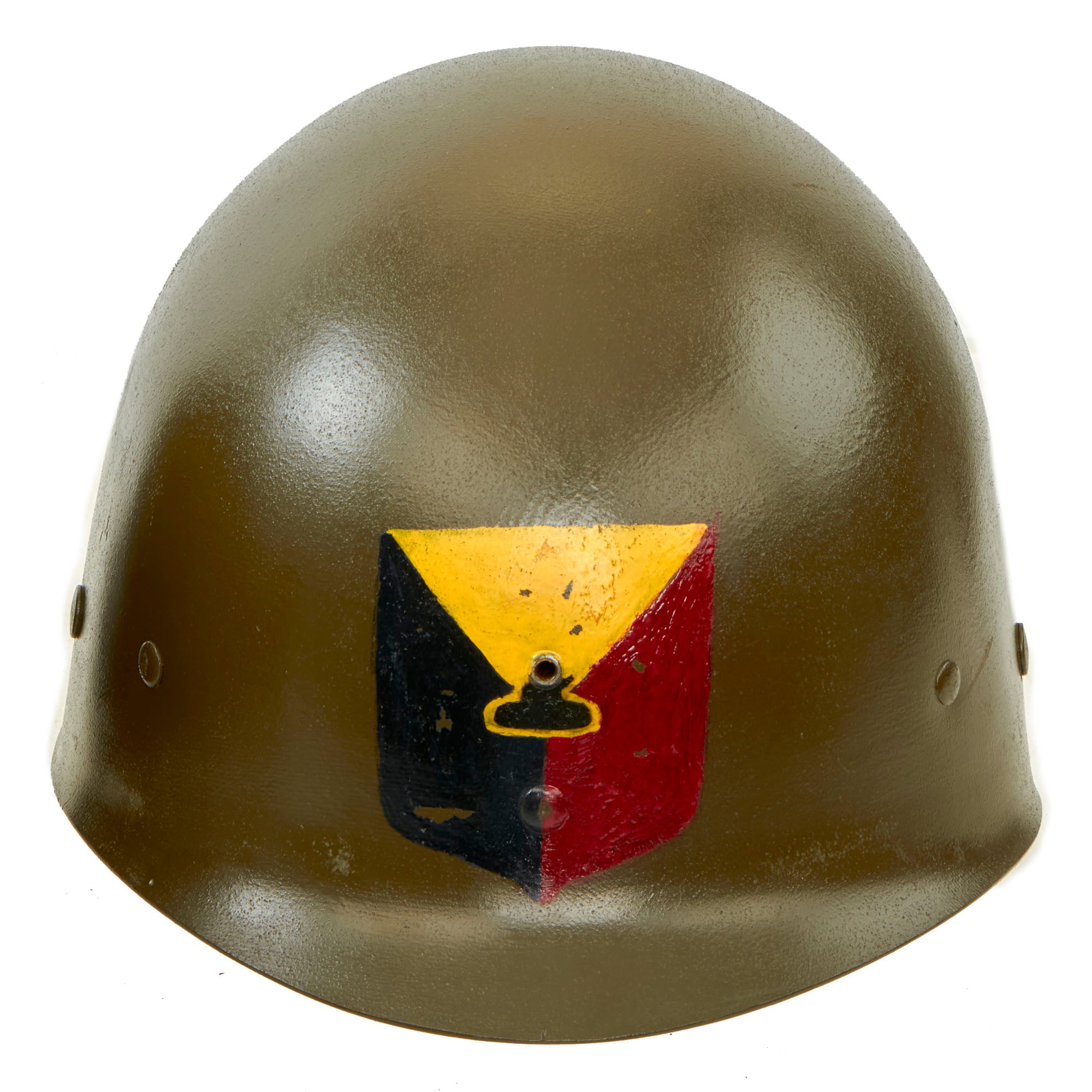 Original Item: Only One Available. This is an excellent condition, rather rare US produced M1 helmet as used by the South Vietnamese Armored School. THe helmet itself is in wonderful condition and bears the Armored corps insignia on both the front of the helmet and the liner itself. The helmet is complete aside from missing the leather liner chinstrap but those were commonly discarded or never installed on these helmets, especially Vietnamese issued examples.