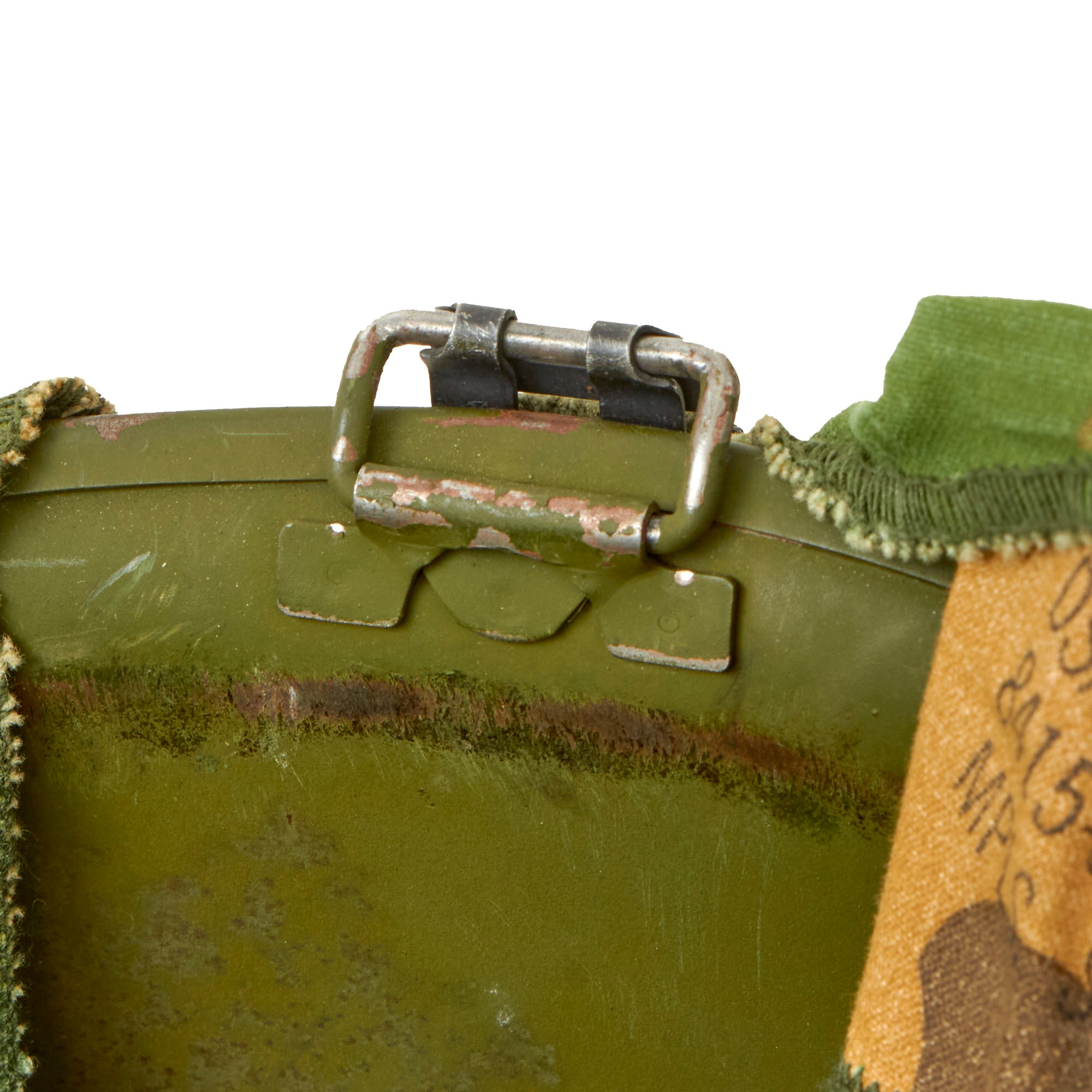 The included reversible camouflage cover is in very good service worn condition, complete with the elastic securing band. There is a bit of wear through around the edges, and overall fading, typical of a cover that saw actual service in the field.