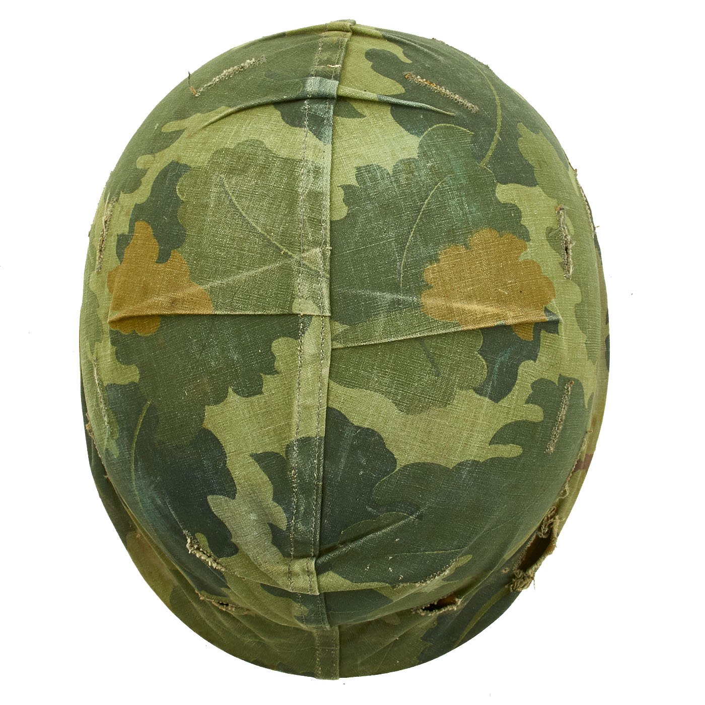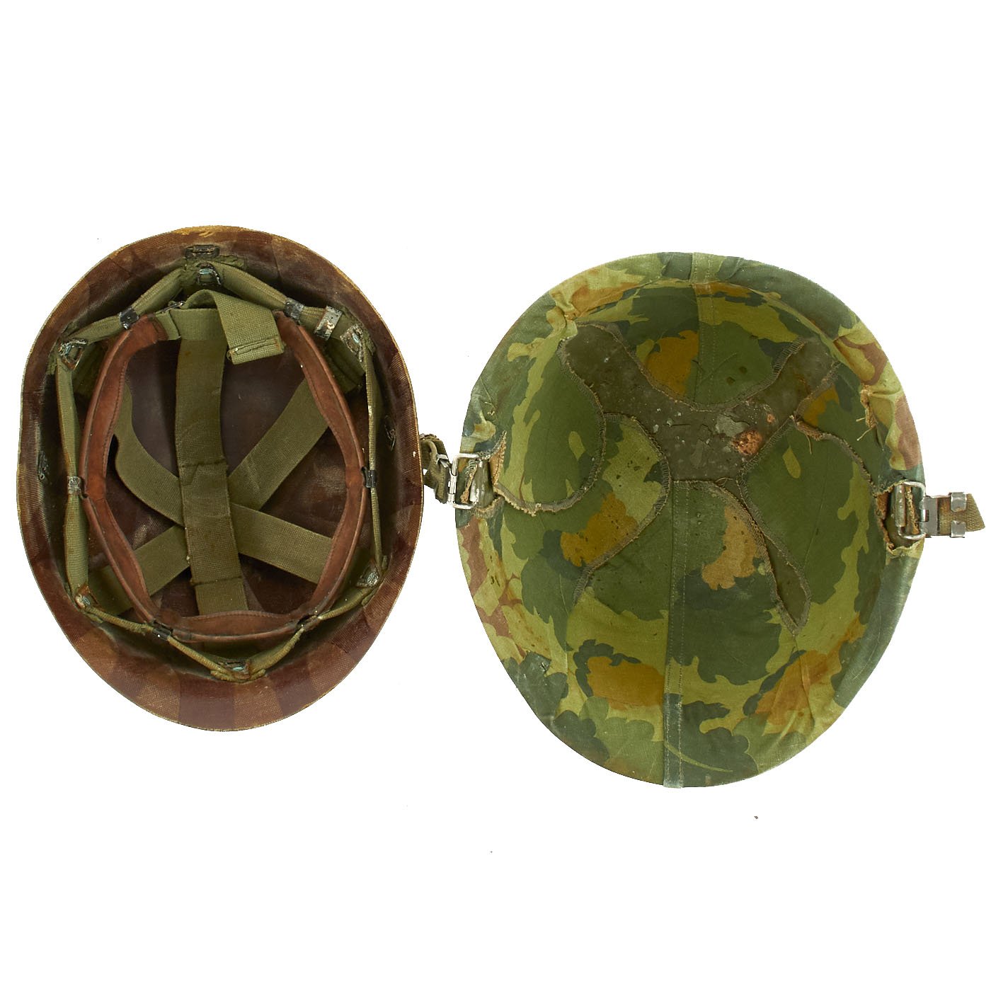 This helmet is a fine example and still retains all of its original Vietnam War parts and the shell has the original dark OD Green finish on the inside, with a dark blue or black finish on the outside under the cover. The helmet's heat lot code is visible, which appears to be 1 0251, definitely well past WWII and Korean war codes.