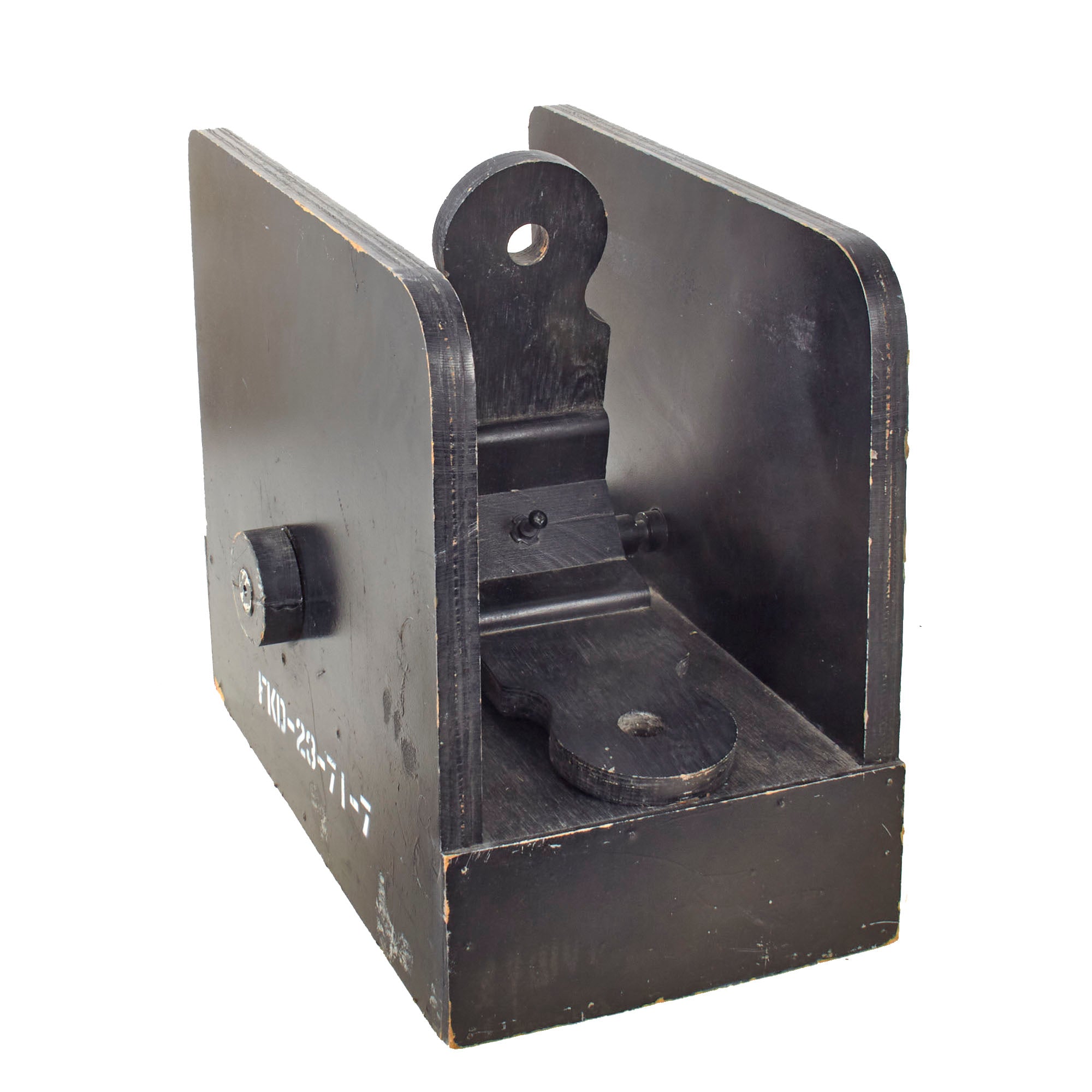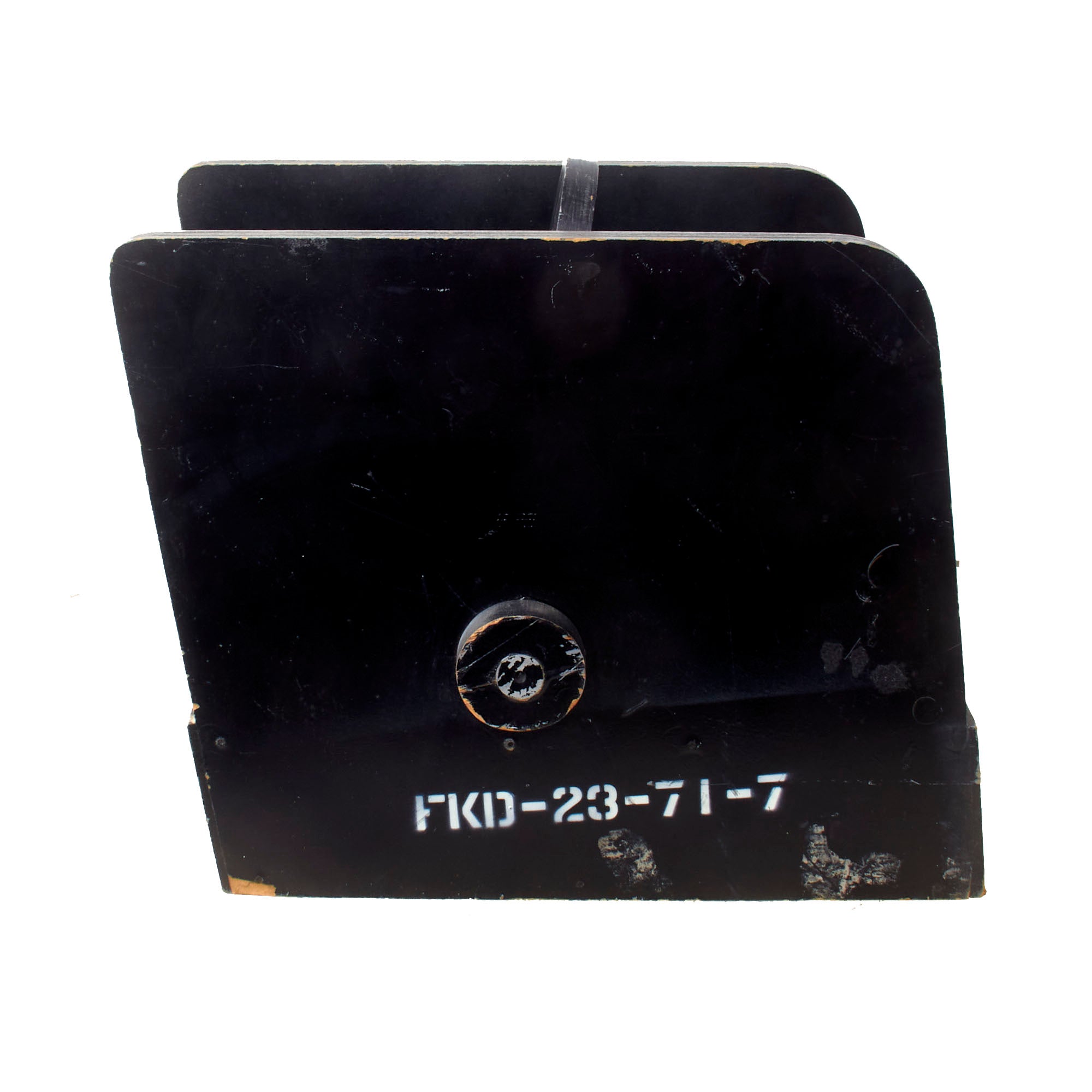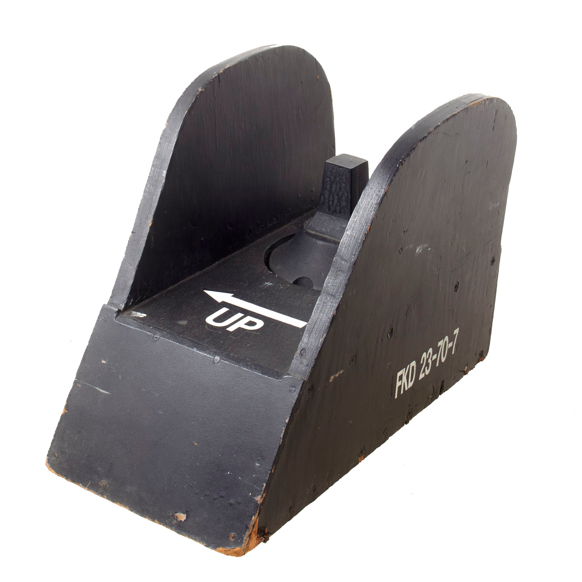 The front sight has a functional spring-loaded button to release the sight in order to adjust it to one of four positions. The front sight measures 16 ½ x 11 ½ x 8” and has decal marking FKD 23-70-7 on the side and UP under an arrow on the top.
