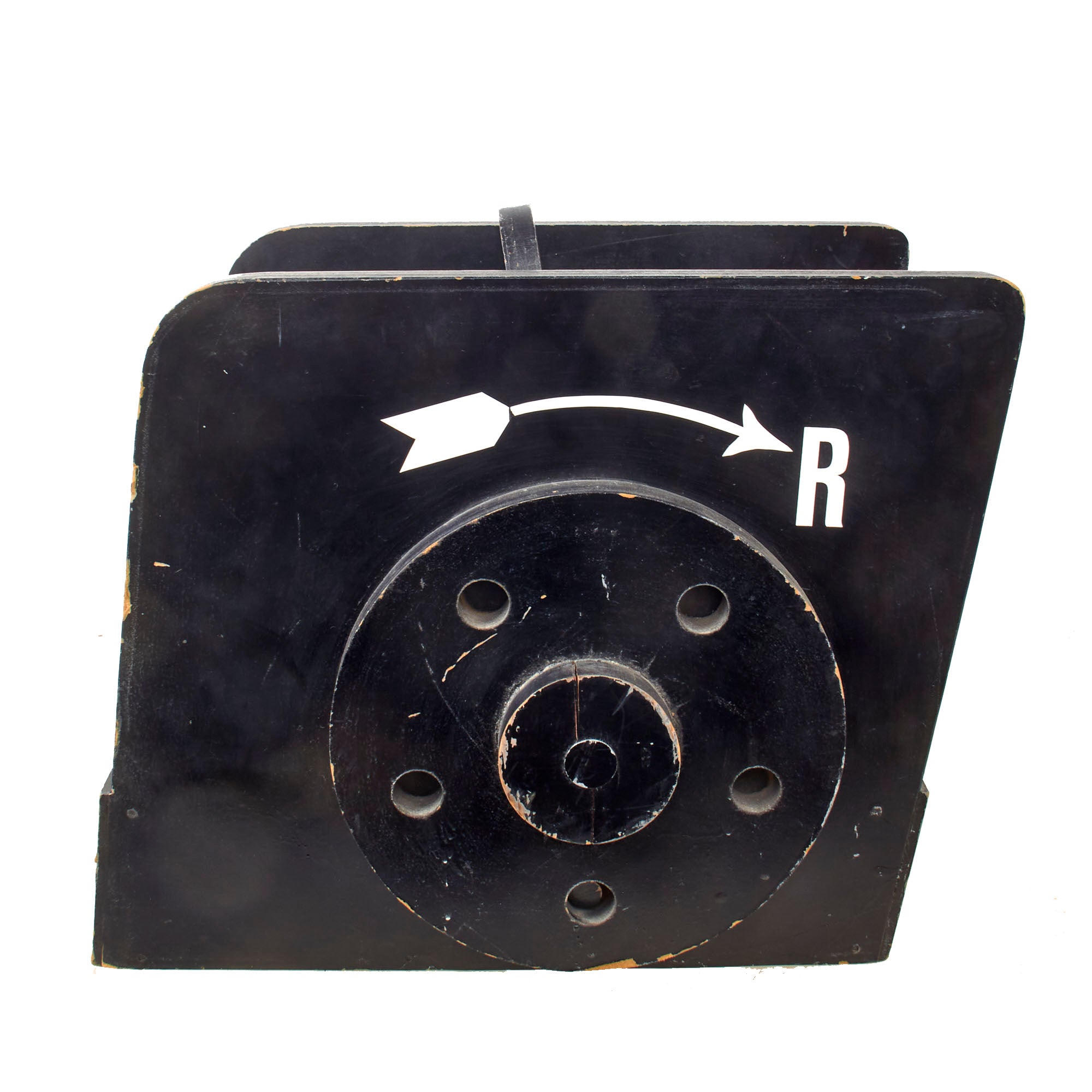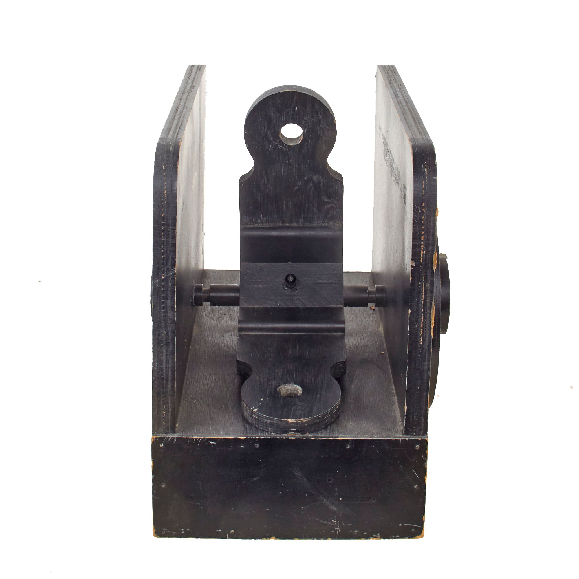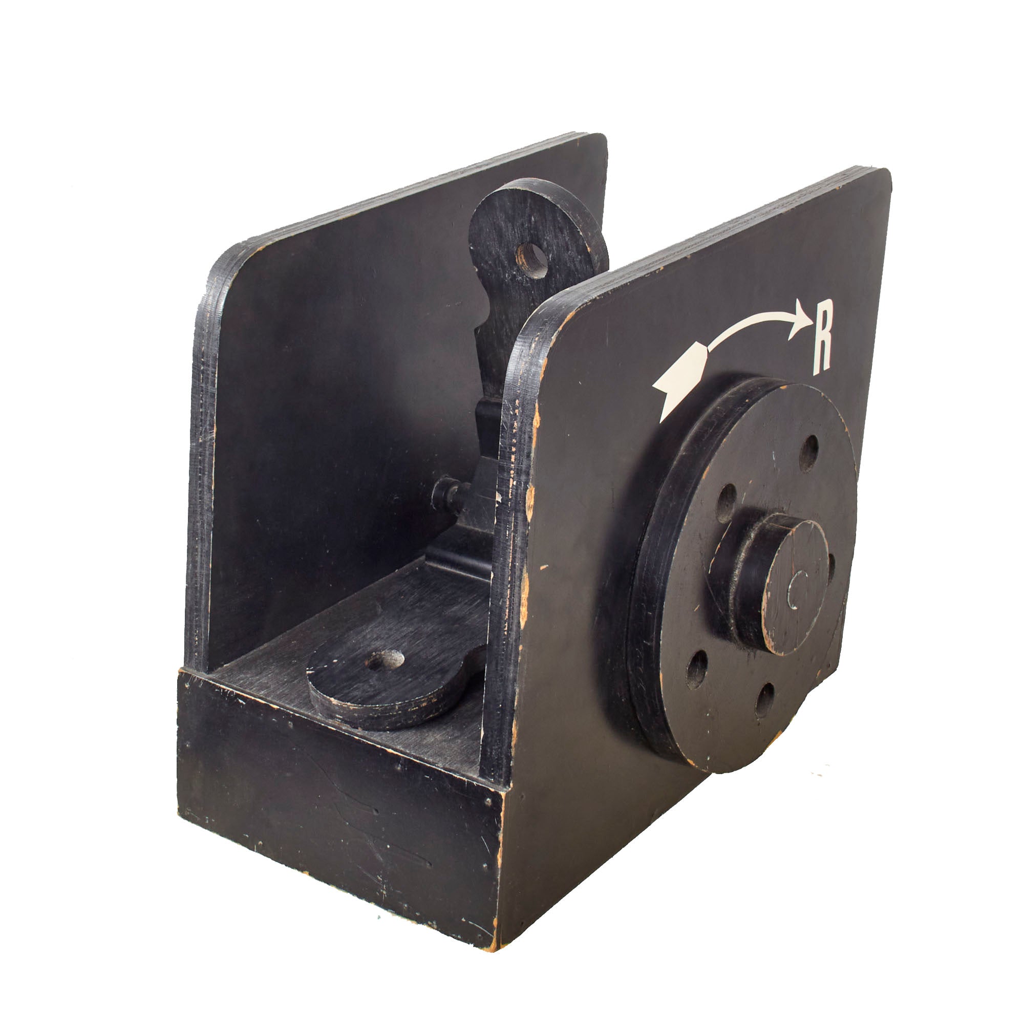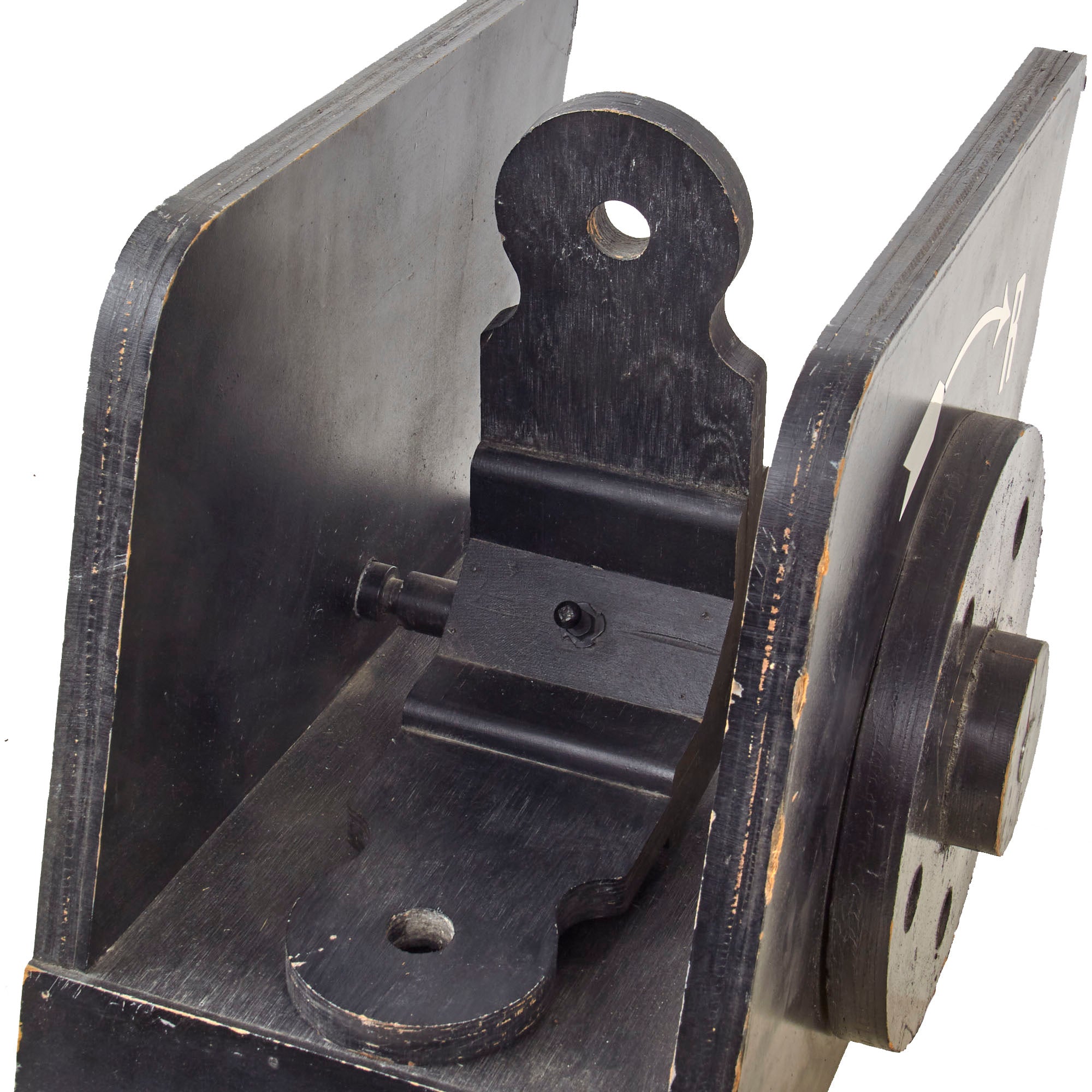 The rear sight is very heavy and has a functional flip-sight that has two positions mounted on a notched bar. The wheel is present but does not move in either direction more than a few cm. There is a decal marking FKD 23-71-7 on the side and R with and arrow over the wheel on the other side. The rear sight measures 19 x 15 x 13” including the pieces on the side. The rear sight is extremely heavy, weighing 21 pounds, and both pieces show heavy age and wear, so please use caution when handling them. They really weren’t meant to last more than a few years.