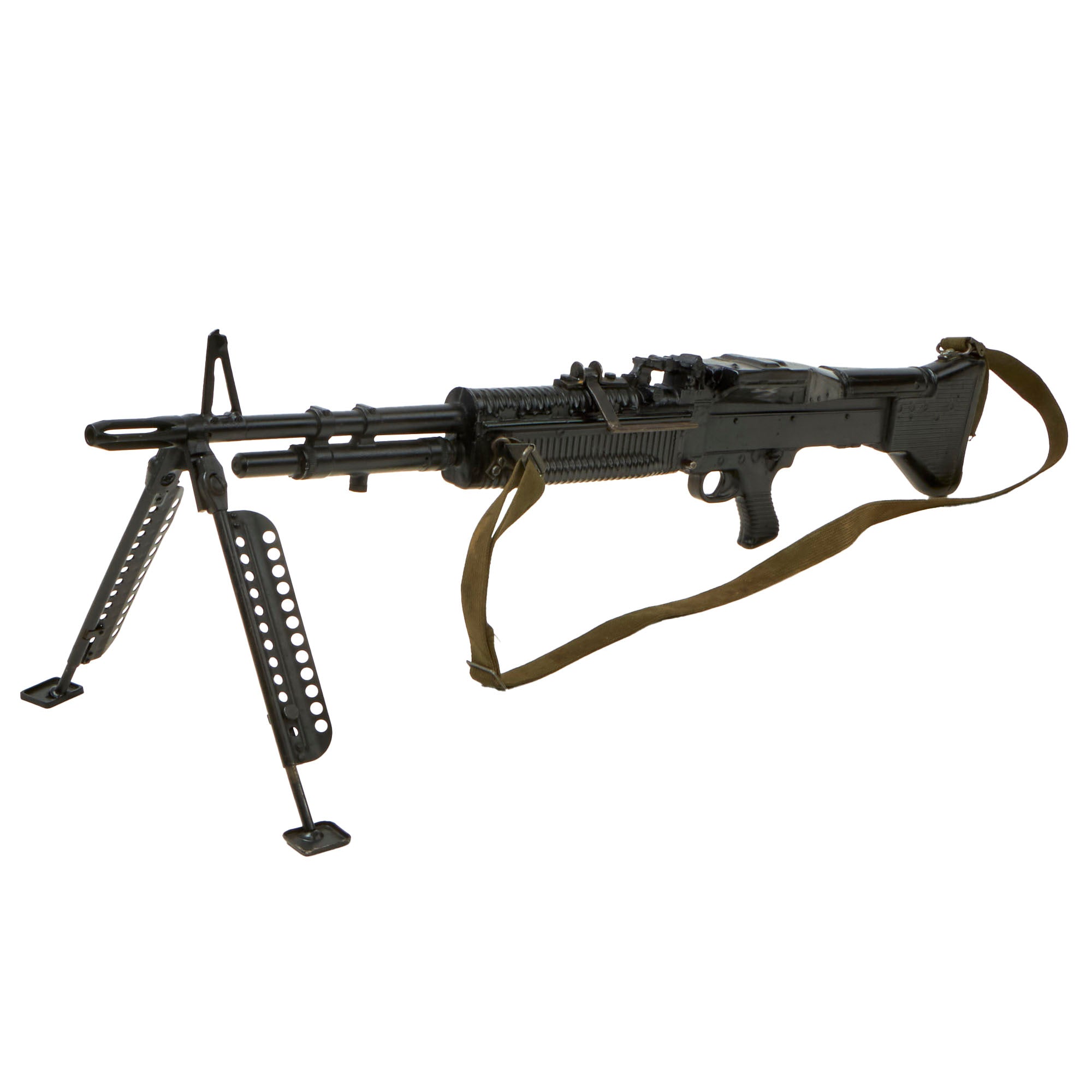 Original Item: Only One Available. The M60 machine gun began development in the late 1940s as a program for a new, lighter 7.62 mm machine gun. It was derived from German machine guns of World War II (most notably the FG 42 and to a lesser extent the MG 42), but it contained American innovations as well. Early prototypes, notably the T52 and T161 bore a close resemblance to both the M1941 Johnson machine gun and the FG-42. It was intended to replace the M1918 Browning Automatic Rifle and M1919A6 Browning machine gun in the squad automatic weapon role, and in the medium machine gun role.