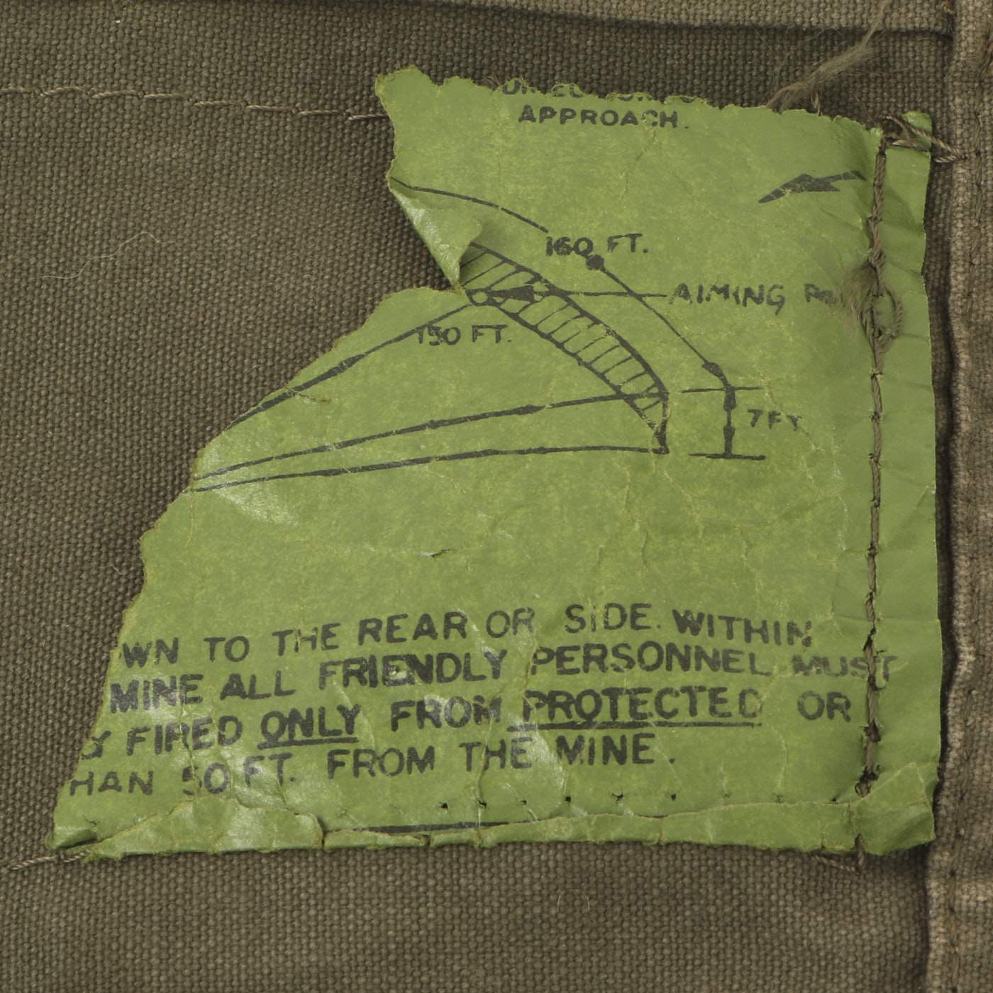 Original Items: One Set Only. The M68 kit was designed to familiarize personnel with the placement and arming of a real M18 Claymore directional mine. It comes with all the components of a real Claymore kit packed in an M7 bandoleer. The plastic M33 Inert AP Mine is the inert training and practice version of the M18 Claymore. Some inert mines were green with a light blue band, while others were completely blue, such as this example. It does not contain an explosive or pyrotechnic filler of any kind. It is packed in a Claymore bag with inert M10 simulated detonator cap wire, an M57 "clacker" firing control, and an M40 circuit test kit.