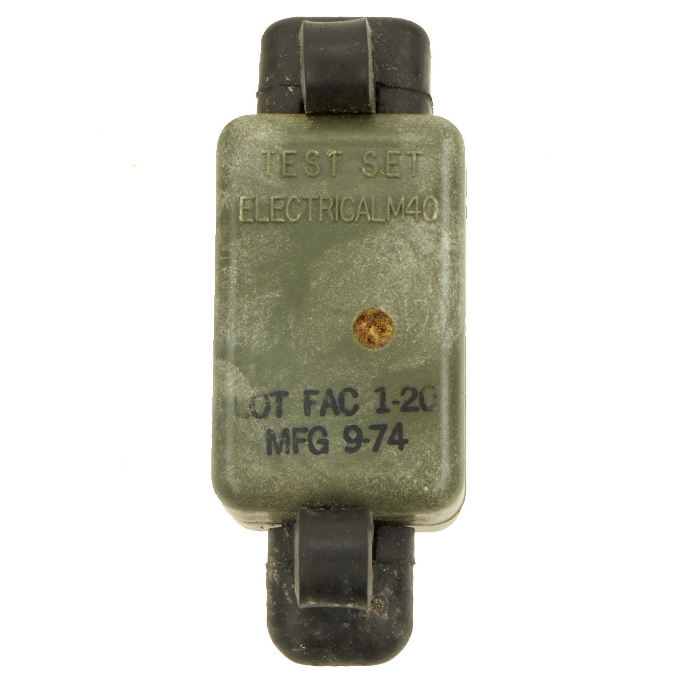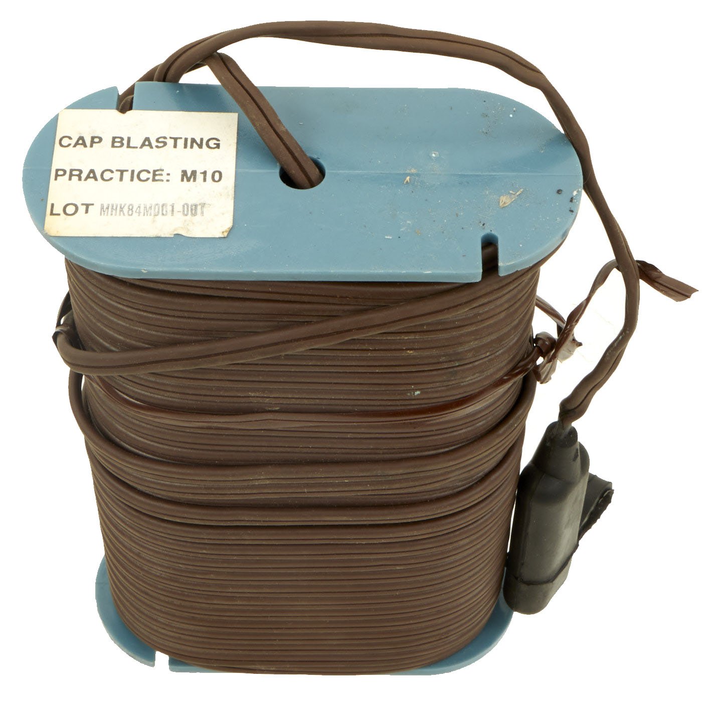 The M57 clacker appears to function as expected, and the blasting cap and wire are complete and actually functional! We connected them together, and were able to get the bulb on the M40 circuit tester to light up, indicating a complete circuit connection. This is the first time we have had a set this complete and functional.