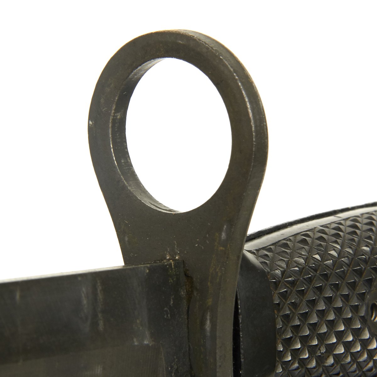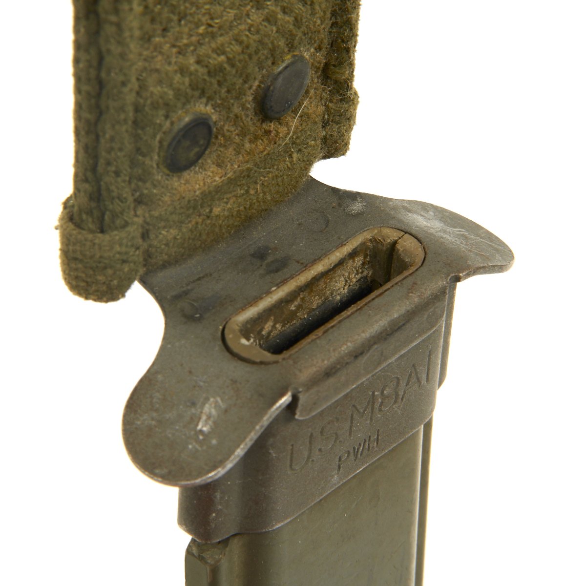 This example is offered in excellent condition the M7 bayonet is marked CONETTA by Conetta Manufacturing Company of Stamford, Conn., who produced bayonets for the M14 and M16 rifles. The M8A1 scabbard is marked PWH for the Philadelphia Home for Working Blind.