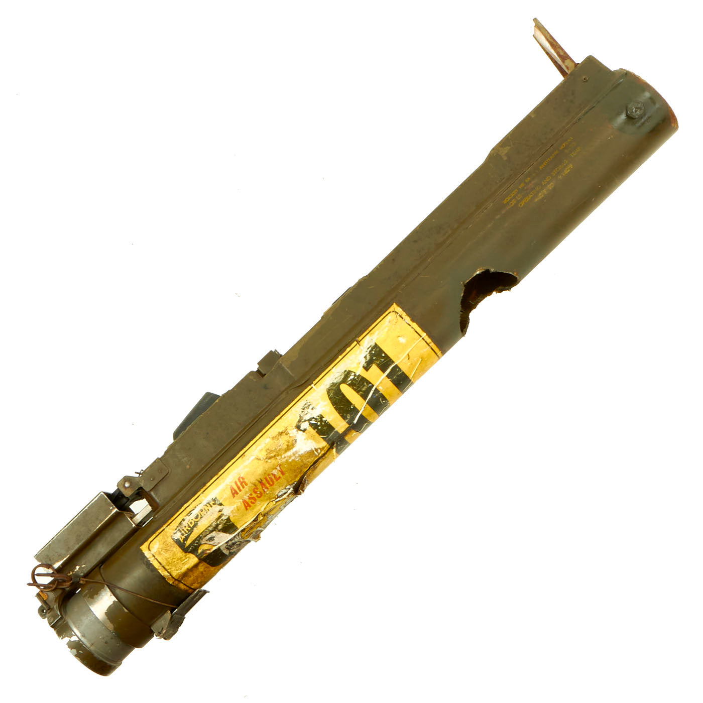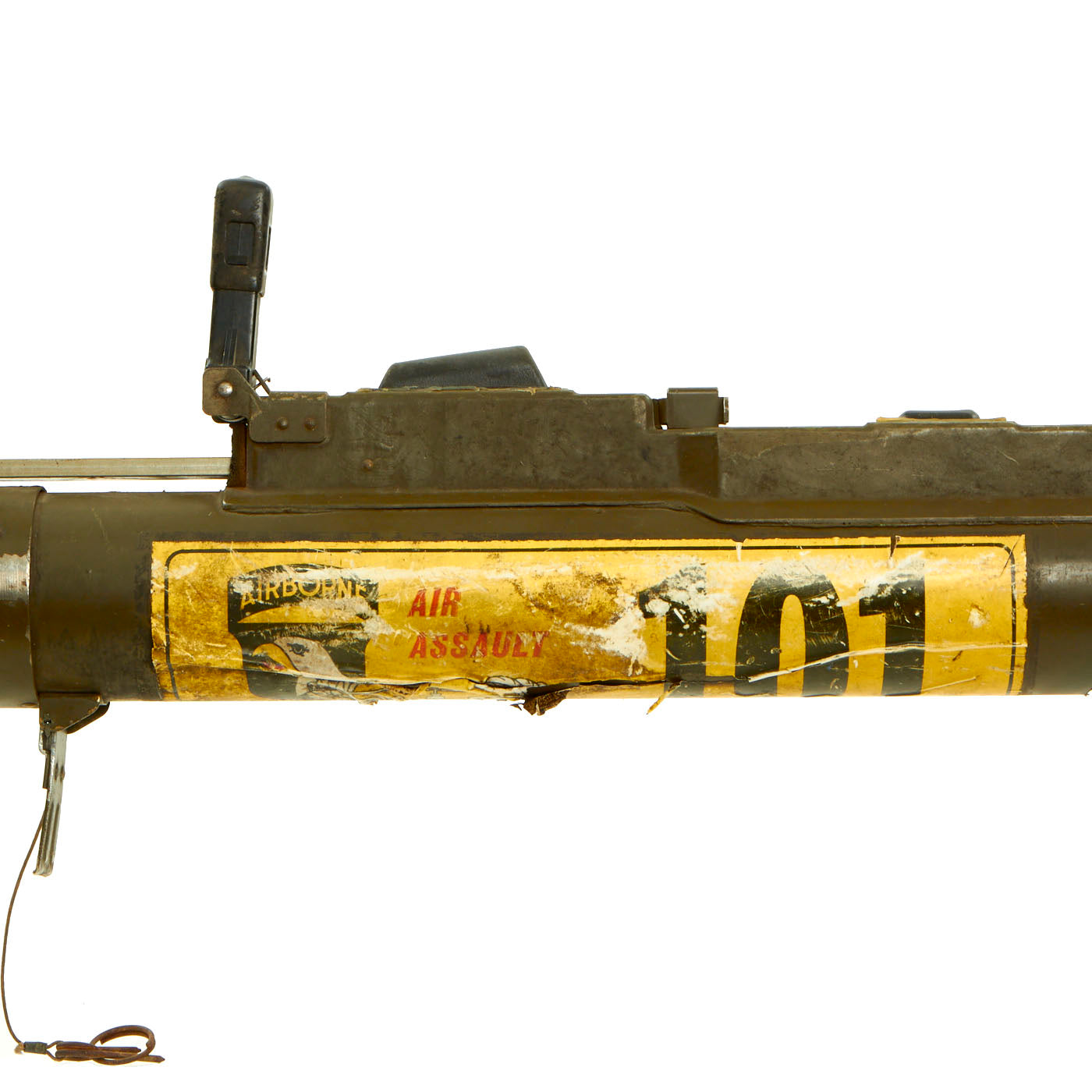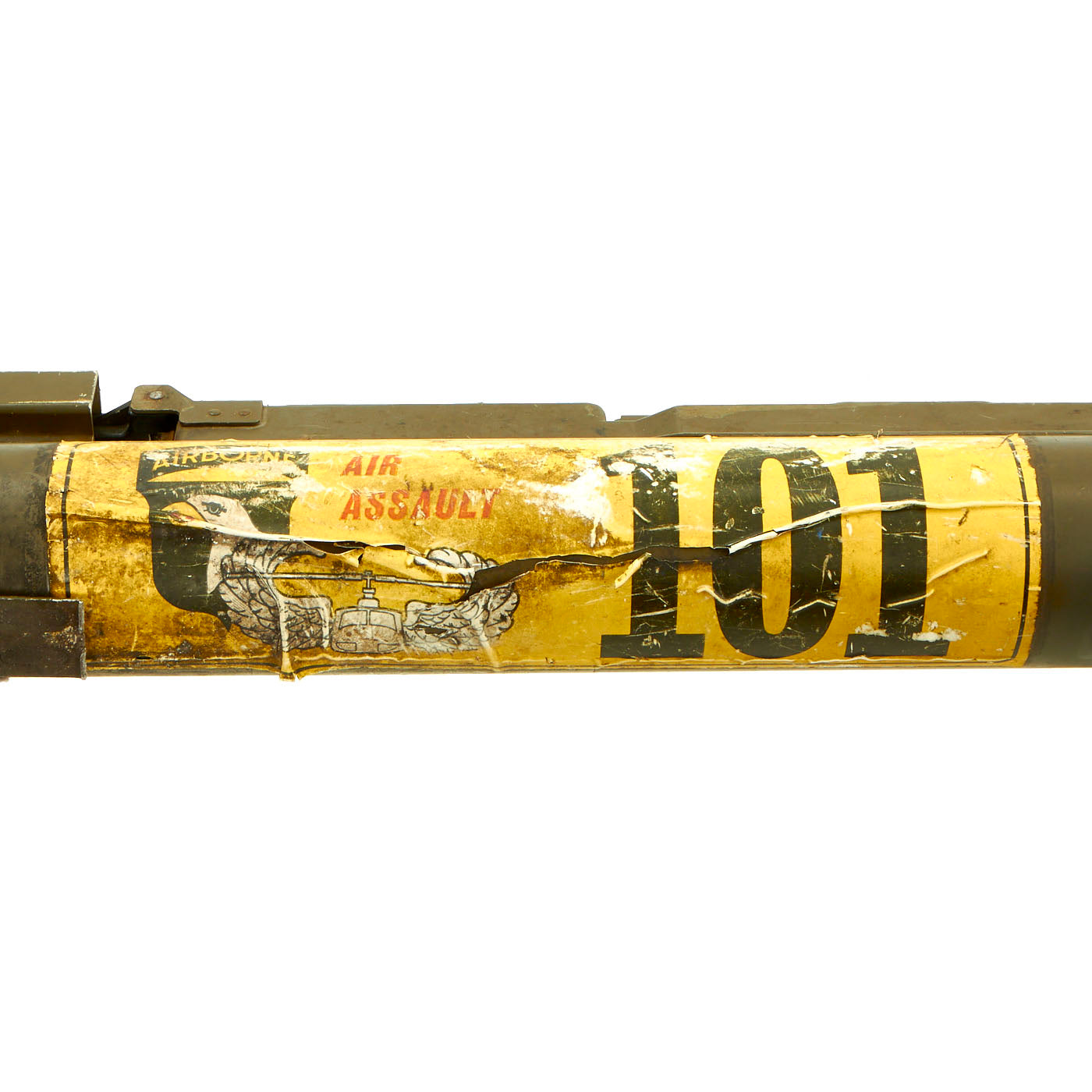 Interestingly, this launcher has a 1970s vintage 101st Airborne Sticker applied a very long time ago, indicating that this launcher was certainly used as a decorative wall hanger in the past, likely in a NCO club or barracks.
