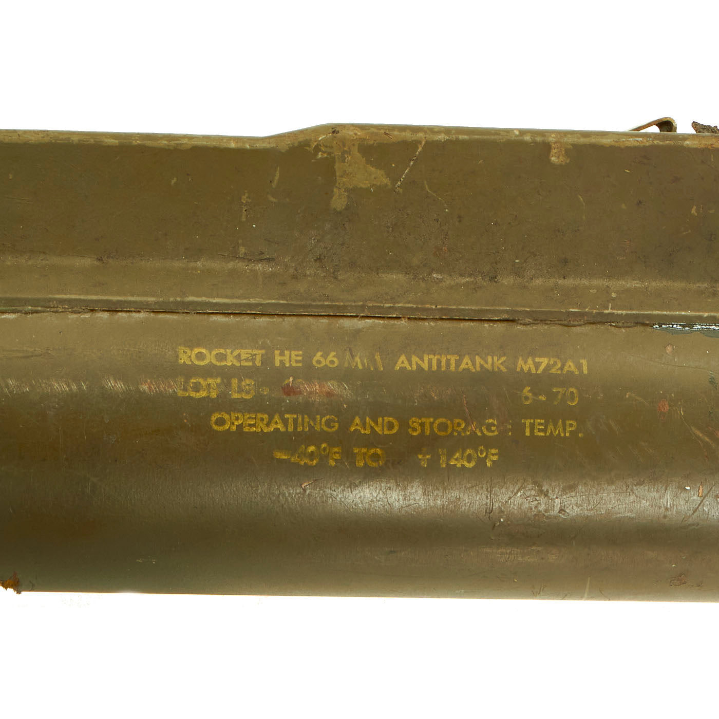 Original Item: Only one available. This is an inert non-firing BATF compliant M72A2 LAW Light Anti-Tank Weapon offered in excellent condition. Once fired, these tubes are unable to be reloaded.