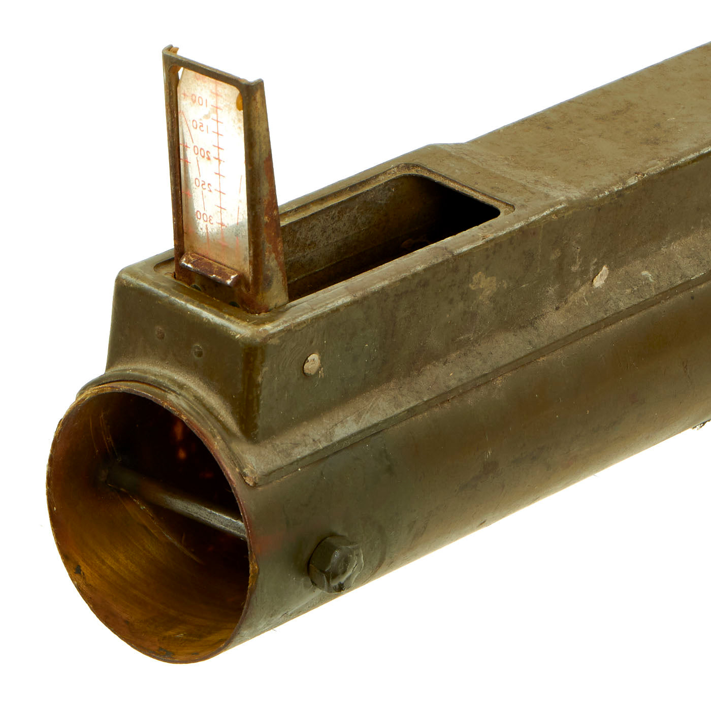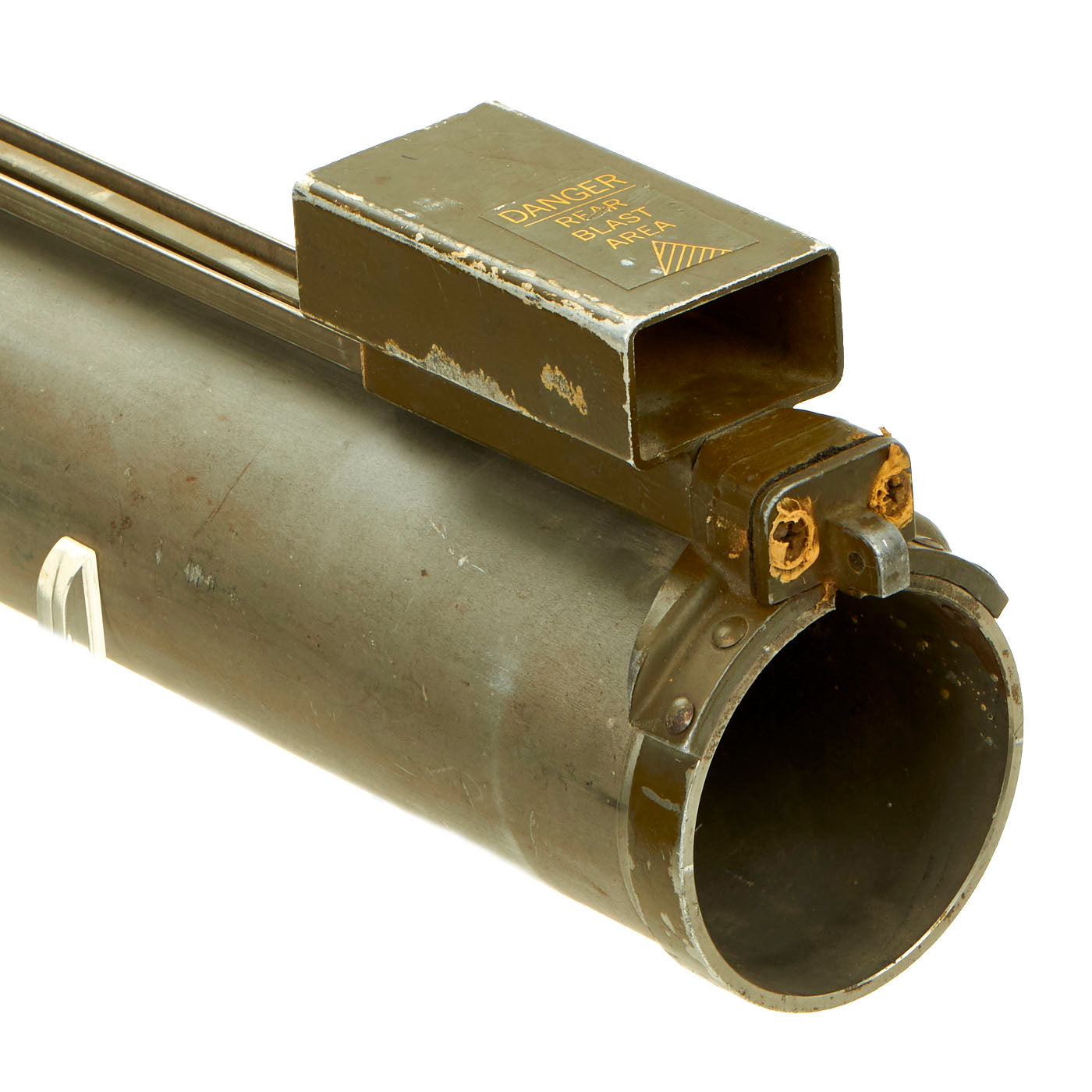 These LAW Rocket Launchers are timeless in design, which the U.S. Military has tried to replace it in the past, but was unable to find anything better than these disposable launchers. This very nice example has both the front and rear sight intact, often seen broken or missing. Both rubber pieces on the trigger and slide release are still in place as well. The launcher still collapses and extends just fine, as intended.