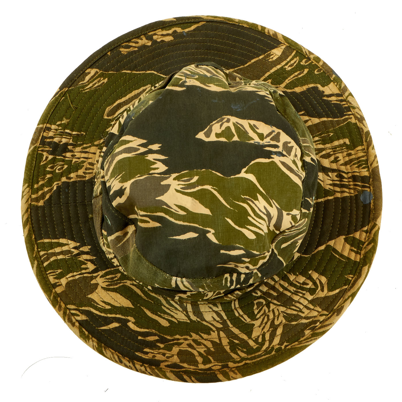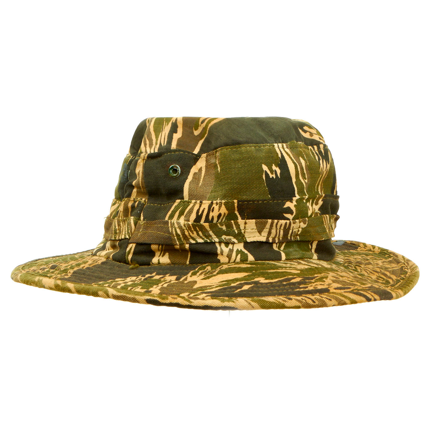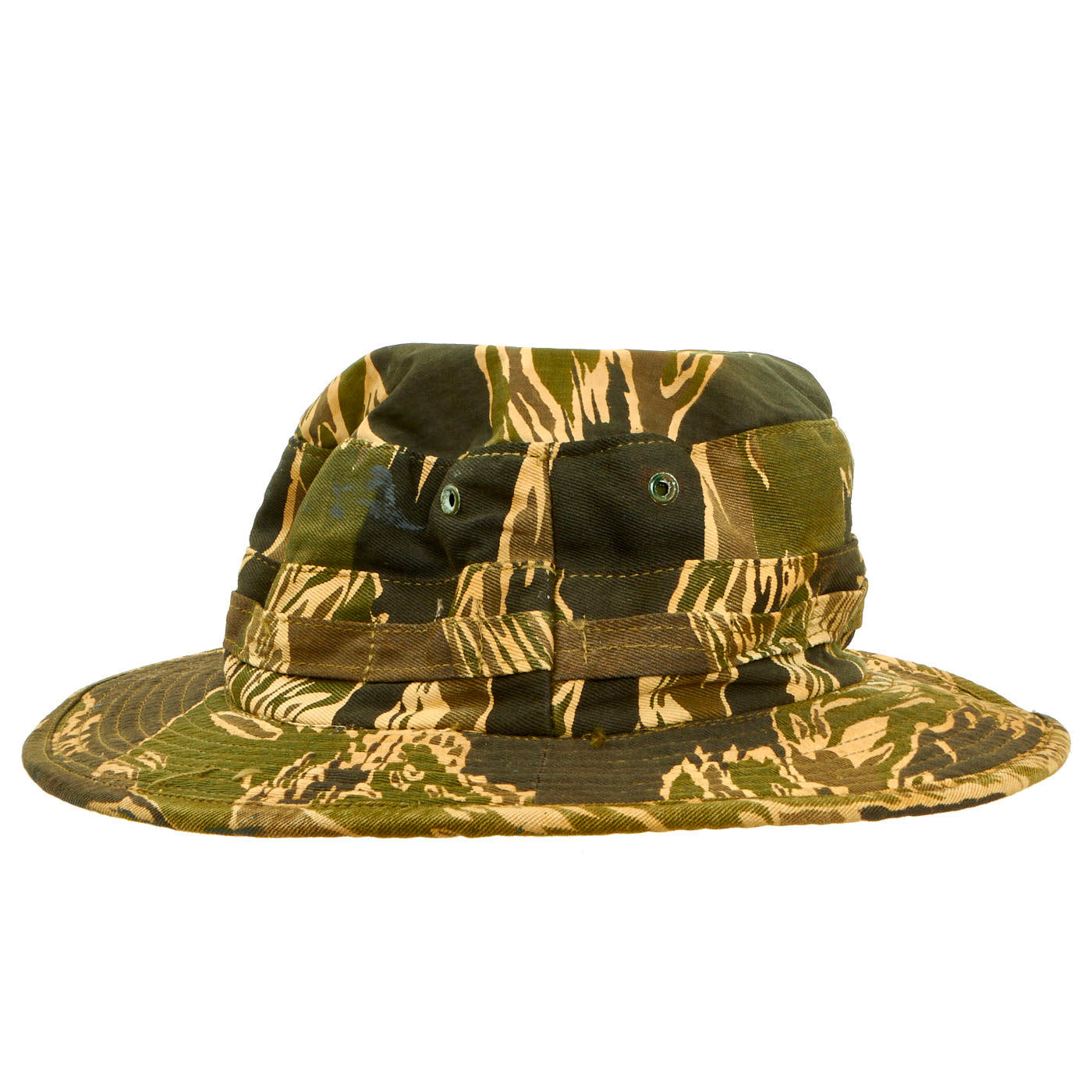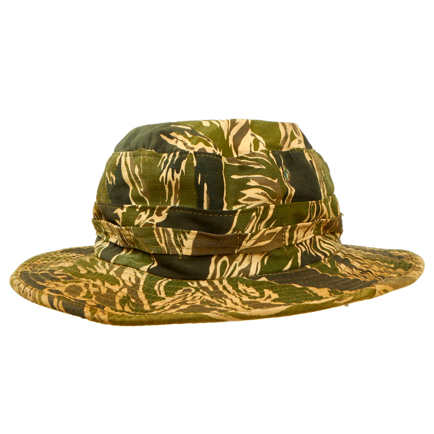 Original Item: Only One Available. This is a very good condition "Tiger Stripe" camouflage Vietnam War Issue Boonie Cap which appears to have been manufactured in Japan. This style boonie was used by the MACV-SOG in the field. This example is cotton with an interior lining and name in ink. Its construction is very similar to Japanese made examples by both quality, materials and construction.