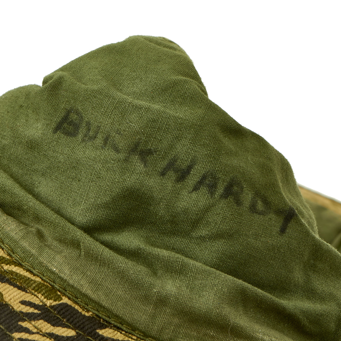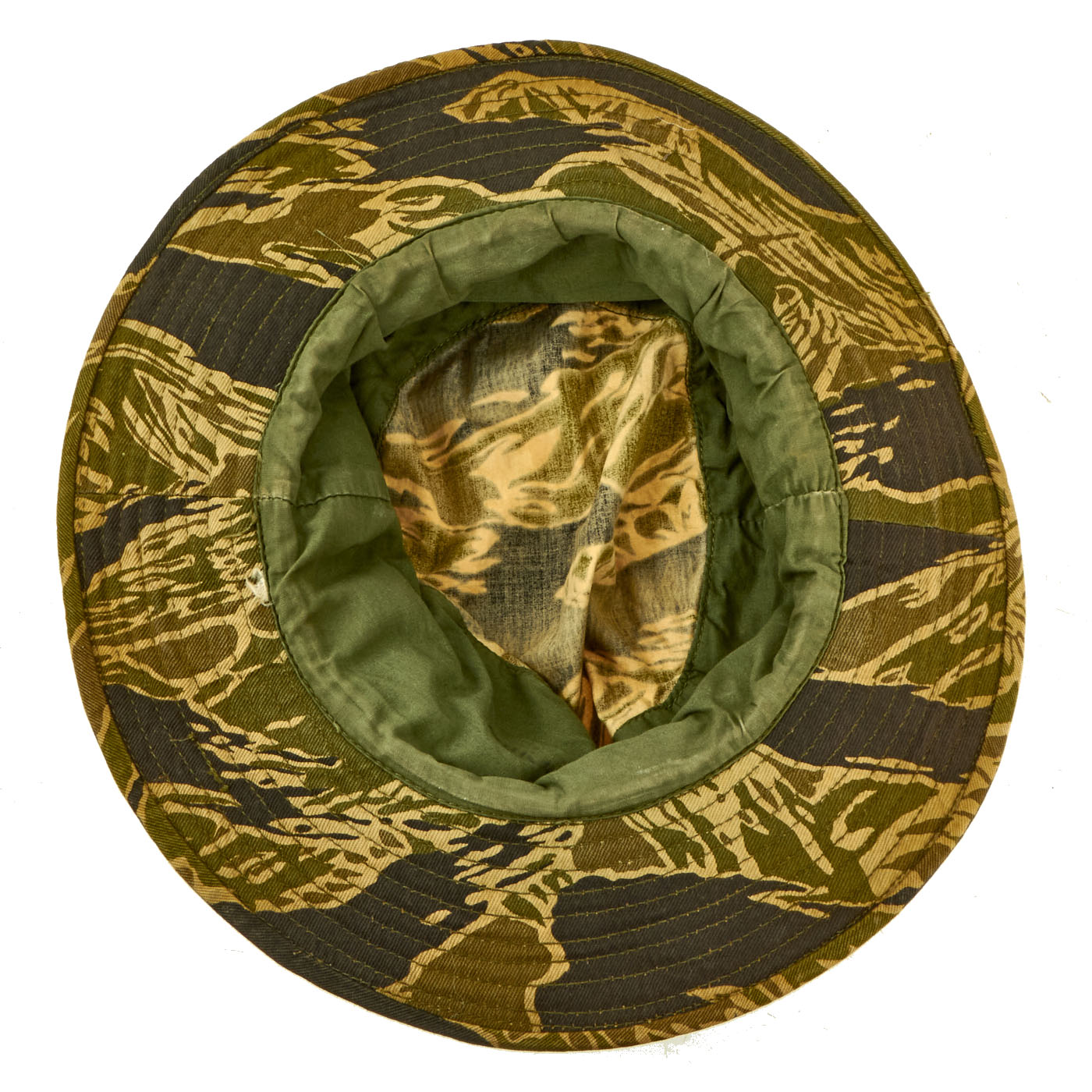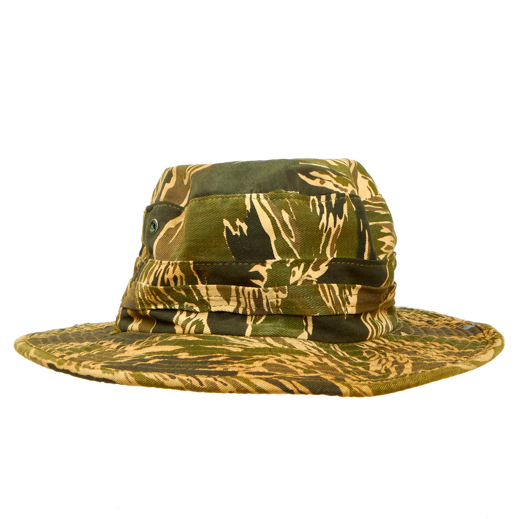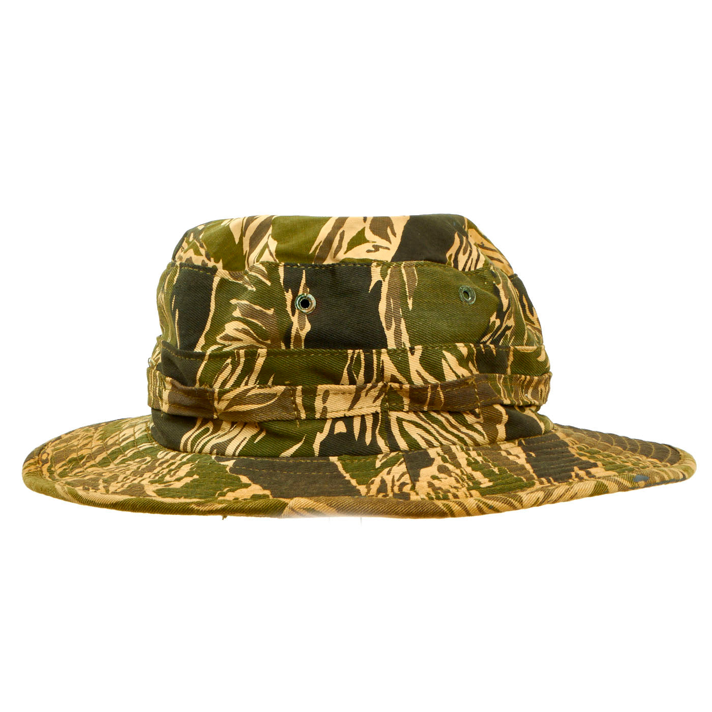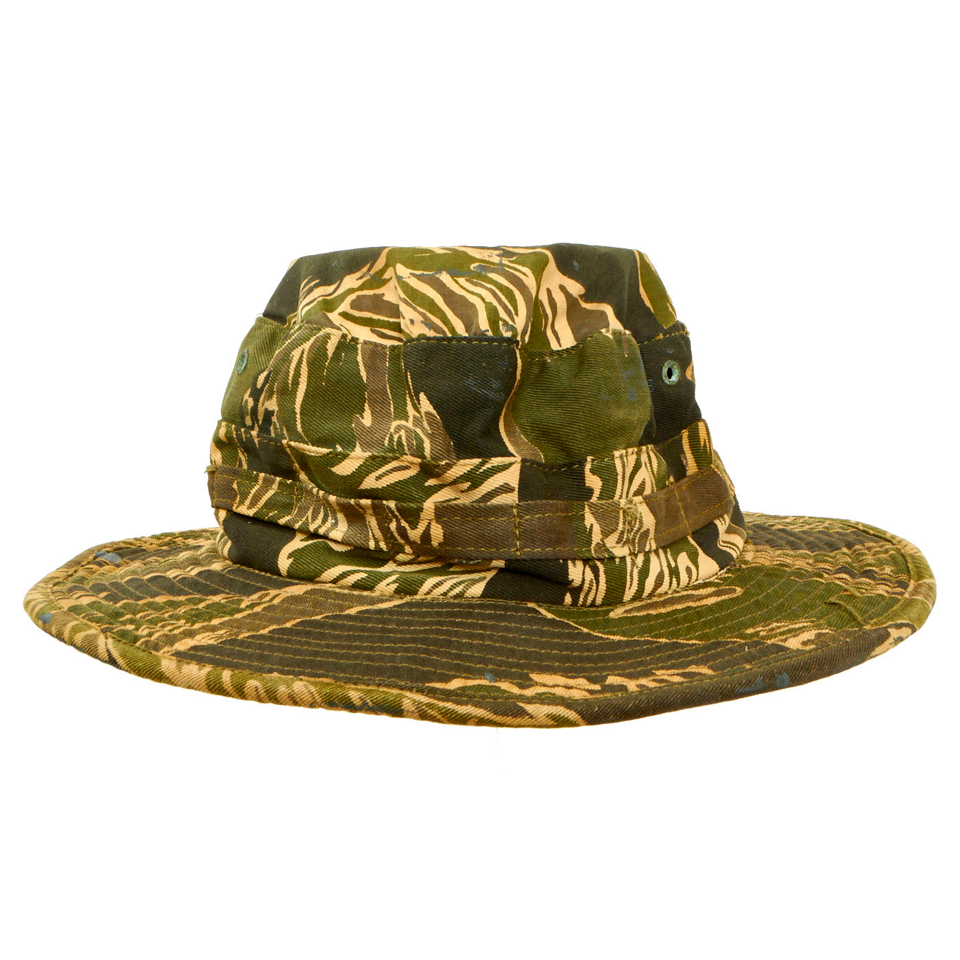Original Item: Only One Available. This is a very good condition "Tiger Stripe" camouflage Vietnam War Issue Boonie Cap which appears to have been manufactured in Japan. This style boonie was used by the MACV-SOG in the field. This example is cotton with an interior lining and name in ink. Its construction is very similar to Japanese made examples by both quality, materials and construction.