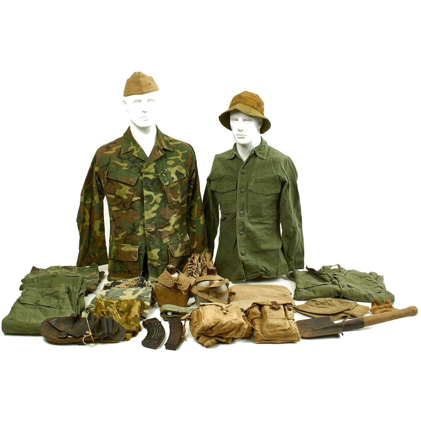 Original Items: Only One Set Available. Brought back by a United States Marine Corps member after his Vietnam Tour this is a set of a Viet Cong North Vietnamese Army material as well as USMC uniform pieces. Everything in the photographs is included.