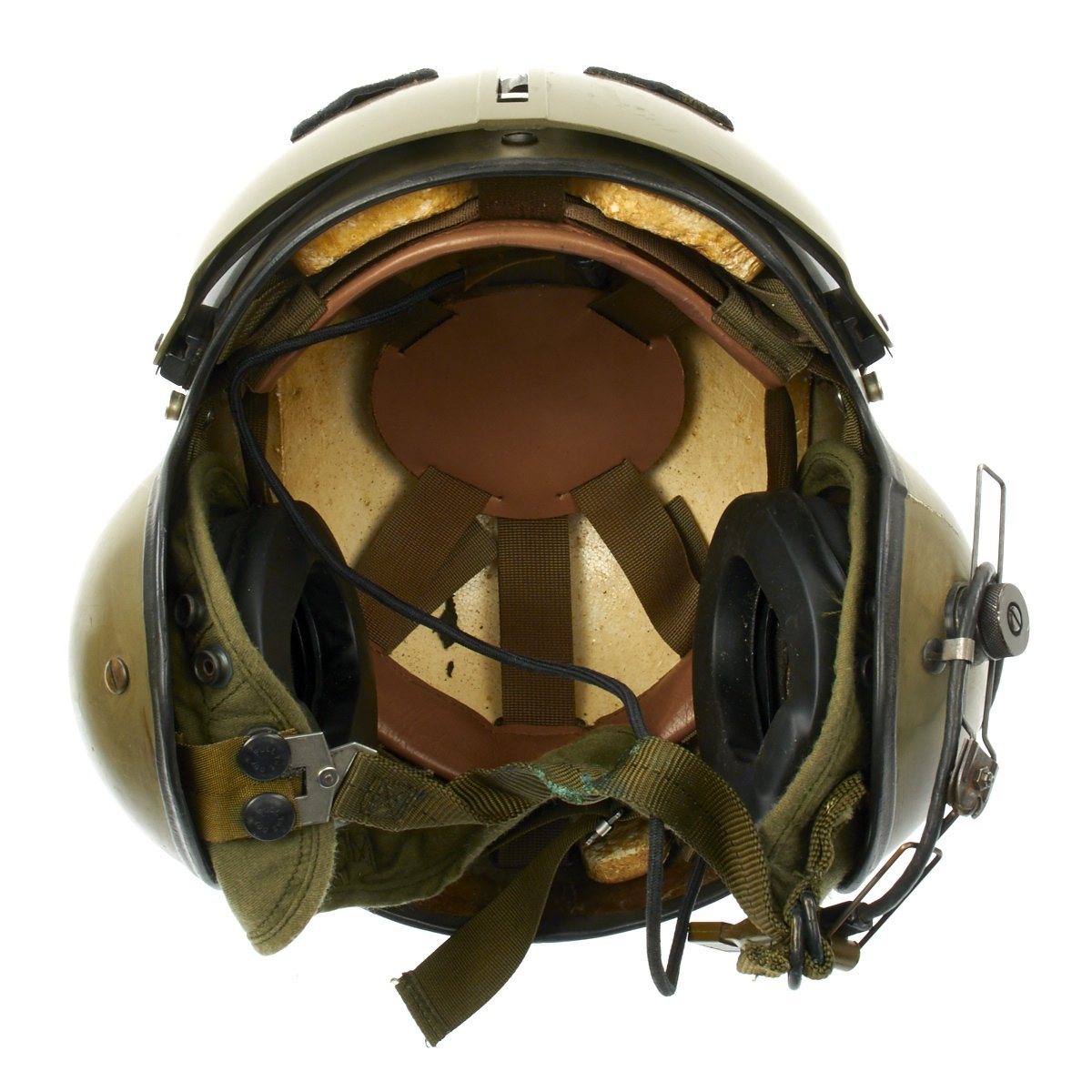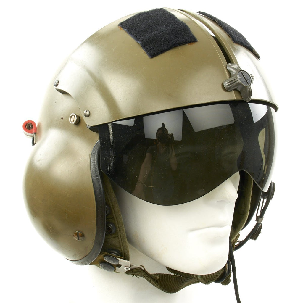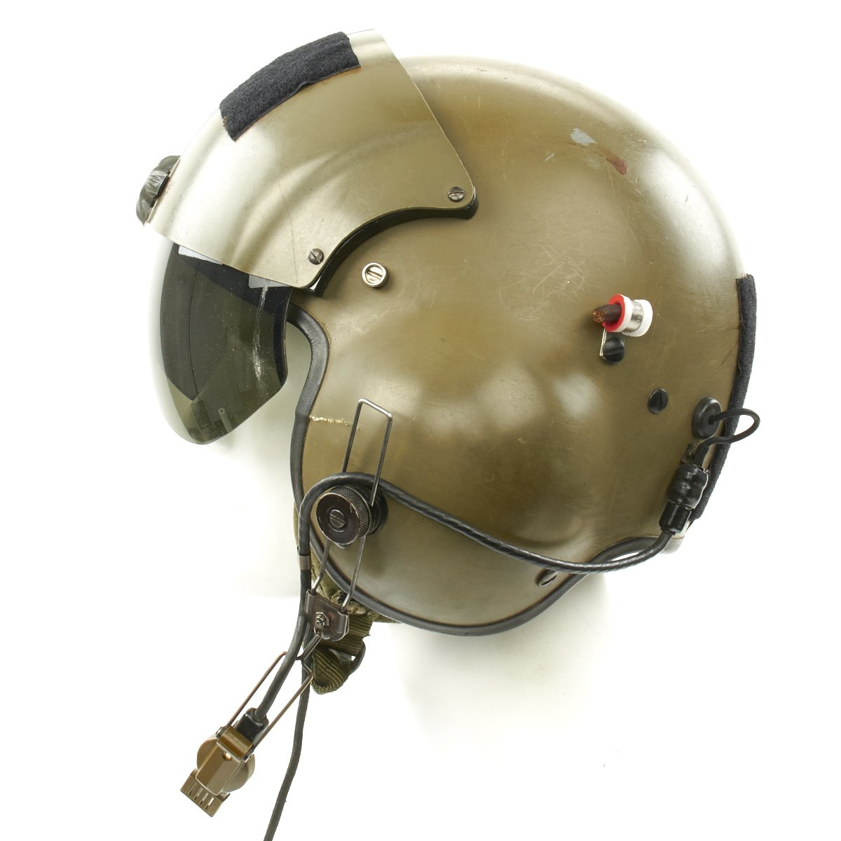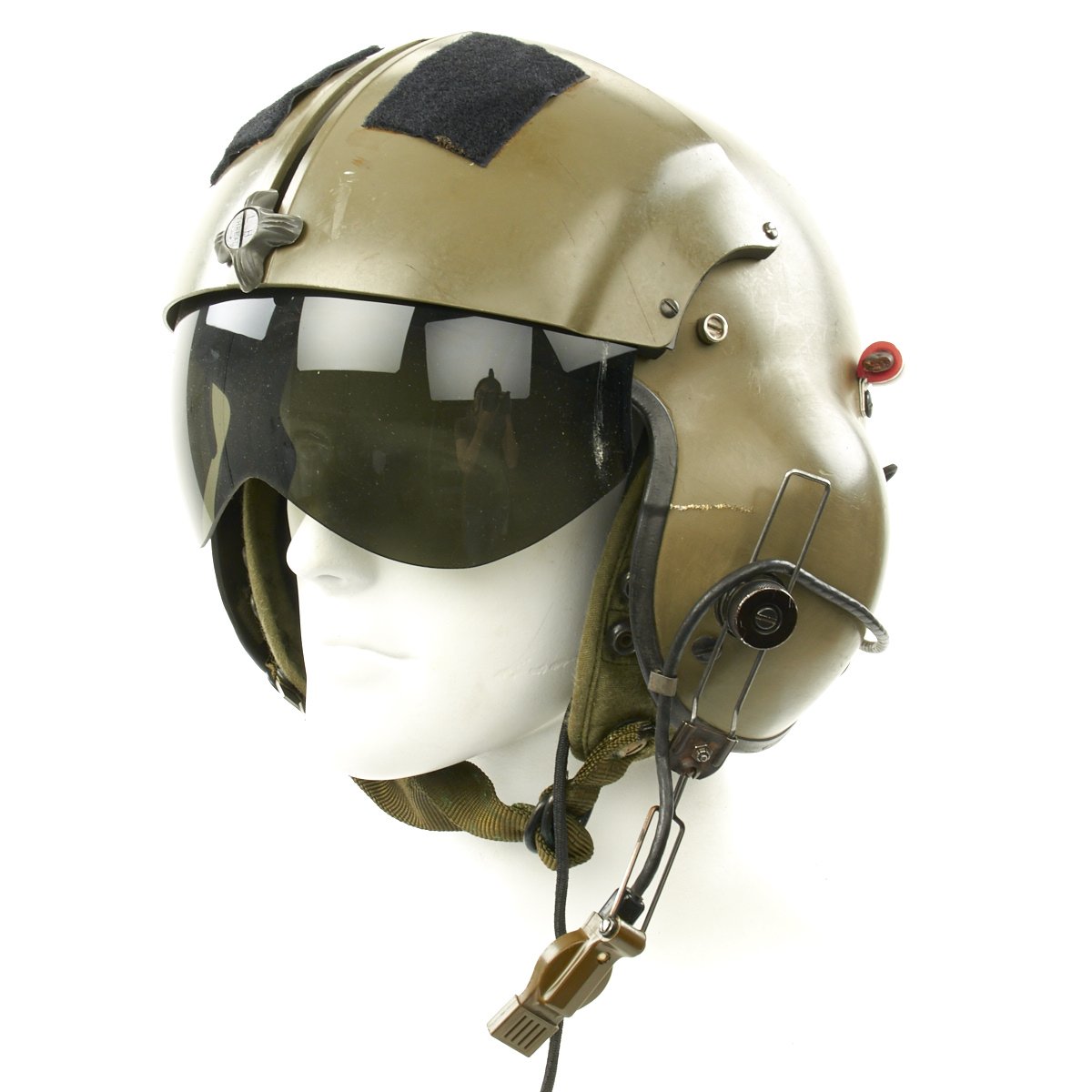 Original Item: Only One Available. This is a United States Helicopter Flight Helmet type SPH-4 made by Gentex. The helmet is in overall very good complete condition with the liner, headset, visor, microphone, and tint visor. The helmet is maker marked by Gentex 8415 and is a size Extra Large. The exterior is named to MAJ ANGLIN. The interior bears an original Gentex data label that is dated 1971. Also included is the Gentex NylonFlying Helmet transport and storage bag as well as a pair of American Optical Company dust goggles which were popular for pilots when flying in areas with smoke, debris or dust. This is a rare named Vietnam era original rare helicopter helmet in wonderful complete condition!