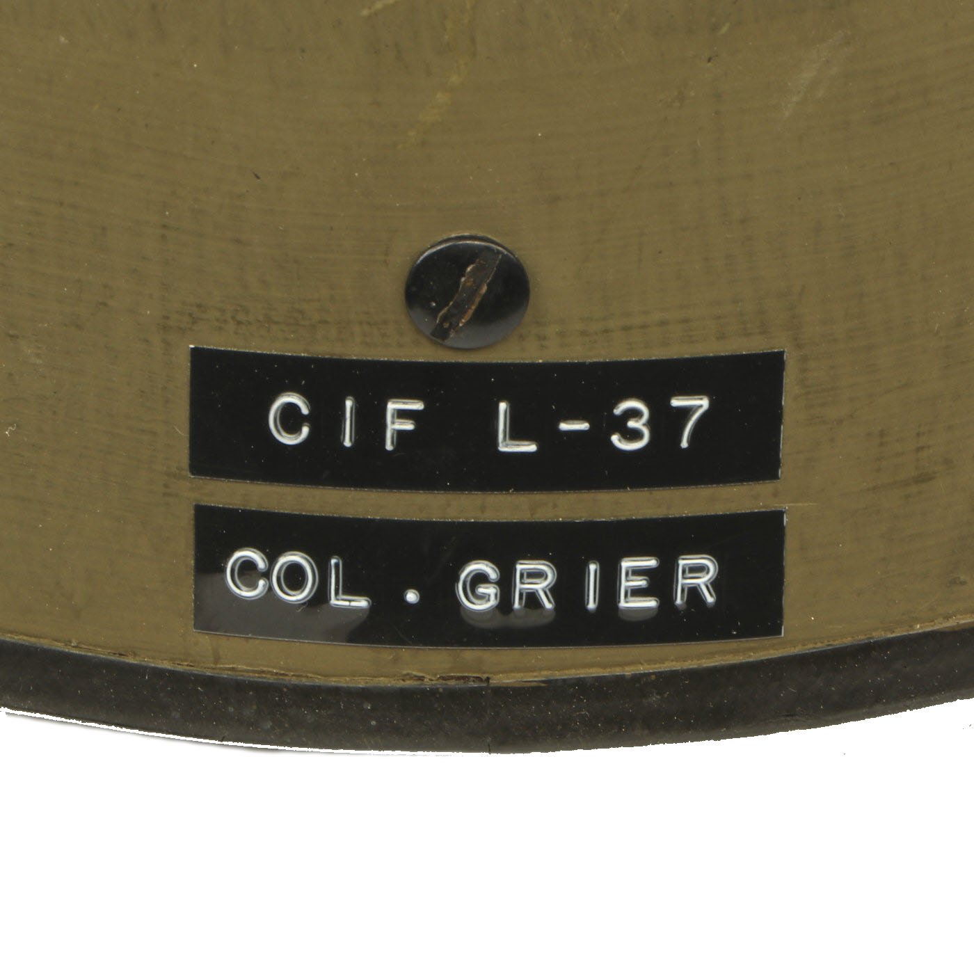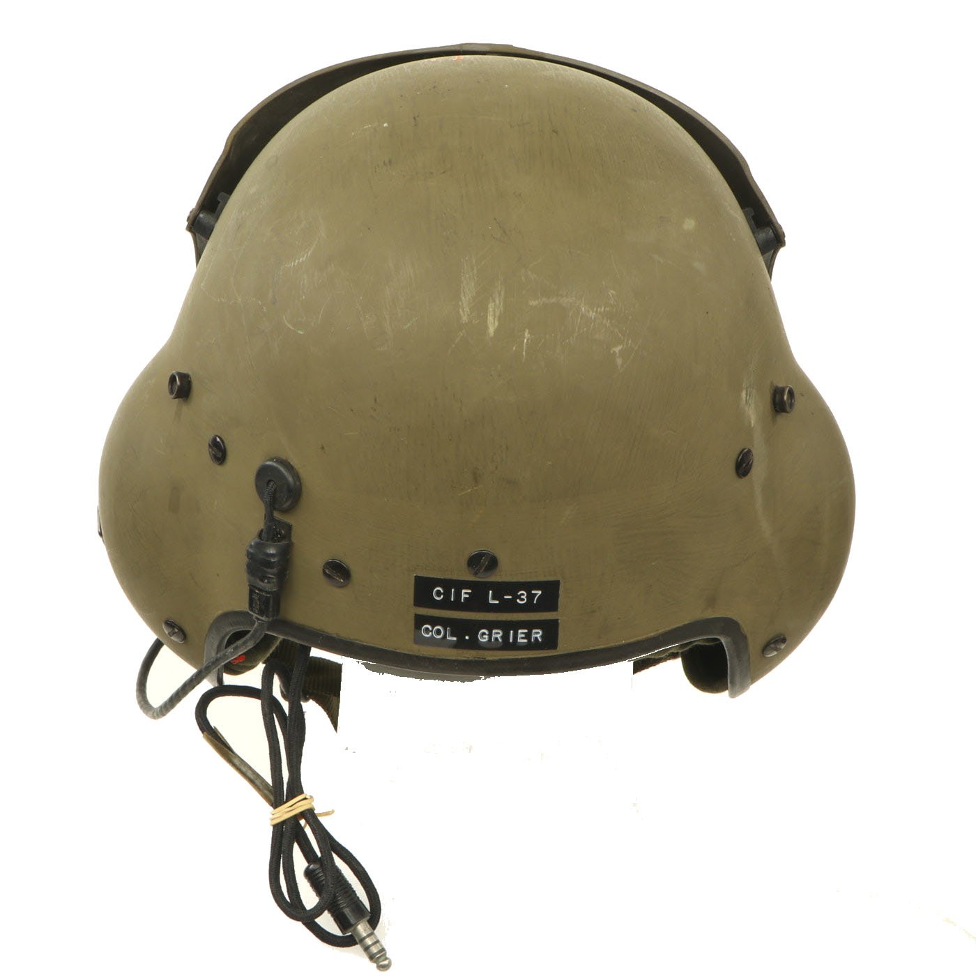 Original Item: Only One Available. This is a United States Helicopter Flight Helmet type SPH-4 made by Gentex. The helmet is in overall excellent complete condition with the liner, headset, visor, microphone, and tint visor. The helmet is marked size X LARGE on the white label attached to the helmet shell, which also gives the order and stock numbers. The rear of the helmet is marked CIF L-37 / COL. GRIER, giving information about the pilot it was issued to.