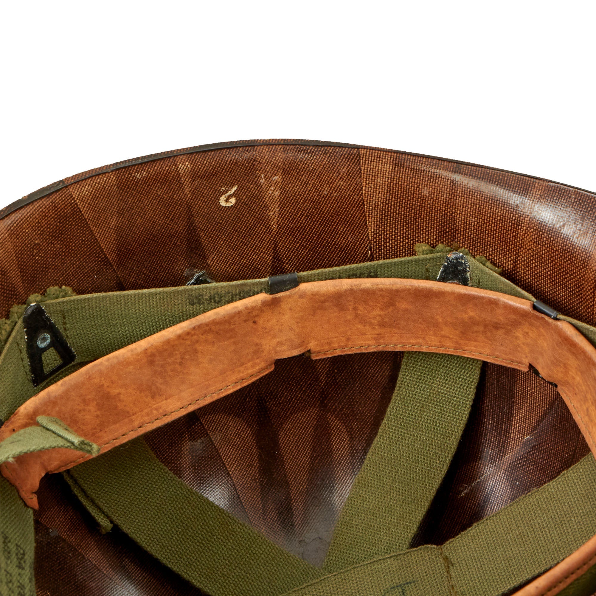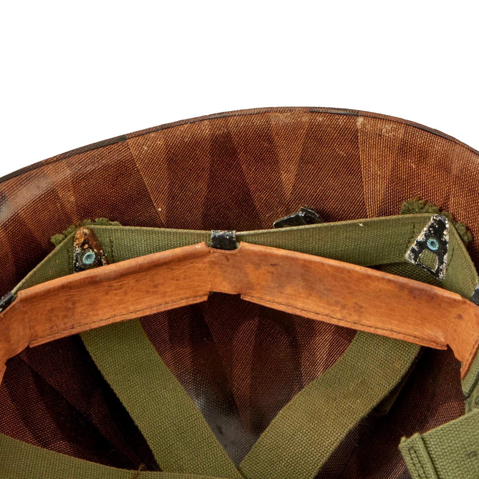 The helmet comes complete with high pressure Vietnam War era liner, produced by Westinghouse. The liner does not have a frontal eyelet, indicating that it is a post Korean war manufacture. A new suspension system for the M1 Helmet Liner was introduced in 1964, with this one being in great condition.