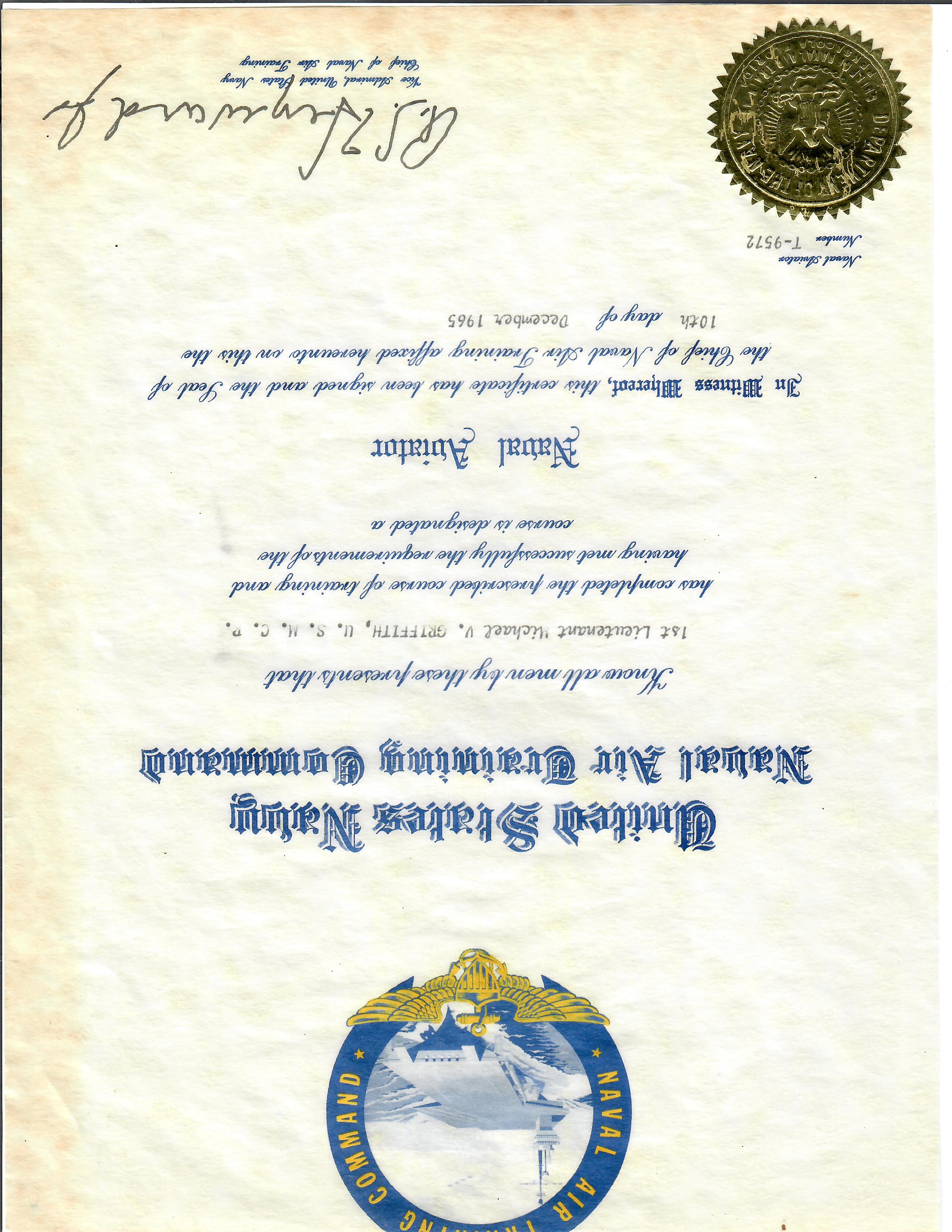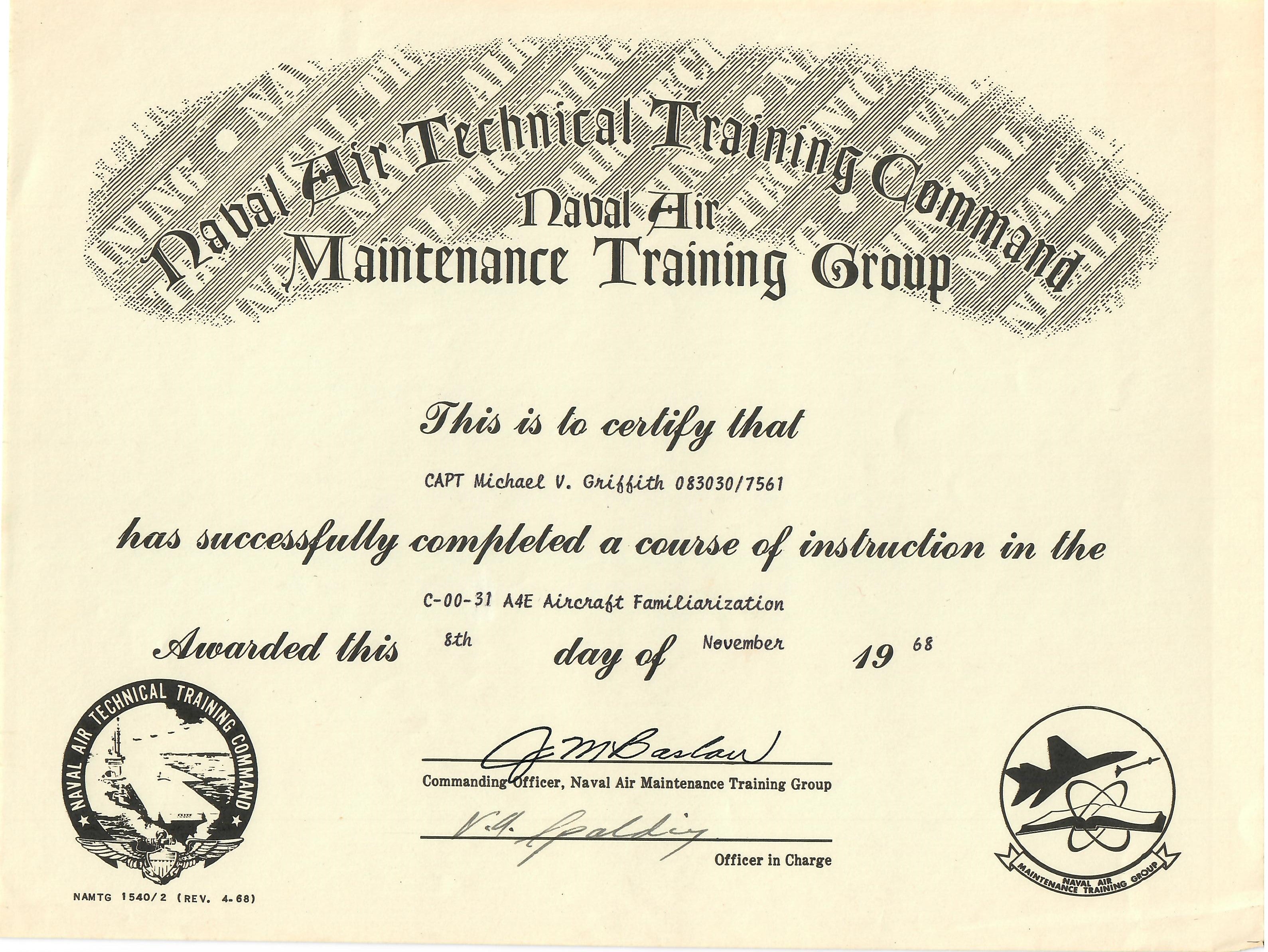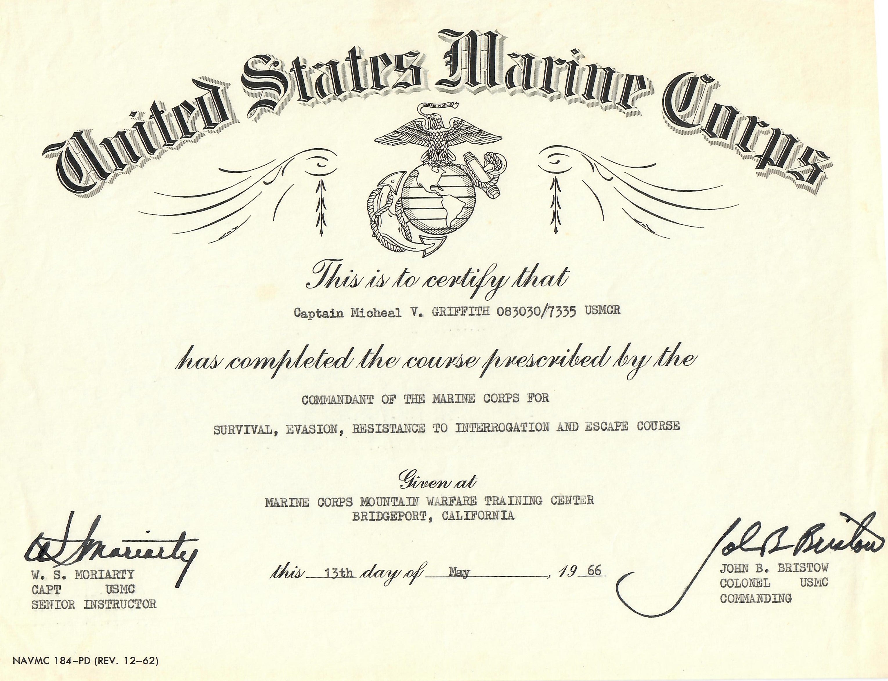 There are over a dozen documents, mainly certificates in this grouping, The certificates present show the different types of aircraft he was familiar with, but also shows that he completed various aircraft maintenance courses and even went through the rigorous Survival, Evasion, Resistance and Escape school! Survival, Evasion, Resistance, and Escape (SERE) is a training program, best known by its military acronym, that prepares U.S. military personnel, U.S. Department of Defense civilians, and private military contractors to survive and "return with honor" in survival scenarios. The curriculum includes survival skills, evading capture, application of the military code of conduct, and techniques for escape from captivity. Formally established by the U.S. Air Force at the end of World War II and the start of the Cold War, it was extended to the Navy and United States Marine Corps and consolidated within the Air Force during the Korean War with greater focus on "resistance training".