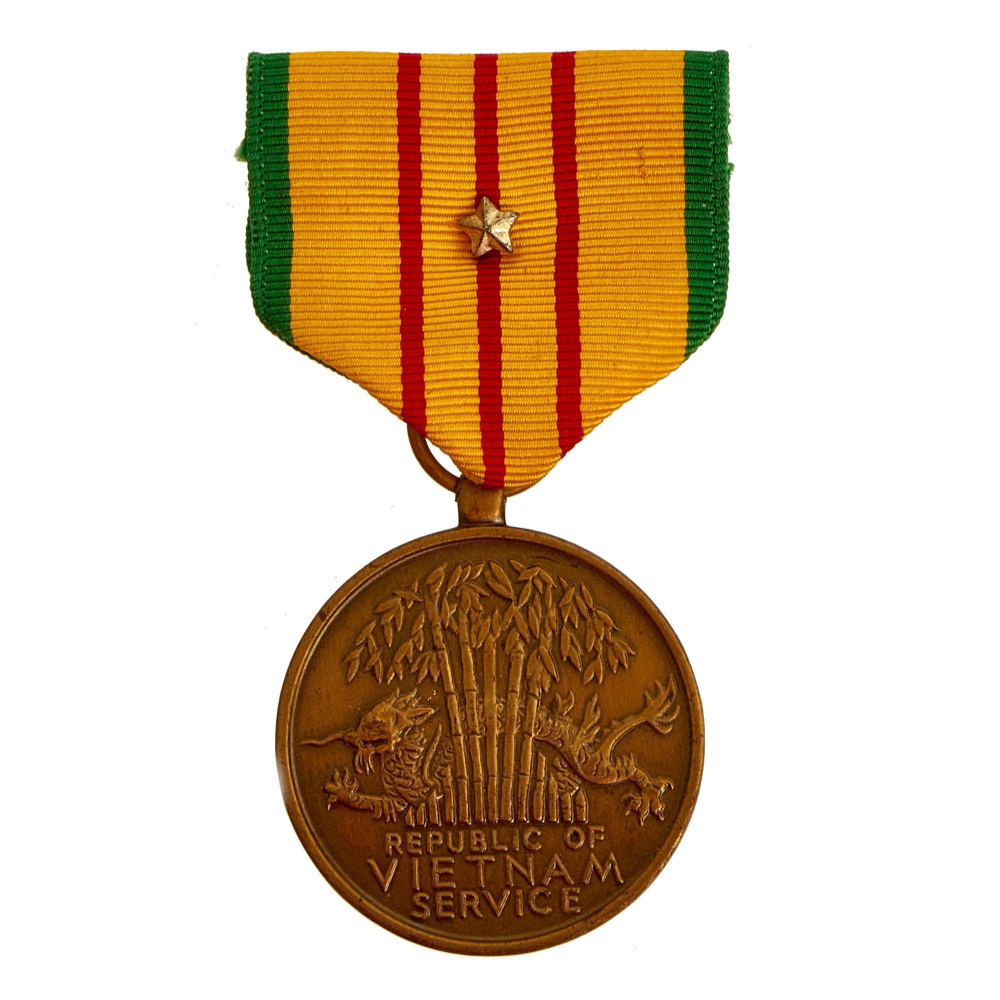 - Vietnam Service Medal With Silver Star Device: The Vietnam Service Medal is a military award of the United States Armed Forces established on 8 July 1965 by order of President Lyndon B. Johnson. The medal is awarded to recognize service during the Vietnam War by all members of the U.S. Armed Forces provided they meet the award requirements.